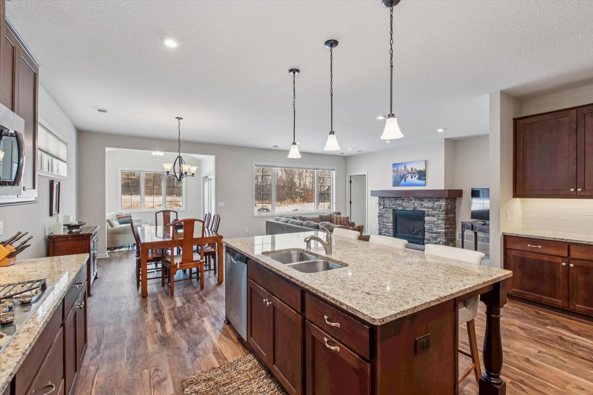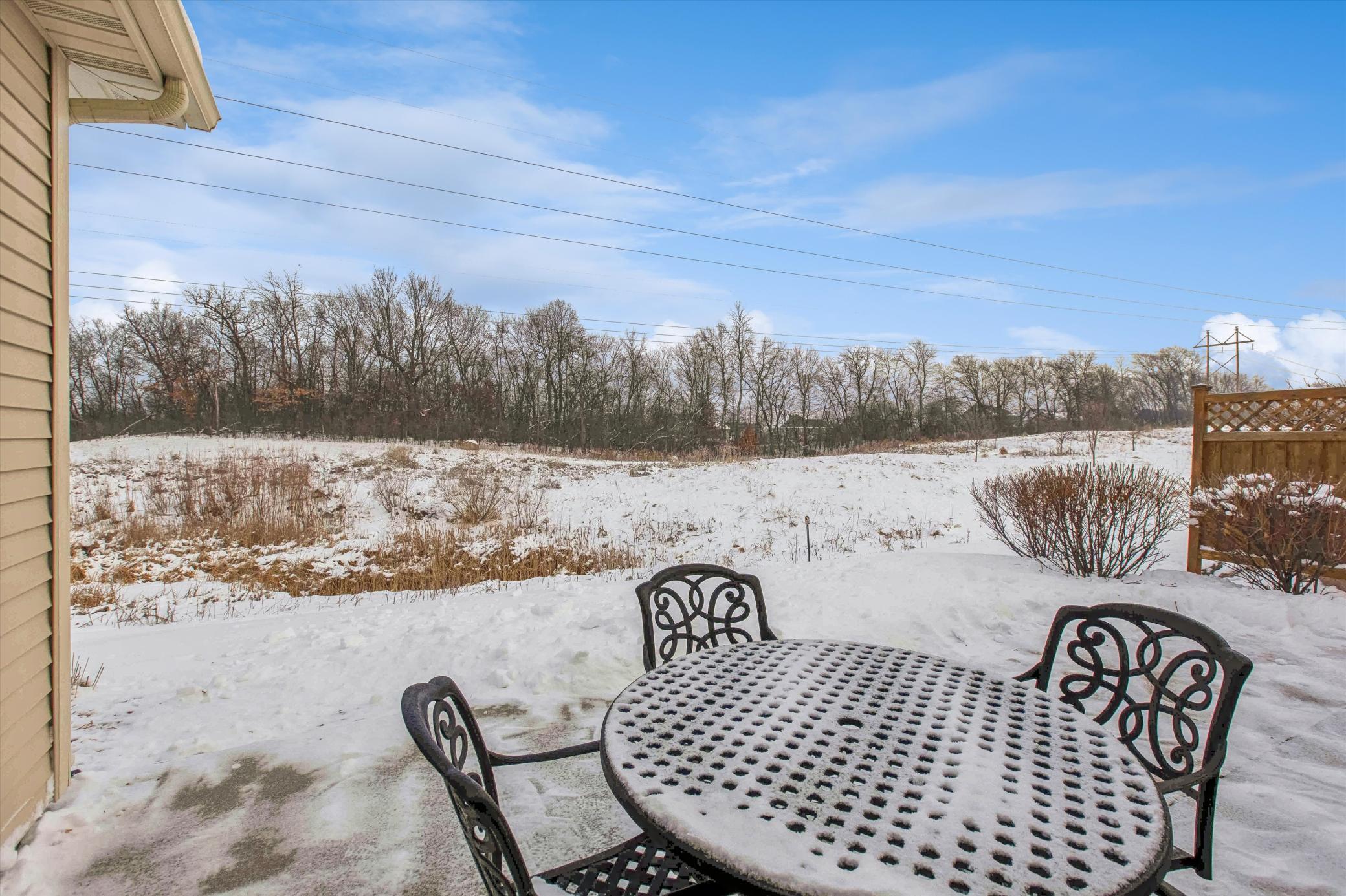 Enjoy nearly new construction and effortless one-level living in the desirable Haven Ridge community. Experience the comfort of a single-family home while lawn care and snow removal are handled for youmaking everyday living truly carefree.This immaculate, move-in-ready home features 9-foot ceilings throughout and a stunning, thoughtfully designed kitchen that is sure to impress. Highlights include abundant tall cabinetry, subway tile backsplash, a walk-in pantry, double wall ovens, an oversized center island, granite countertops, and stainless-steel appliancesperfect for both daily living and entertaining.A bright front den or home office welcomes you with beautiful natural light. The open family room offers a cozy stone gas fireplace and flows seamlessly into the dining area and inviting sunroom. The private owners suite provides a relaxing retreat with a large walk-in closet and a spacious ensuite bath featuring dual vanities and a tiled walk-in shower.Additional features include custom blinds throughout (2019), bonus upper-level storage, and a large patio overlooking a peaceful walking pathideal for enjoying the outdoors.Located close to trails, Lower Prior Lake, Sand Point Beach Park, shopping, restaurants, coffee shops, and the new Canterbury entertainment district with amphitheater. Convenient access to Highway 169 and I-35W completes this exceptional offering.