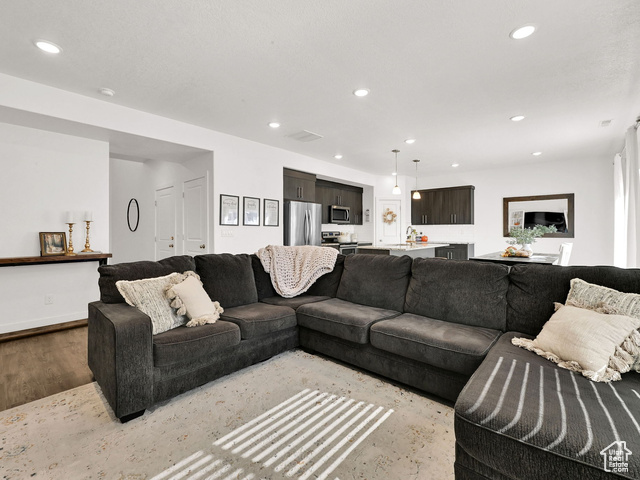 Welcome Home to this amazing 3-Bed, 3-Bath Townhome in the desirable Elk Mountain Community! This spacious townhome features abundant natural light and highlights the bright, open floor plan. The large windows create an inviting atmosphere full of modern style and comfort. The kitchen boasts granite countertops, upgraded cabinetry, stainless steel appliances, and a large pantry. Upstairs features 3 large bedrooms, including a primary suite with a walk-in closet and private bath. The laundry room has cabinets and a drying rod. The attached garage offers ample built-in storage, perfect for tools, gear, and seasonal items. Step outside to your fenced private patio-ideal for relaxing, grilling, or entertaining. As part of Elk Mountain, enjoy superior HOA amenities including clubhouse, pool, spa, fitness center, park with pavilion, barbeque grills, and maintenance-free living. This townhome is a short walk to Blacksmith Fork Park, featuring a skate park, pickleball and basketball courts, splash pad, and more! Set against beautiful mountain views in a peaceful, wonderful neighborhood, this home offers easy access to schools, shopping, and recreation. It's the perfect blend of comfort, and convenience. Square footage figures are provided as a courtesy estimate only. Buyer is advised to obtain an independent measurement.