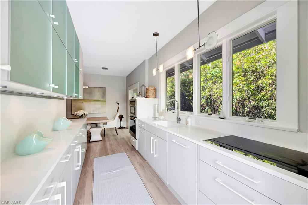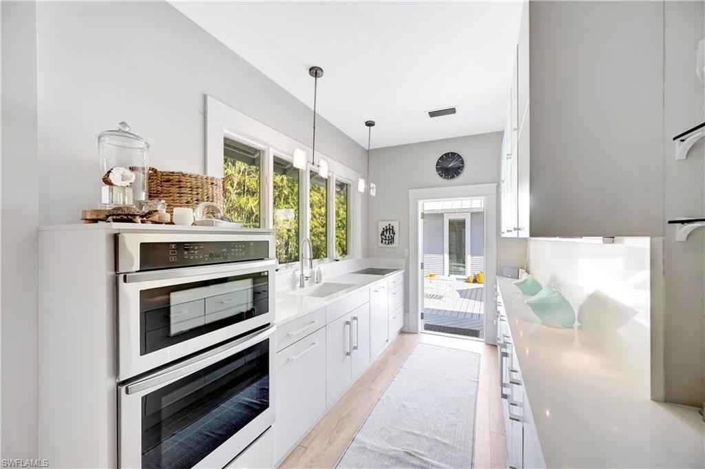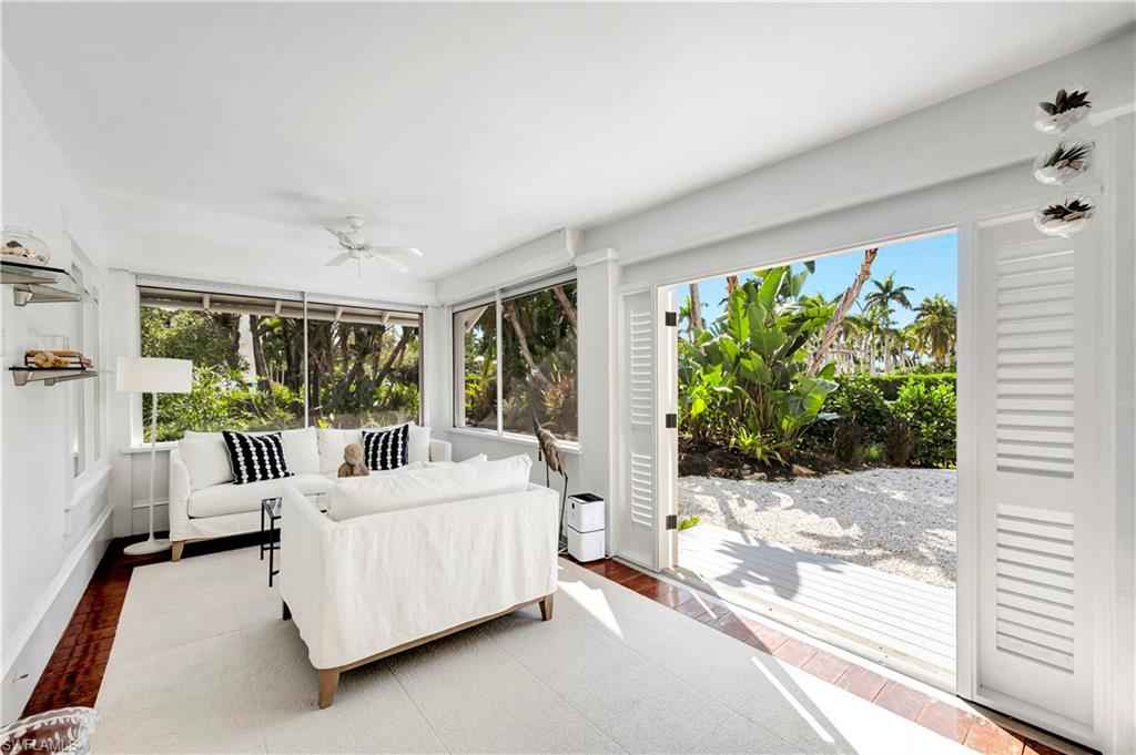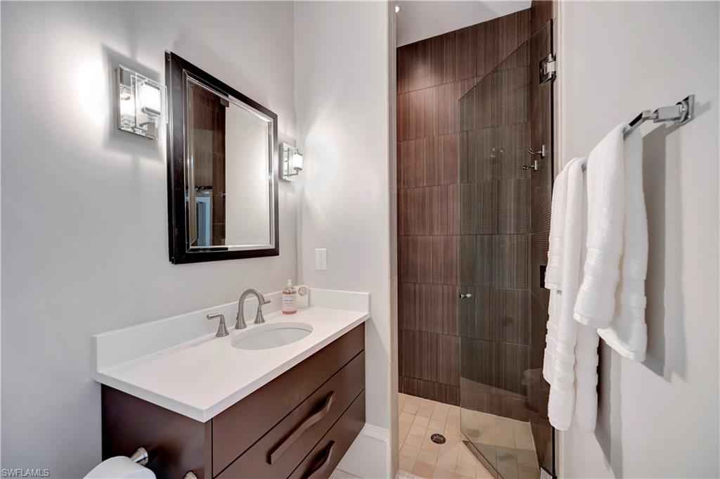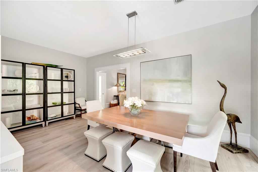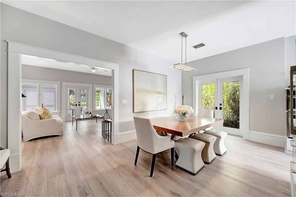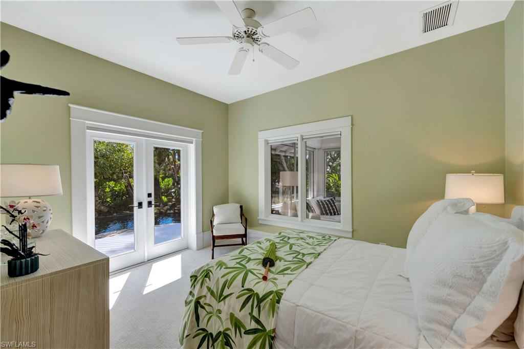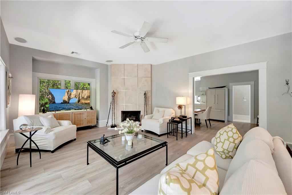 HISTORIC OLD NAPLES in the heart of the 3rd Street Shopping District.. This recently remodeled property on Gordon Drive near 3rd Street South has a Cottage with 3 sleeping rooms and a one-bedroom cabana joined by a large wood-deck with multiple seatings areas for outdoor dining, conversation or taking in the afternoon sun. The Cabana is for a party of two and includes a bedroom with a king bed, a full bath with a walk-in shower, a morning kitchen, and an expansive living area with high ceilings, and a large wall-mounted TV. The Cottage itself has 2 suites: the primary suite with a king bed and full bath, and a secondary suite that is furnished with a full-size bed, a queen bed, and a shared bath. The Cottage has a full kitchen, a dining area, a large living room as well as a screened patio with another table and seating area. Lounge by the lusciously landscaped lagoon/ plunge pool where you can cool off with a quick dip after a full day on the beach. Or take in the sights on 3rd Street, famous for its shopping, dining, and people watching.