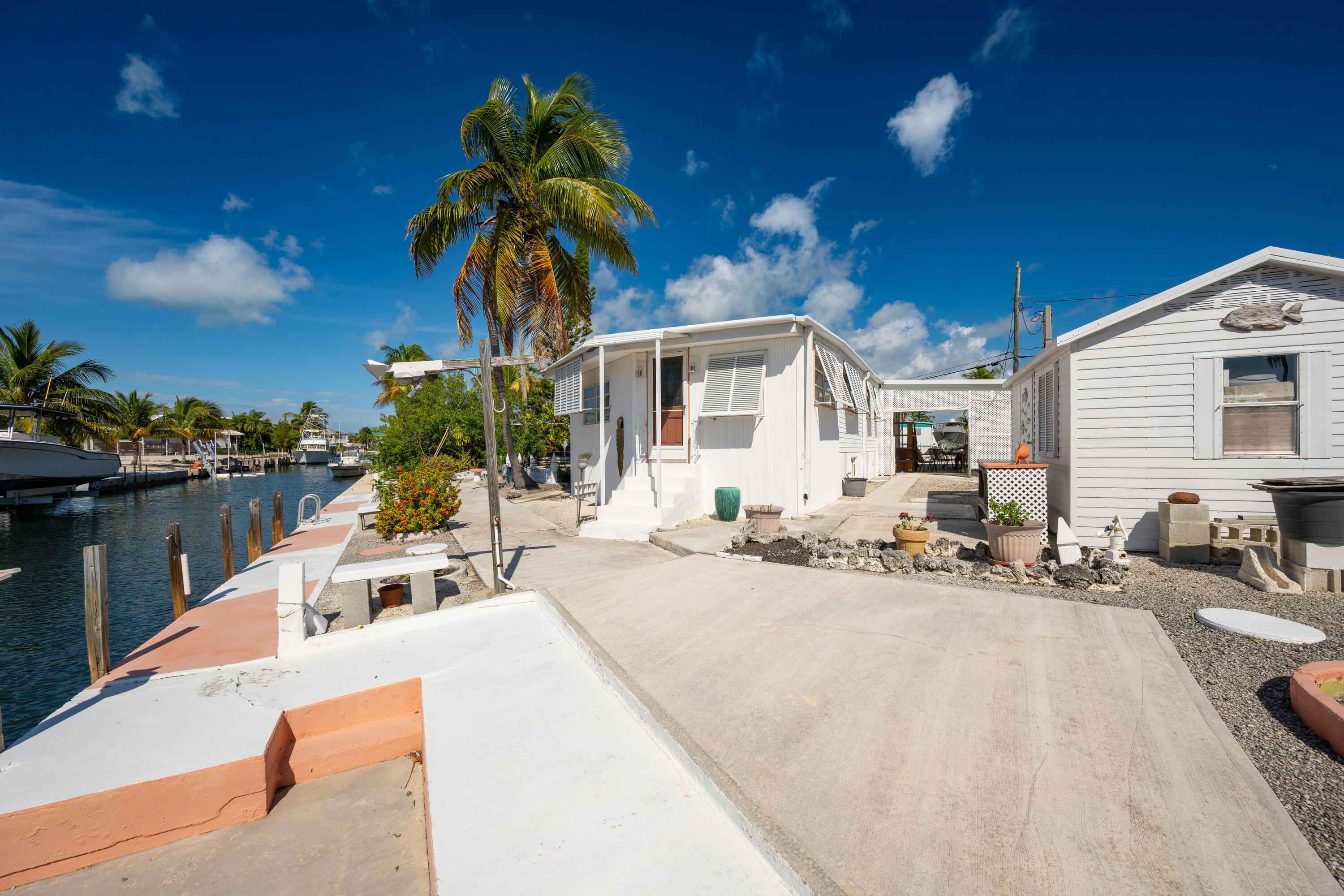 NEW LISTING! Sea Lane, a waterfront property located just minutes from Key West! This property boasts over 110 feet of canal frontage, deep water direct ocean access!! It is a well-maintained, owner-occupied property, making it an ideal island retreat. Situated near Geiger Key Marina, it is only a short drive from Old Town Key West or the airport, yet it offers serene canal views and boating access. The spacious home is currently set up as a large one-bedroom, two-bathroom residence, but it can easily be transformed into two bedrooms. It also presents a fantastic opportunity for a modular or new home replacement.The features of this property include a generous living and dining area, indoor laundry facilities, a shed for extra storage, and a covered lanai that is perfect for al fresco dining or relaxing in the shade. Off-street parking.