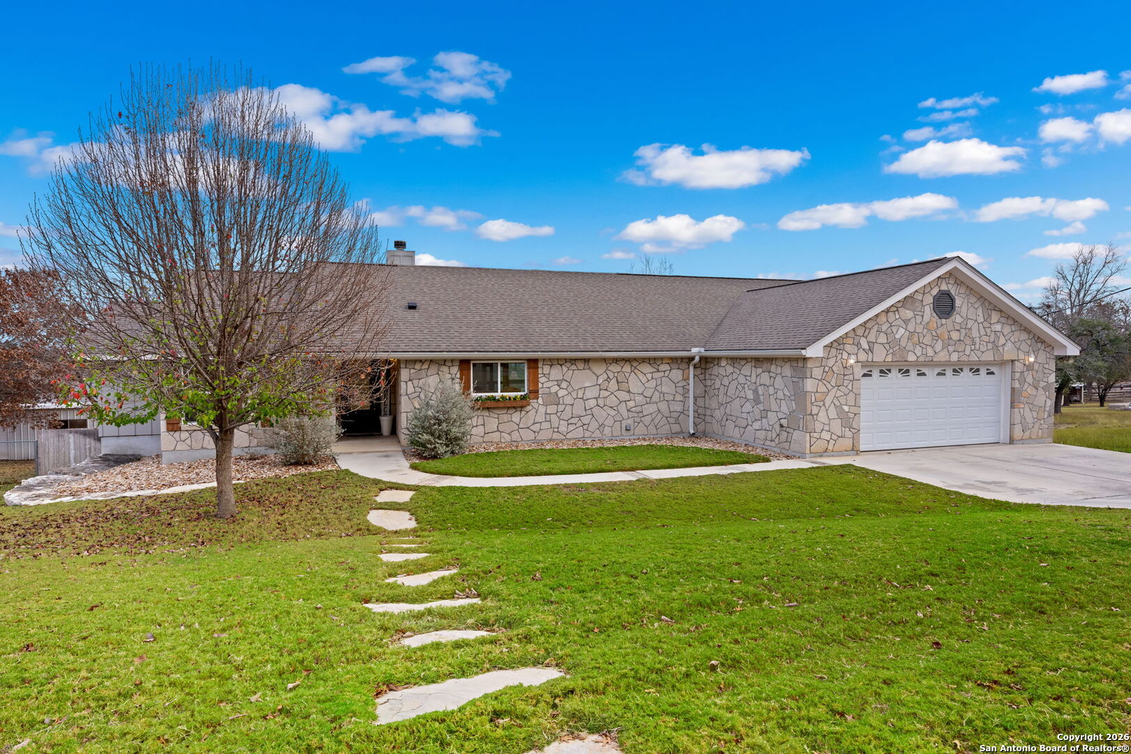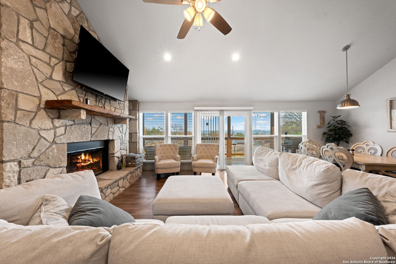 Welcome to 138 Holly Hill! NO city taxes! NO required HOA! Your beautifully built custom home tucked away in the established Greenwood Forest neighborhood, one of the Hill Country s most sought-after communities and proudly located in the highly regarded Ingram ISD. Built in 2019 with quality and intention, this home stands apart not only for its craftsmanship, but for something truly rare in Greenwood Forest- Hill Country views that stretch out behind your home. The back-deck view instantly gives you that peaceful, wide-open Texas feeling. From the moment you step inside, the blend of country warmth and modern design feels just right. Vaulted ceilings, a striking rock fireplace, and walls of windows fill the living space with natural light and draw your eyes straight to the Hill Country beyond. The open floor plan flows effortlessly into a spacious kitchen designed for gathering, featuring custom wood cabinetry, granite countertops, stainless steel appliances, a walk-in pantry, and a large island that anchors the heart of the home. The primary suite is a true retreat, offering tray ceilings, serene views, and a spa-like bathroom complete with a walk-in shower, soaking tub, double vanities, and two separate walk-in closets with built-in cabinetry. The split-bedroom layout provides privacy, with secondary bedrooms offering walk-in closets and private vanities while sharing a generously sized bathroom. Everyday functionality was clearly thought through, with a large laundry room just off the kitchen that includes a sink, abundant storage, and workspace. Step outside and the Hill Country lifestyle truly comes alive. Enjoy mornings and evenings on the covered back deck, summer barbecues, or quiet moments on the lower flagstone patio while listening to the calming sound of the water fountain. The oversized backyard offers room for kids to run, laughter to echo, and seasons to be celebrated. From summer days in the above ground wading pool to crisp fall evenings and Christmas mornings filled with joy. Well built, move in ready, and set in one of Ingram s most established neighborhoods with a view most Greenwood Forest homes simply do not have, 138 Holly Hill is more than a house. It is the kind of place where life feels exactly the way it should.