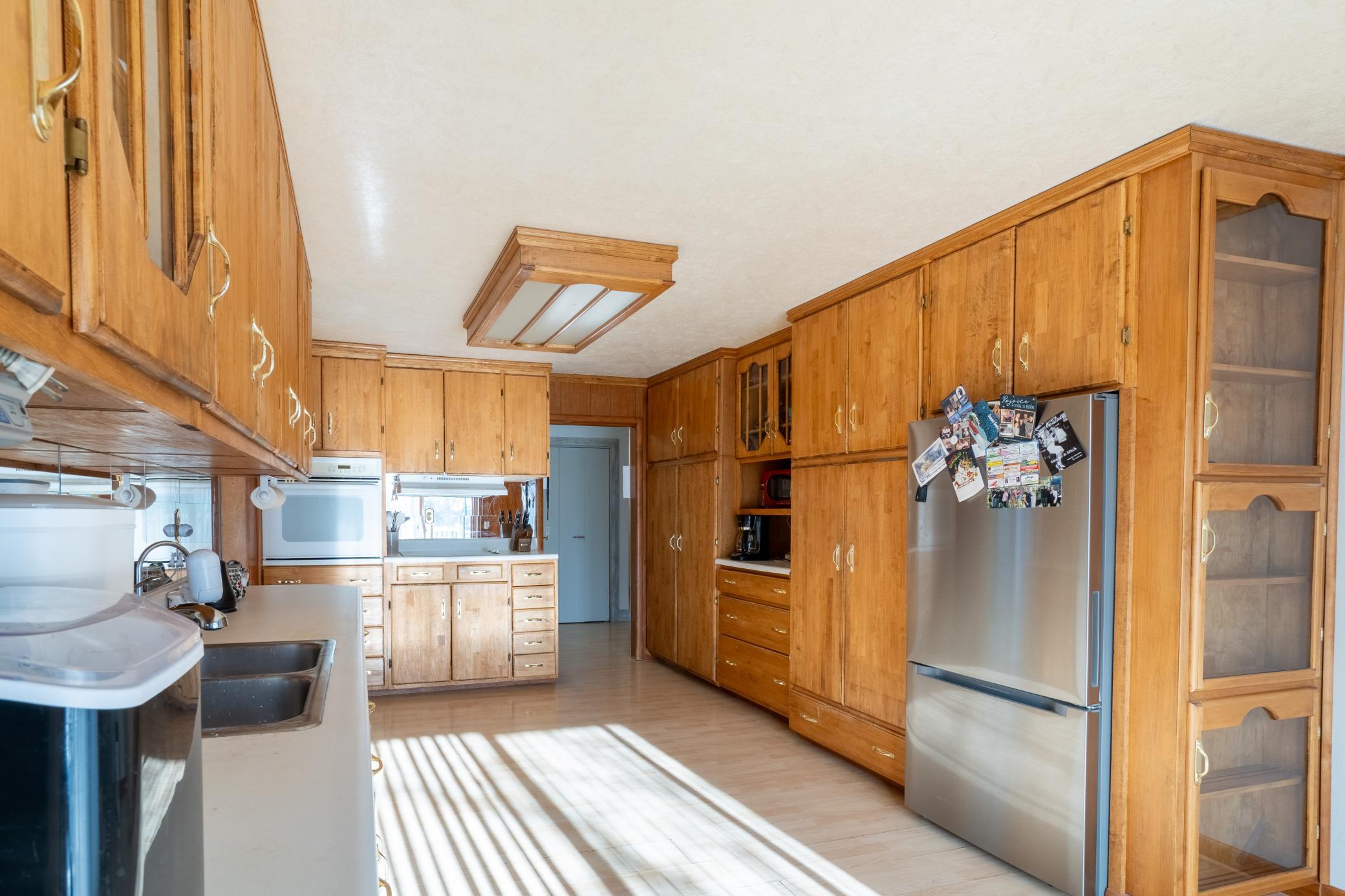 Located on a quiet cul-de-sac, 1380 Central Ave N in Valley City offers an impressive amount of space both inside and out including a 4 Stall Garage. This home features five bedrooms and two bathrooms with over 2,300 square feet on the main floor alone, and more than 3,500 square feet total, providing room to spread out and live comfortably. The main floor includes multiple living areas, highlighted by a front living room with a wood-burning fireplace and bay window, a spacious kitchen, and updated flooring. Main floor laundry adds everyday convenience and flexibility to the layout. The lower level offers even more usable space with another living area, a rec room, and a second kitchen. Outside, the property includes an attached four-stall garage, a large backyard that is partially fenced, a storage shed, along with a composite deck and patio. The home is equipped with natural gas forced-air heating and central air conditioning. A well-rounded property with generous square footage, multiple living spaces, and hard-to-find garage space in a desirable Valley City location.
