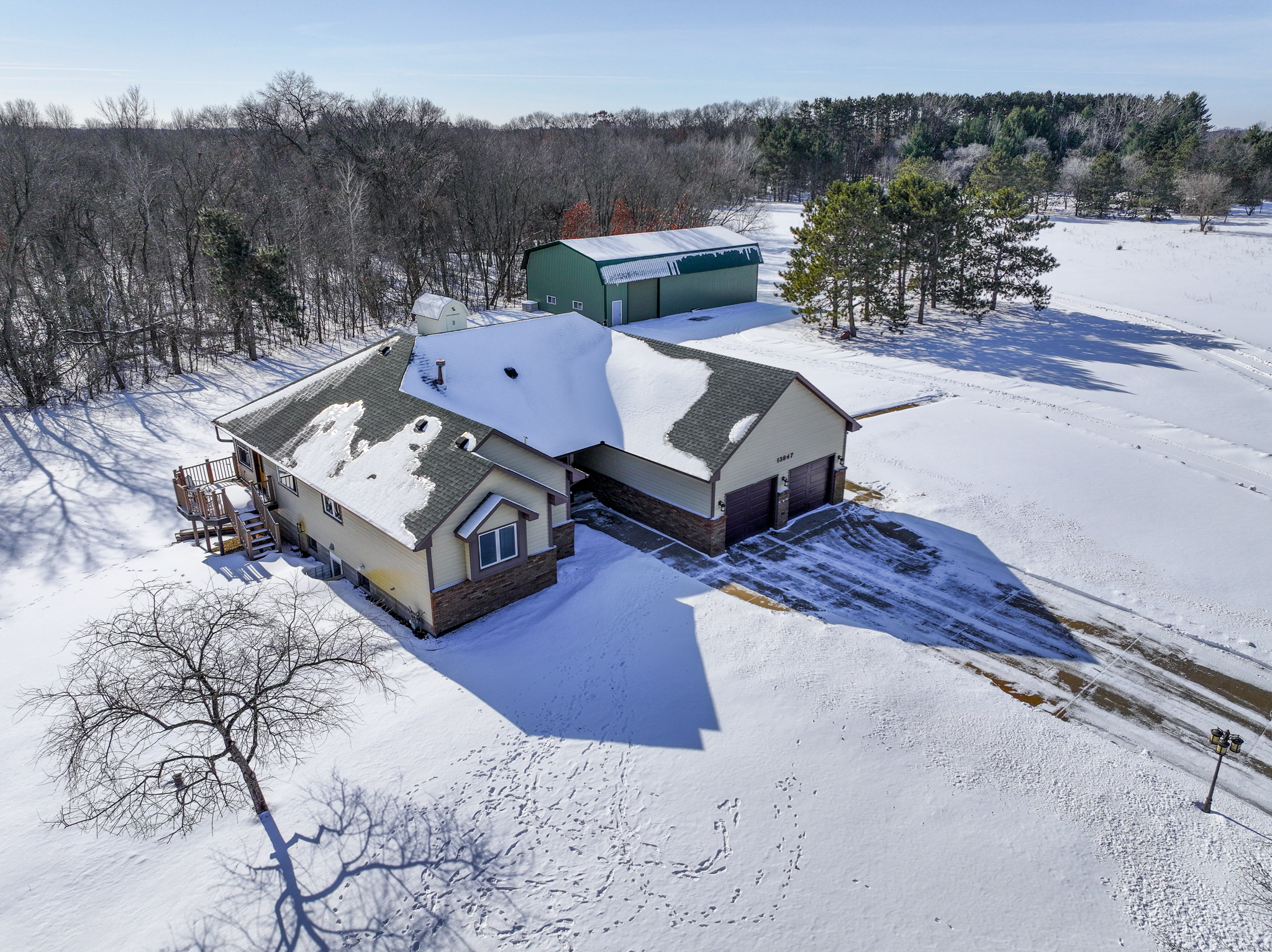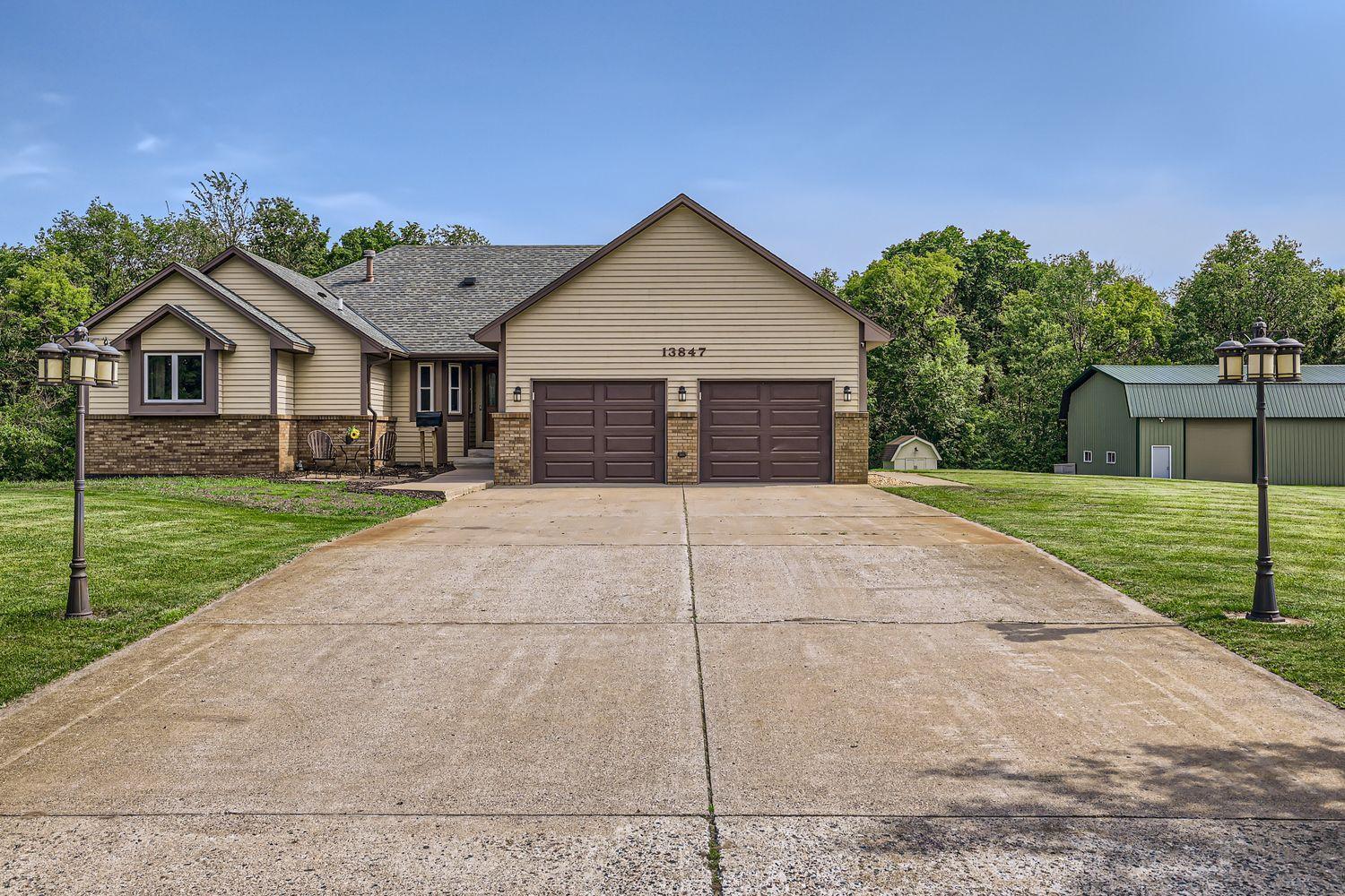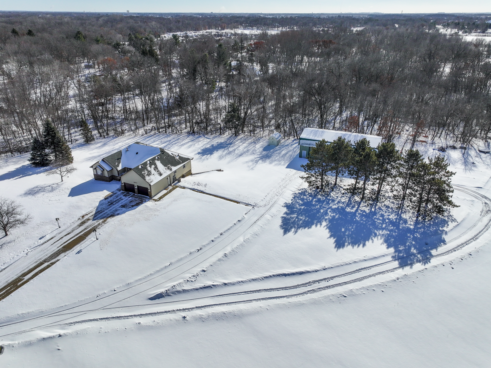 LARGE 60X40 FINISHED POLE BUILDING AND the sellers have the information needed to potentially divide the property into two PIDsadding significant value and future potential.Owning 12+ acres in Ham Lake is a rare opportunity, especially on a quiet cul-de-sac just off Bunker Lake Blvd & Radisson Road.This beautifully updated one-level living home has been fully remodeled with a stunning kitchen featuring new cabinetry, stainless steel appliances, abundant counter space, and a walk-in pantry. A large dining room window was added to showcase peaceful views and flood the home with natural light. New flooring, lighting, paint, and complete kitchen and bathroom remodels were completed in 2022.The main-floor primary suite offers a spa-like retreat with a fully remodeled bathroom including a walk-in shower, private commode room, his & her walk-in closets, double vanity, and separate jetted tub. Main-floor laundry is conveniently located off the garage with a laundry sink and commode. French doors lead to a spacious four-season knotty pine porch with deck accessperfect for year-round enjoyment.The lower level is an entertainers dream, featuring custom trim, acoustic ceiling tiles, surround sound, a second kitchen with wet bar and 220V oven wiring, a large family room with game and dining space, two bedrooms with egress windows, and a walk-out to the backyard. A bathroom with double vanity and generous storage completes the space. With direct exterior access, the lower level could easily function as a rental or guest suite.The 60x40 pole building INCLUDES A HEATED SHOP, separate cold storage bay, two lofts, and an internal pass-through allowing vehicles to move between heated and cold spaces. Additional highlights include an impressive loft in the cold storage area and a 12x12 workshop within the heated space, finished with white steel wall paneling and durable rubber flooring. Storage options here are truly exceptionalideal for vehicles, equipment, hobbies, and more.