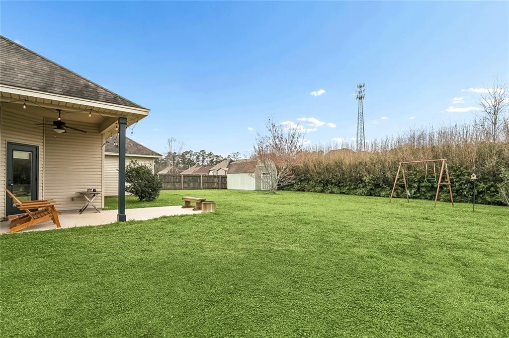 Beautiful well maintained YAR Construction home on one-loop street, offering comfort, functionality, and a true sense of warmth from the moment you enter the foyer. The open living, dining, and kitchen areas overlook a spacious backyard and covered patio perfect for relaxing or entertaining. The kitchen offers custom solid wood cabinetry, brick breakfast bar, and granite counters. The well-positioned laundry room is conveniently located just off the kitchen and near the garage for everyday ease. The primary suite is generously sized and features a soaking tub, separate shower, and a large walk-in closet.Two additional bedrooms offer great space, ceiling fans, and ample closet storage. The fully fenced backyard provides plenty of room to enjoy outdoor living and includes a 20x16 shed with electricity including AC ideal for storage, hobbies, or a workspace.A wonderful opportunity to own a thoughtfully designed and well-cared-for home