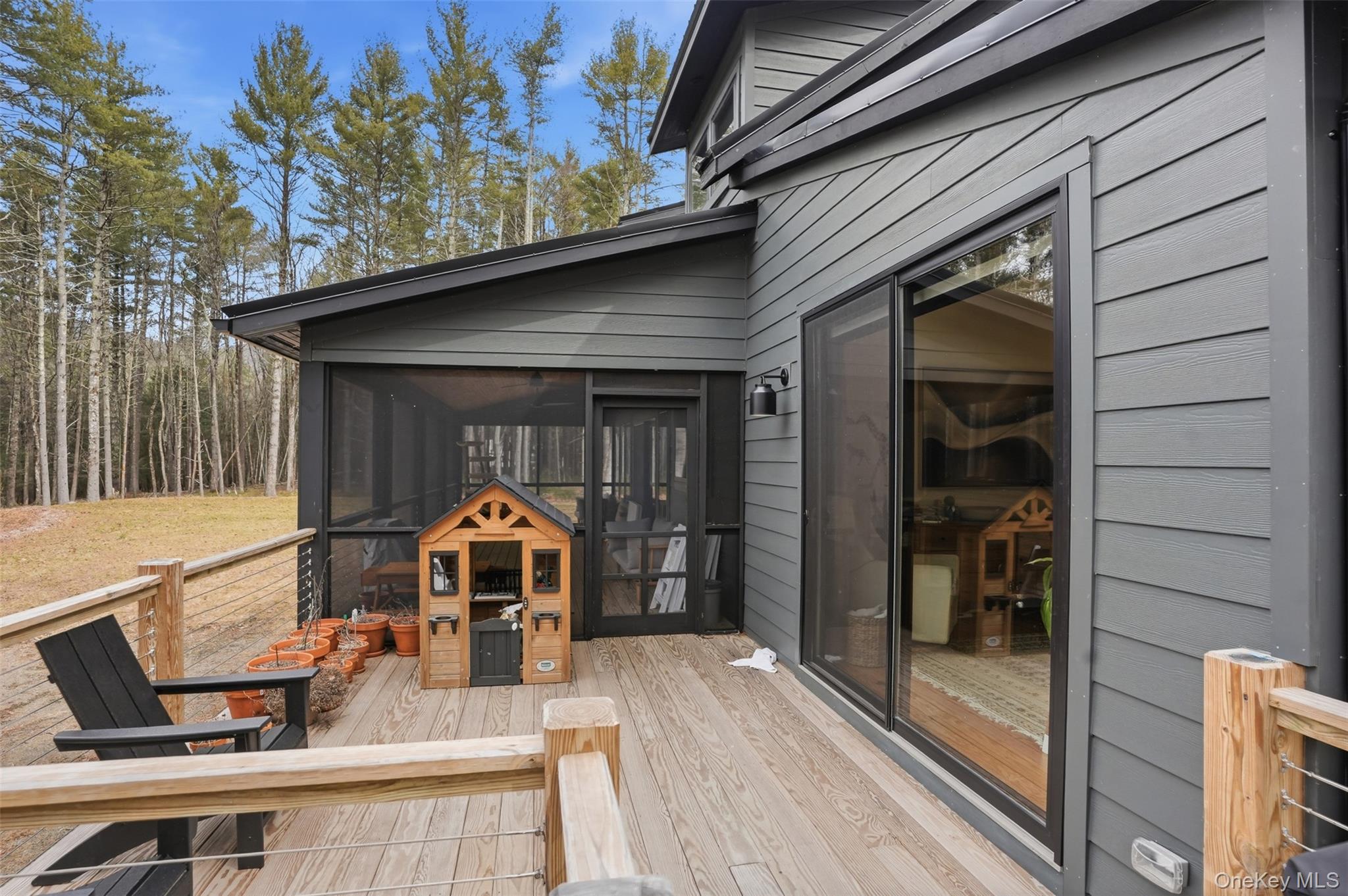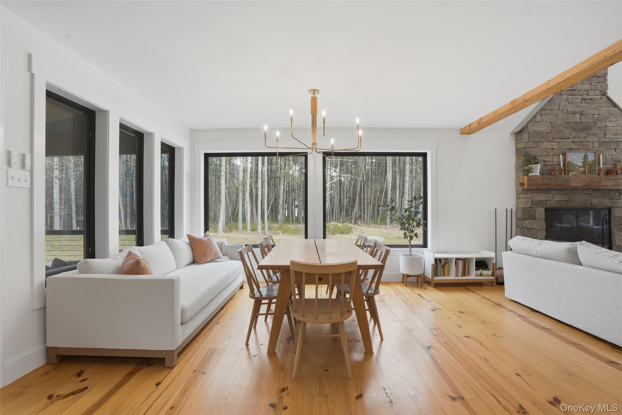 Built in 2023 and set on over seven private acres, this stunning contemporary home delivers modern design, open space, and true Hudson Valley serenity. Soaring ceilings and a thoughtfully designed open floor plan fill the home with natural light, creating an atmosphere that is equally suited for peaceful everyday living and effortless entertaining.The sleek, modern kitchen flows seamlessly into the living and dining areas, anchored by a wood-burning fireplace that brings warmth and character to the heart of the home. Five spacious bedrooms and three and a half beautifully appointed bathrooms, including a first-floor primary suite that provides both privacy and convenience. Step outside to a screened-in porch and expansive deck, perfect for outdoor dining, or head down to the fully finished walkout basement - ready for a home gym, media room, guest suite, or additional living space tailored to your needs.Just 15 minutes from the craft breweries and Inness in Accord, and a short drive to Stone Ridge, this is the rare property that gives you total privacy without sacrificing access to the best the Hudson Valley has to offer - all within a new, turnkey home.