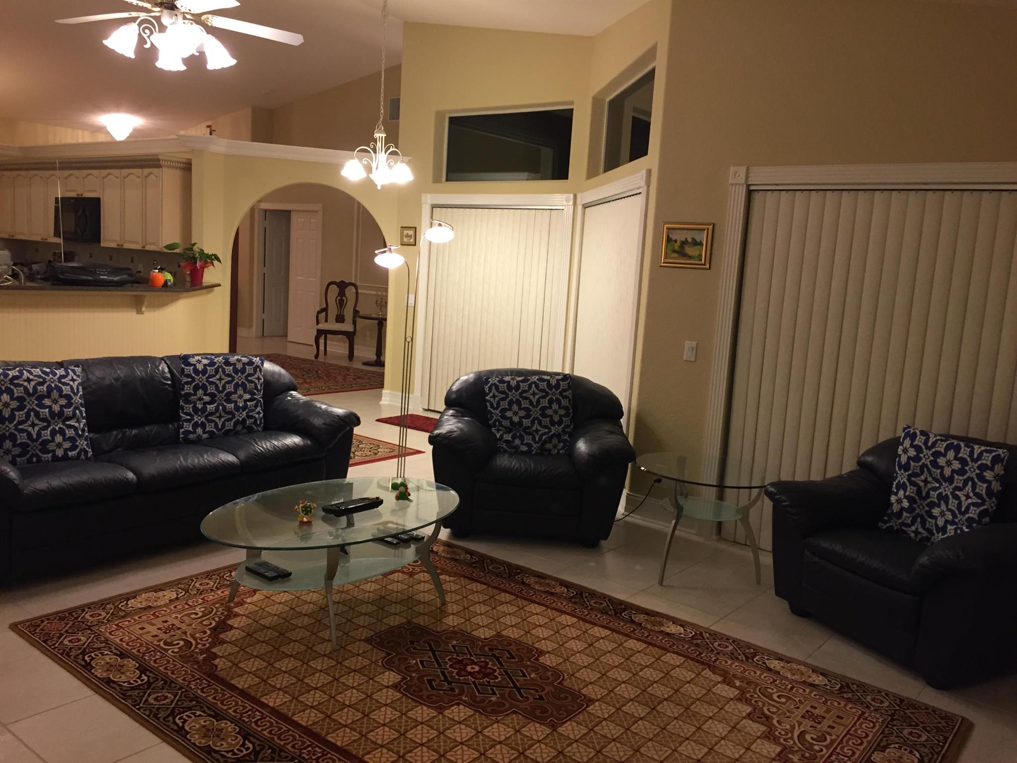Immaculate and spacious 4-bedroom (Queen beds), 3 full bathrooms home conveniently located just 2 minutes from Saddle Trail Park and Paddock Park farms, within golf-cart distance to Palm Beach International Equestrian Center. This home is fenced and features private heated pool and is fully equipped with everything you'll need, including HiFi home theater system, flat screen TVs, Wiiu gaming console, Wifi, linens and kitchen utensils. No HOA restrictions, you are welcome to bring your pick-up truck! === Please don't hesitate to inquire with any special request.