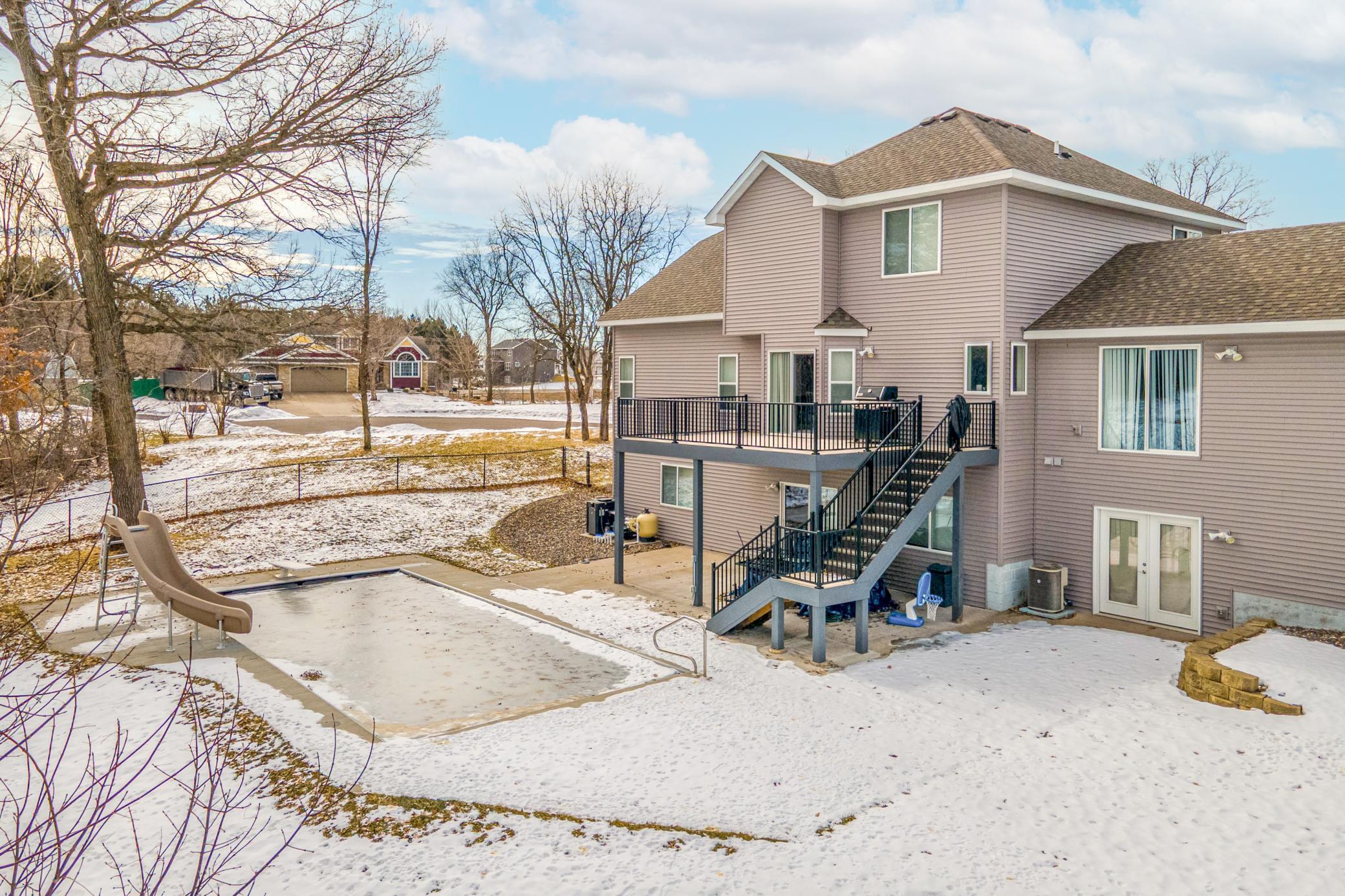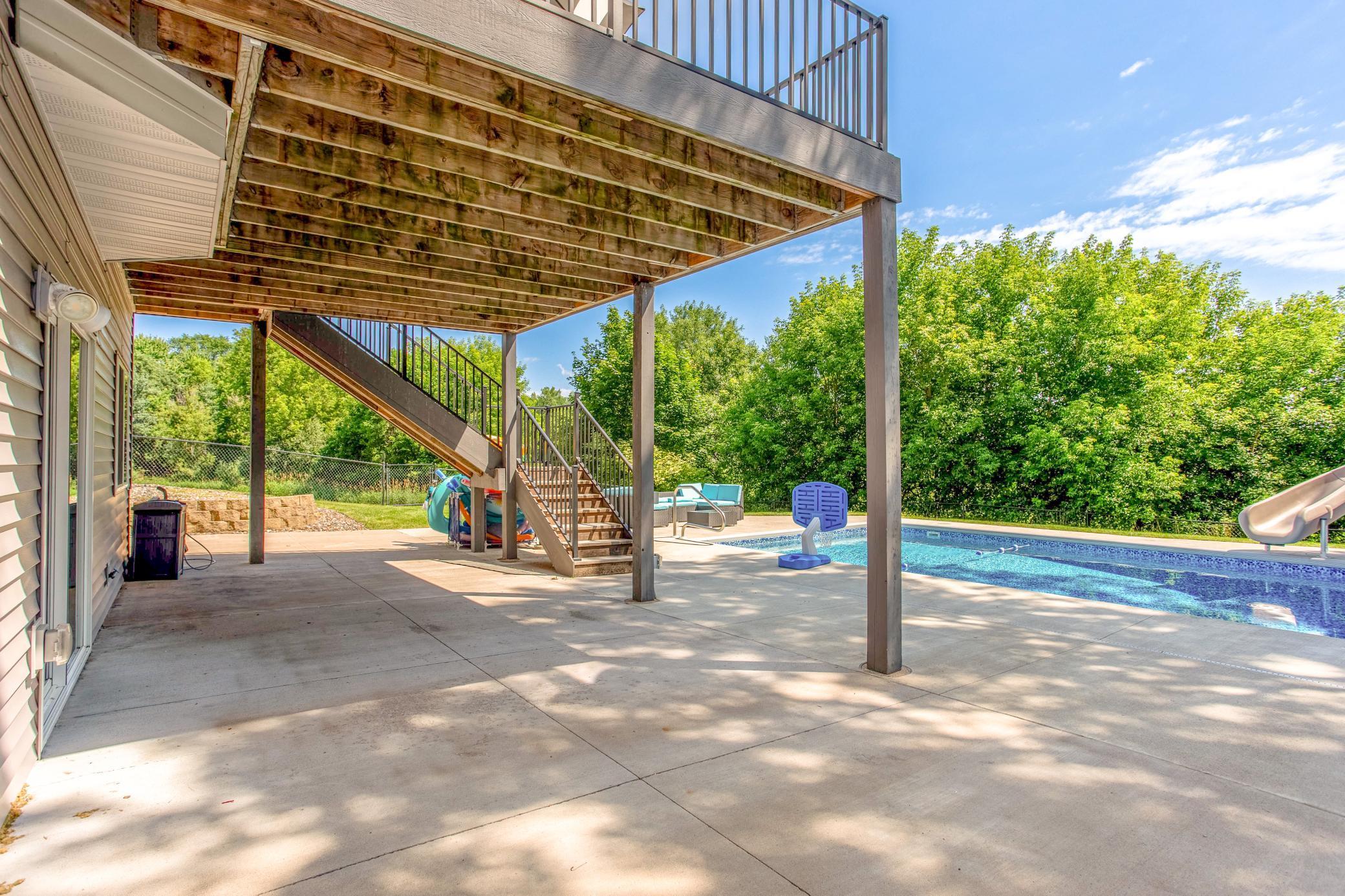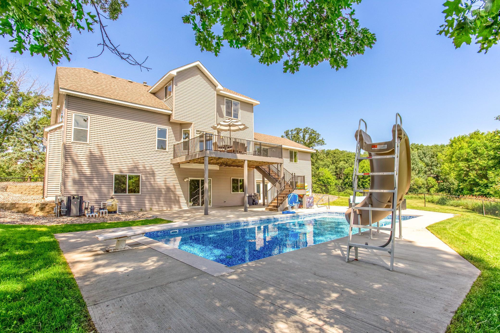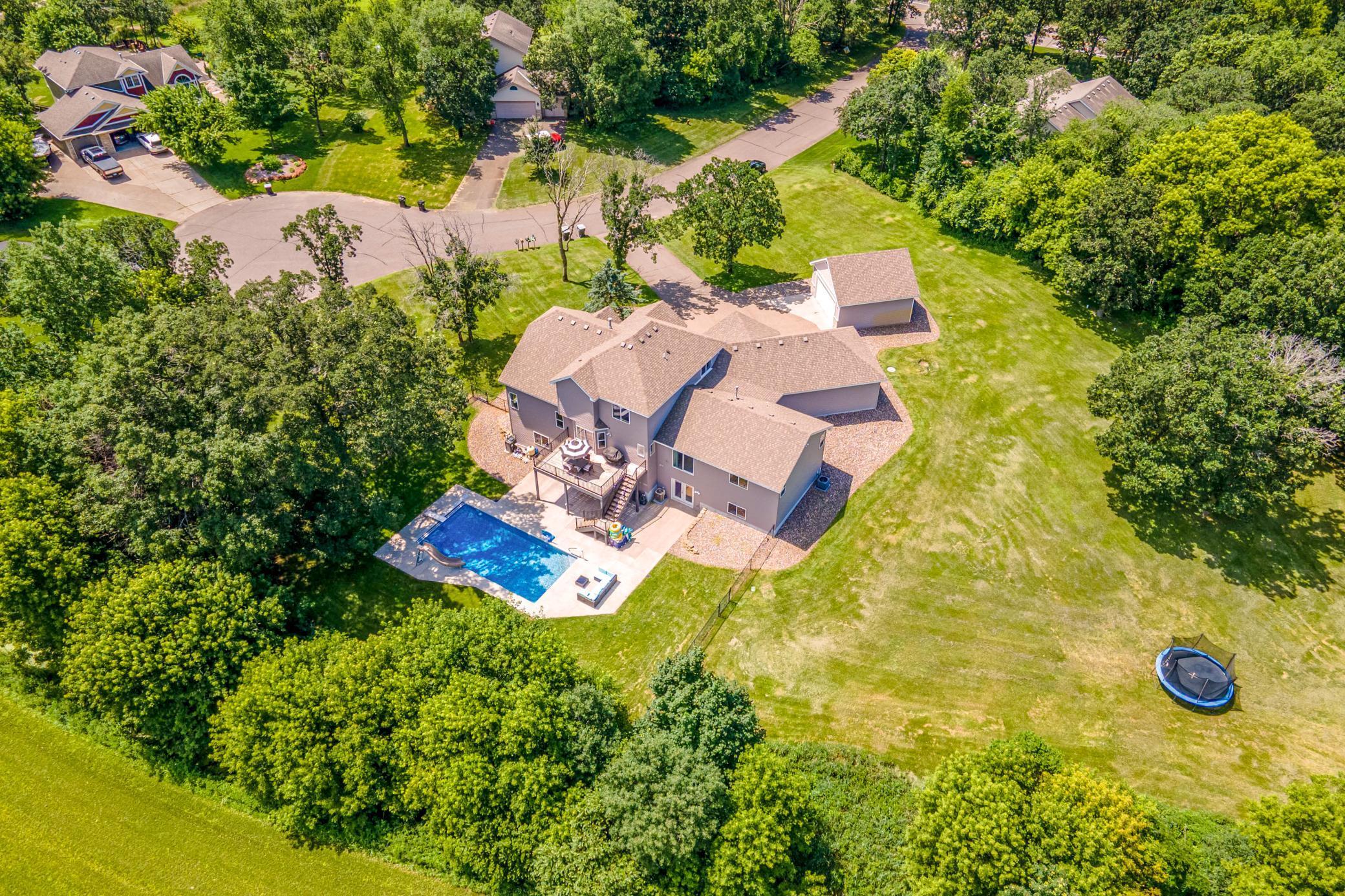 Nestled on a scenic 1.53-acre cul-de-sac lot, this exceptional estate offers nearly 5,000 sq ft of beautifully updated living space designed for comfort, functionality, and effortless indoor-outdoor living. Step outside to your private backyard retreat with a brand-new 35x16' in-ground pool complete with slide, retractable cover, and hot tub hookupideal for summer enjoyment. A 4-car attached garage plus a 22x22' 2-car detached garage provide all the space you need for vehicles and hobbies. Inside, youll discover a bright and open floor plan with soaring vaulted ceilings, abundant windows, and a stylish neutral palette throughout. The eat-in kitchen is a chefs dream, featuring granite countertops, a custom tile backsplash, new stainless-steel appliances, a large center island, and open sightlines into the dining and living areasa perfect setup for entertaining. A generous dining area with buffet-style bar and sliding glass door leads to the outdoor deck, while the adjacent sunlit living room boasts a gas fireplace framed by stunning floor-to-ceiling windows. Off the vaulted foyer nearby, you'll find both a den and a private office behind French doors. The main level includes a thoughtfully designed mother-in-law suite with its own private entrance via the garage, as well as two additional bedrooms, a bathroom, a family room, and a centrally located laundry room off the kitchen. Upstairs, the private primary suite offers a spacious walk-in closet and a luxurious bath with a dual sinkvanity, as well as a walk-in tile shower with glass doors, dual shower heads, and built-in bench seating. Two additional bedrooms are near the primary, each near a conveniently located full bathroom. The expansive walkout lower level is made for gathering, featuring a large rec room with card table nook, direct patio access, a sixth bedroom, full bathroom, and an impressive walkout exercise room with wall mirrors and ample space for equipment. Additional highlights include dual-zone HVAC, two new A/C units, a new furnace, and a new roof! This move-in ready home offers privacy, space, and stylish updates in a setting that feels like your own personal escape.