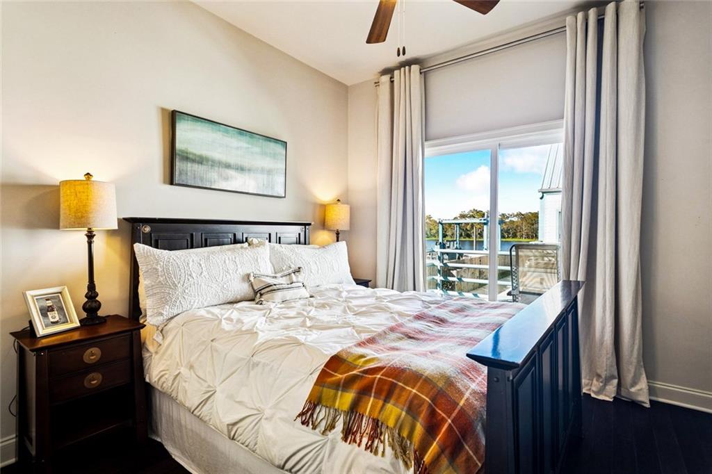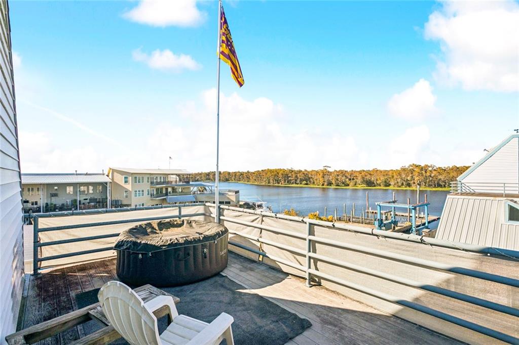 Waterfront living that feels like a getaway every day. This updated townhome-style condo sits directly on the Tchefuncte River and offers more than 1,800 square feet of refined, low-maintenance living with a private boat slip, rooftop balcony, and access to a riverside pool. Inside, the main level blends warm hardwood bamboo floors with recessed and dimmable lighting, a clean modern fireplace, and a quartz island kitchen with custom cabinetry, stainless steel appliances, and LED lighting beneath the uppers for a subtle glow day or night. The living area opens to a covered balcony where you can watch the boats drift by and feel the breeze off the river. The primary suite offers a calm retreat with room for seating, a walk-in closet, and a polished bath featuring a granite vanity, modern fixtures, and a tiled tub-shower surround. The second bedroom has its own full bath and storage, ideal for guests or a quiet workspace. Head up to the rooftop balcony for the real showpiece: wide, open river views that stretch in every direction, perfect for coffee at sunrise or a glass of wine at sunset. Recent upgrades include a newly built dock, an outdoor TV cabinet with privacy curtains, dim-control lighting throughout, and a newer refrigerator. Additional details include slam-proof cabinetry, tray ceilings, surround-sound wiring, multiple attic storage areas, a security system, and energy-efficient insulation and lighting. The covered space beneath the home connects directly to the boat slip, creating a shaded outdoor lounge just steps from the water. The HOA covers water, garbage, sewerage, flood insurance, exterior repairs, landscaping, and pool maintenance, so life here stays effortless. A true lock-and-leave river lifestyle just minutes from Old Madisonville restaurants and marinas. Tour this waterfront home and see why nothing else compares. Schedule your showing today.