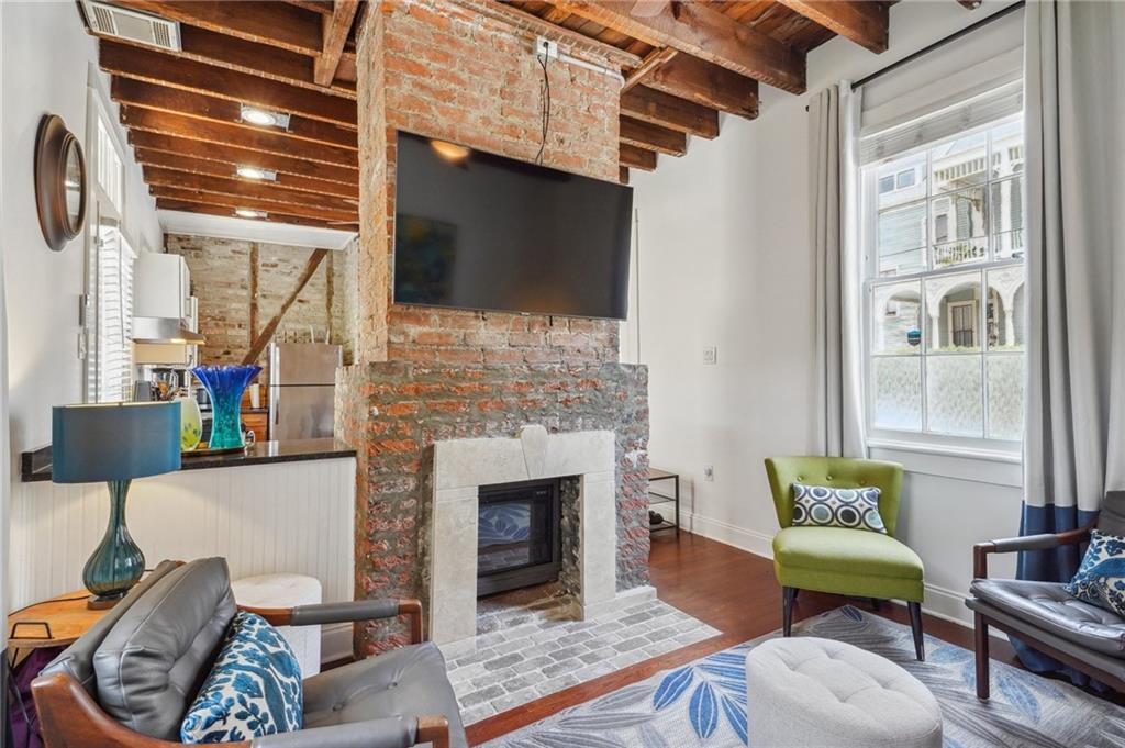 Charming condo located inside an architecturally beautiful, historic home overlooking Coliseum Park in the heart of the Lower Garden District. Conveniently located steps to St. Charles Avenue street car line and parade routes, while also a block from vibrant Magazine Street, and steps to trendy hotels including the Hotel Saint Vincent, Garden District Hotel and the Blackbird. Private entrance on Euterpe Street welcomes you to the open-concept floor plan with high beamed ceilings, mantles and exposed brick with an abundance of natural light. Spacious kitchen with stainless steel appliances, living room, and office nook complete the first floor with access to the relaxing shared courtyard off the kitchen. Upstairs, you will find two bright and airy generously-sized bedrooms, one full bathroom and one-half bath. Second floor leads to the shared laundry room with 3 sets of washers and dryers for the building. BRAND NEW SIDING, INSULATION, and EXTERIOR PAINT JUST COMPLETED BY THE CONDO ASSOCIATION! RECENT ASSESSMENT PAID IN FULL BY THE SELLER.
