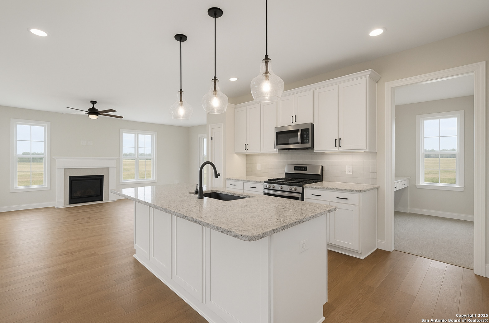 Zero Down is available on this 1,700 sq. ft. 3 bedroom, 2 bath farmhouse-style home sitting on a spacious 30,000 sq. ft. lot in Poteet, TX, just 15 minutes from San Antonio. Designed with an open floor plan, the kitchen flows seamlessly into the living and dining areas, creating a welcoming space that blends modern comfort with classic farm charm. The master suite offers a quiet retreat, while the additional bedrooms provide flexibility for family, guests, or a home office. Large windows bring in natural light, and the oversized lot gives you plenty of room for gardens, animals, or outdoor living in your own piece of Texas countryside. Located in the heart of Poteet-famous for its strawberries and small-town hospitality-you ll enjoy the best of both country living and city convenience. Virtual video is available at request.