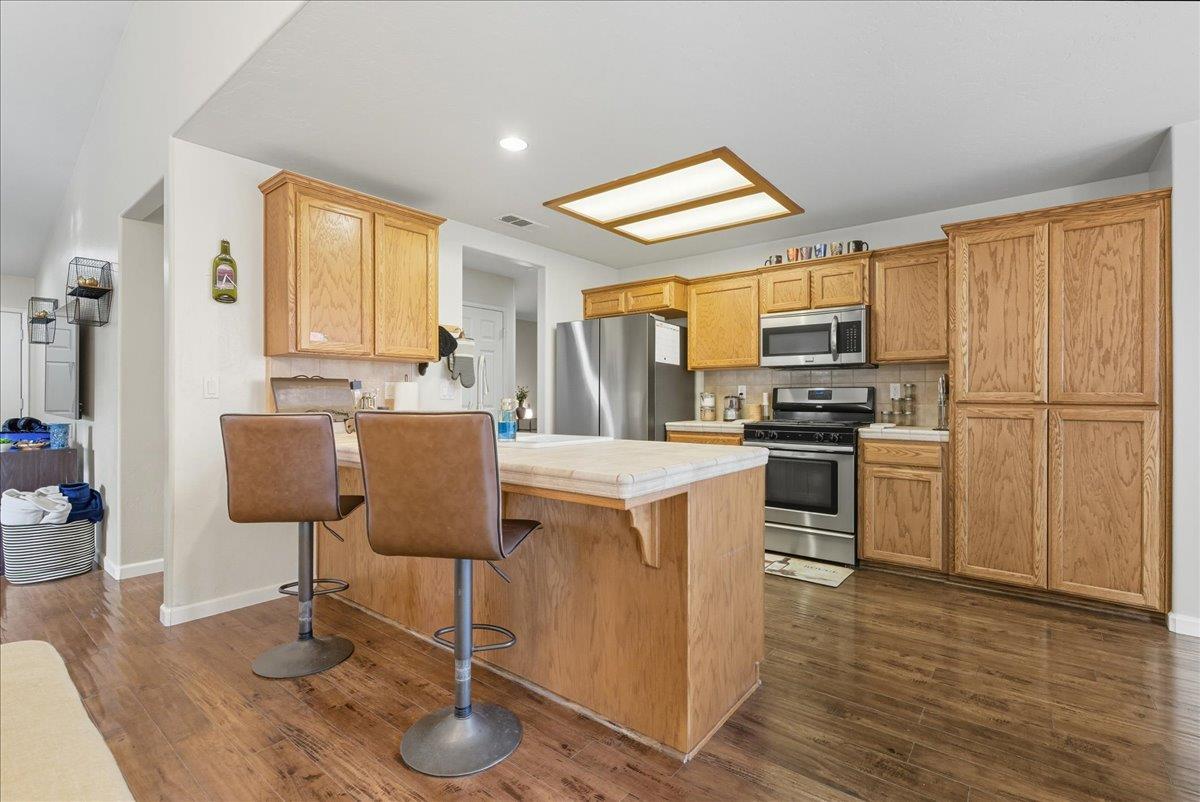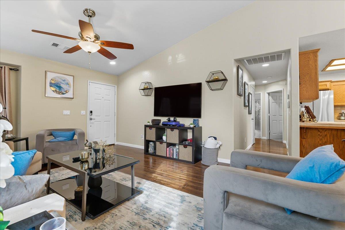 Welcome to 1411 W Bella Oaks Way, a charming and move-in-ready home located in The Vineyard, one of Hanford's most desirable and family-friendly neighborhoods. This beautifully maintained 3-bedroom, 2-bathroom residence offers the perfect blend of comfort, style, and convenience. Step inside to discover a spacious open-concept living area with modern vinyl flooring throughout, perfect for both everyday living and entertaining. The kitchen provides ample cabinetry and counter space, flowing seamlessly into the dining and living areas for a bright and inviting feel. The primary suite is a relaxing retreat with a generous walk-in closet and a private bathroom featuring a shower and tub combo for ultimate comfort. The backyard is designed for enjoyment complete with a gazebo, perfect for outdoor dining, barbecues, or simply relaxing on warm Central Valley evenings. Additional highlights include a 3-car garage offering plenty of parking and storage space, and a prime location within walking distance of a local park, ideal for morning walks, picnics, or playtime. Don't miss your opportunity to own a beautiful home in The Vineyard where comfort, convenience, and community come together.