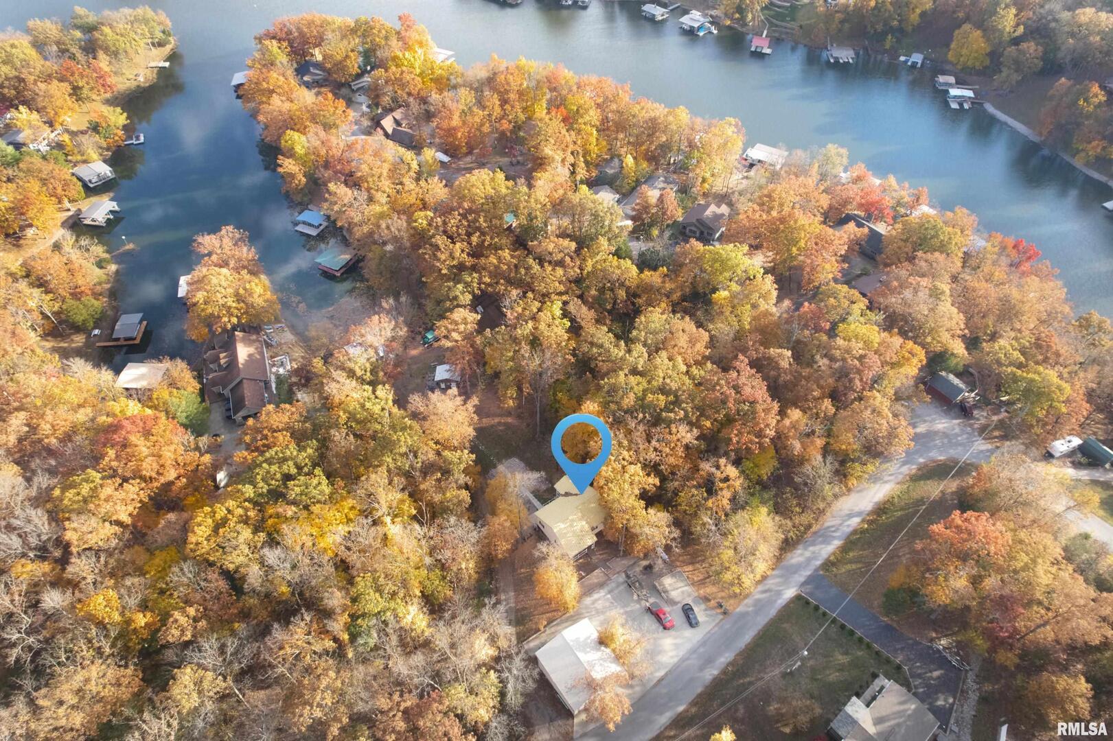 LAKE OF EGYPT, Experience Lake living in this quality custom-built waterfront home situated on 2.46 acres with woods on both sides for privacy, This 3-bedroom, 3-bathroom home features 10' ceilings on the main floor, luxury vinyl plank flooring throughout, and remote-controlled blinds. Step into a spacious open living and dining area with floor-to-ceiling windows overlooking the lake. The eat-in kitchen includes a farm sink, gas stove, stainless steel appliances, a large island, and abundant cabinetry. The primary suite offers sliding glass doors that open to a covered balcony overlooking the lake. This outdoor retreat is equipped with drop-down blinds on three sides for year-round enjoyment. The fully finished basement adds exceptional living space with two large bedrooms, a generous Jack-and-Jill bathroom featuring a walk-in tiled shower, a large walk-in closet, and a large family room with sliding glass doors leading to outside concrete deck. Low maintenance living continues outside with Trex decking on the front porch, steps and balcony and concrete stairs and stone pathway lead you down to the dock, as well as a golf cart path leading you to lake and thoughtfully designed landscaping incorporates rock for easy upkeep. Additional highlights include a 34' x 36' pole barn with an oversized door, concrete floor, and electric-perfect for boat or equipment storage-as well as a large concrete driveway offering ample parking for guests. Enjoy your own 2-slip covered boat dock