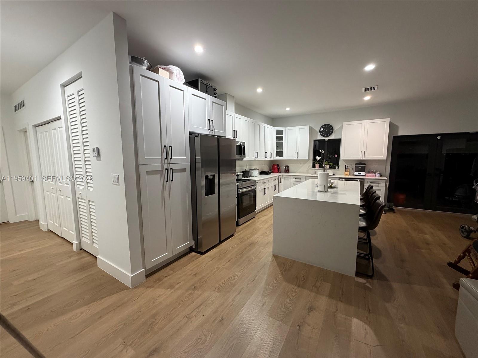Beautifully constructed in 2025, this 3-bedroom, 2-bathroom residence offers 1,450 square feet of modern living with brand-new features throughout, including the roof, flooring, kitchen, AC, and more. The stunning kitchen showcases stainless steel appliances, a spacious island ideal for cooking and dining, and is enhanced by abundant natural light as well as thoughtfully placed LED lighting. Modern laminate flooring flows seamlessly throughout the home. The exterior is accented with contemporary tile finishes, adding to its sleek curb appeal. Additional features include high-impact windows and doors, as well as an in-unit washer and dryer for added convenience.