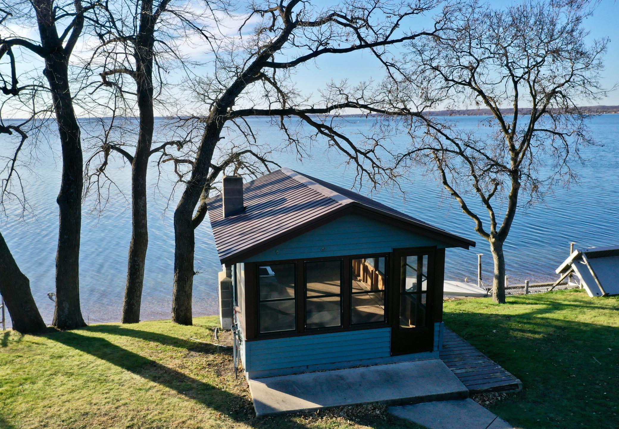 A rare find on Green Lake! 110' of prime level waterfront on Southwest Minnesota's premier lake! The property boasts .62 acres, a 3 bedroom - 1.5 bath home, 2 bedroom guest cabin with kitchen and full bath, and a boathouse. Enjoy swimming by day and breathtaking sunsets each night on the patio with outdoor fire pit or enclosed in the luxury of an existing boathouse! This generational property has been enjoyed seasonally for years and is ready for a new legacy to be born with you as the visionary! The property may be split to its original two lots if desired and a new or renovated boathouse to the same specs and location as the existing one. Be sure to take the 3D virtual tour for a better idea of the home and property layout and call for a personal tour.