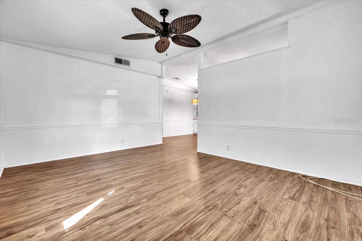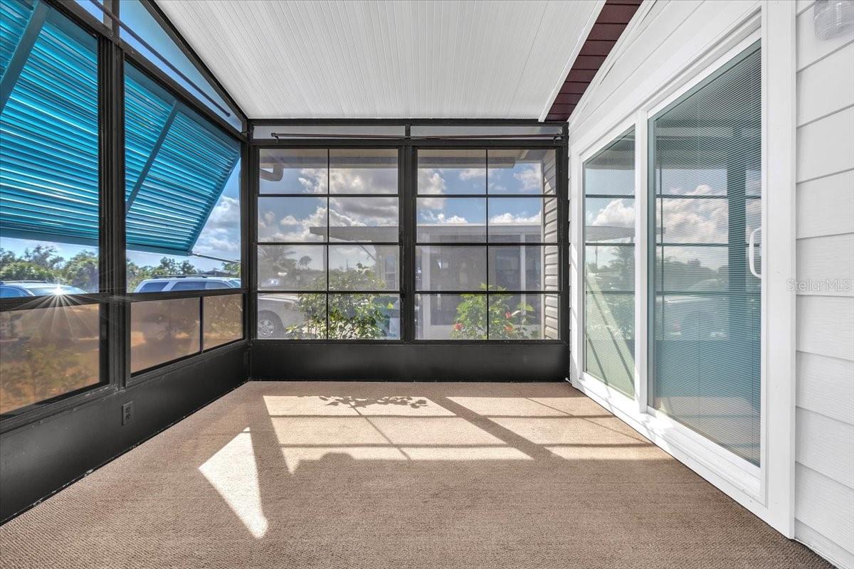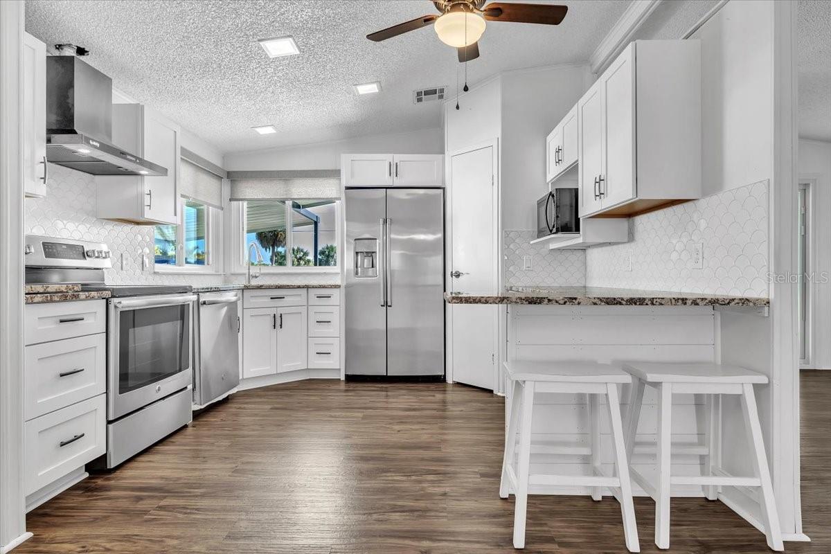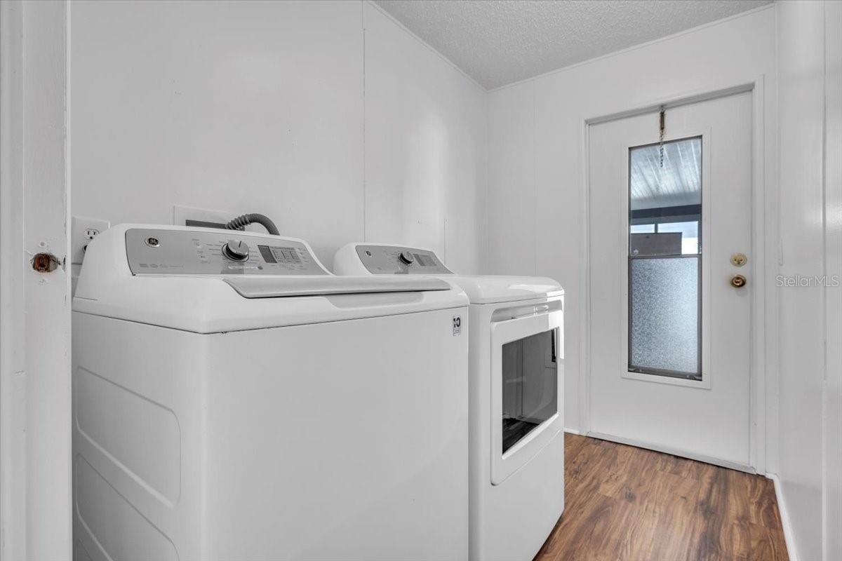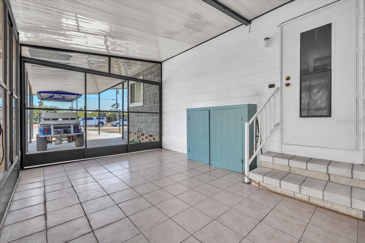 Welcome to this beautifully maintained 2-bedroom, 2-bath manufactured home with a Florida room, located in the highly desirable 55+ community of Vizcaya Lakes. Situated on a generously sized lot that you own, the property offers inviting curb appeal enhanced by tropical landscaping and mature palm trees. An oversized driveway provides covered parking for your vehicle along with additional space for a golf cartand the golf cart is includeddelivering both convenience and added value. Major updates provide peace of mind, including a new roof, A/C, siding, and windows installed in 2023, a whole-house generator, and a water heater replaced in 2018. Inside, the light-filled open floor plan is ideal for everyday living and entertaining. The spacious living area features high ceilings, a ceiling fan for added comfort, and new vinyl plank flooring throughout the home, offering a fresh, modern look with lasting durability. The living room flows seamlessly into the dining area and modern kitchen, creating an open and welcoming layout. The dining space showcases built-in cabinetry with generous storage and display shelving, a large wall mirror that enhances natural light, and a stylish statement pendant that adds warmth and character. The kitchen is thoughtfully designed with crisp white cabinetry, granite countertops, stainless steel appliances, a sleek range hood, and a decorative tile backsplash. A convenient breakfast bar offers additional seating, while the large window over the sink fills the space with natural light and pleasant views. Just off the kitchen, the laundry room includes a washer, dryer. The spacious primary bedroom provides a bright and relaxing retreat with soft coastal-inspired tones and a stylish ceiling fan. A standout feature is the impressive wall of closet space, offering abundant storage and organization. An arched opening leads to the updated en-suite bath, complete with a modern vanity, built-in cabinetry and shelving, and a walk-in showercombining comfort, style, and functionality for a true private retreat. The guest bedroom features large built-in closet, and convenient access to a full guest bath, making it perfect for visitors. Hop in your golf cart and take a short ride to the community center, where Vizcaya Lakes active 55+ lifestyle shinesoffering exercise classes, a community center, dinners and social gatherings, shuffleboard, two golf leagues, pickleball, monthly dances with live music, and much more. Conveniently located close to shopping, dining, and beautiful Gulf beaches, Vizcaya Lakes offers relaxed Florida living with endless opportunities to stay active and social. **PLEASE ENJOY THE 3D INTERACTIVE VIRTUAL TOUR ASSOCIATED WITH THIS LISTING**