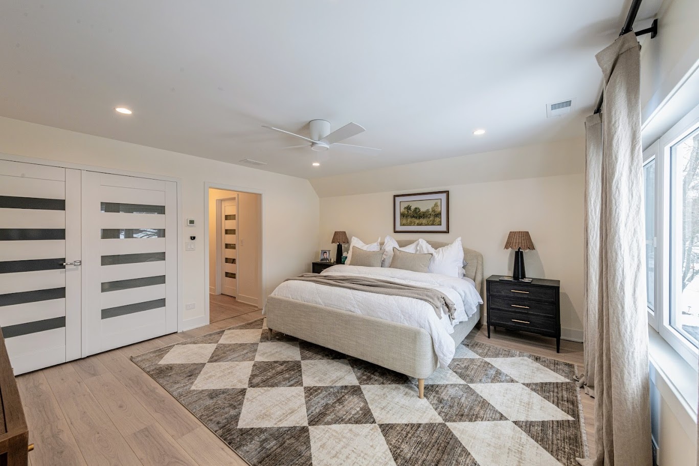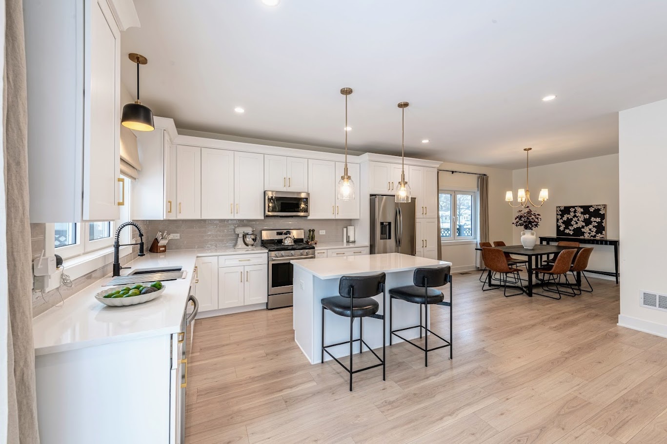 Welcome home to this beautiful modern corner-lot home, now featuring a fully finished basement-perfect for family fun, entertaining, or relaxing. A striking Golden Oak steel front door with polyurethane foam insulation and anti-burglary glass offers durability and peace of mind. The expansive open floor plan showcases sky-high ceilings, an electric fireplace, oversized sliding patio doors, and European double-pane tilt-and-turn windows with high R-value insulation, filling the home with natural light and excellent cross-ventilation. The sophisticated kitchen features white shaker cabinets with crown molding, Bianca Carrara quartz countertops, subway tile backsplash, two windows above the sink, brushed gold hardware, a black sink, and stainless steel appliances. The primary suite offers a private retreat with multiple closets and a luxurious ensuite complete with a double-sink vanity, freestanding soaking tub, and glass-enclosed shower with seating. European interior doors with concealed hinges, magnetic locks, and sleek modern hardware elevate the contemporary design throughout. The newly finished basement adds valuable living space-ideal for a recreation room, media lounge, home gym, or play area. Located just seconds from White Oaks Park with trails, playgrounds, workout stations, bocce court, and picnic shelter. Contact us today to schedule your showing of this incredible space!!