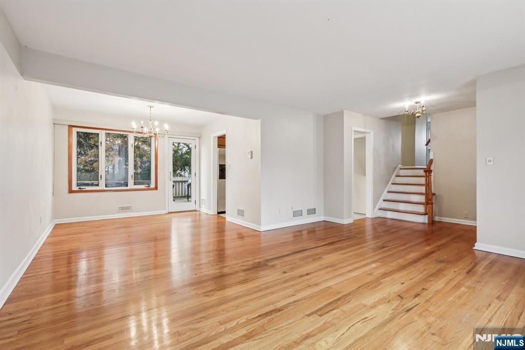 Welcome to this lovely, warm, and inviting 1488 sqft split-level home nestled on a quiet residential street. This beautiful home features 3 bedrooms and 2 full baths. Step inside to find a bright and open layout with hardwood floors throughout. The entry foyer leads to a formal living room and formal dining room, perfect for gatherings and entertaining. The modern eat-in kitchen has French doors leading to a spacious deck that overlooks a nice size yard - ideal for relaxing or summer barbecues. Upstairs, youll find three nicely sized bedrooms and a full bath. The lower-level family room is fully finished and includes a full bath and ample closets and storage. Plus a finished basement, offering even more living space or room for a home office, gym, or play area.