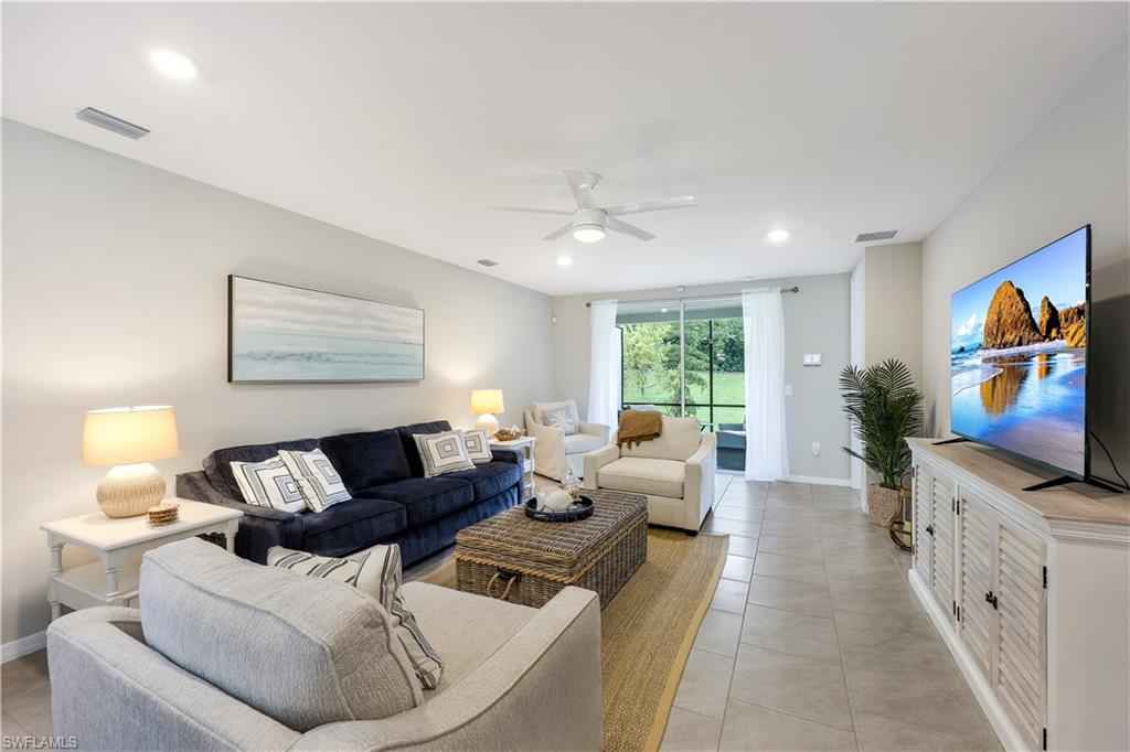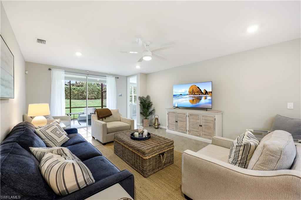 This exceptional 2-bedroom, 2-bath villa with a den/study offers 1,515 square feet of thoughtfully designed living space, perfect for comfortable Naples living, with an open floor plan ideal for entertaining.. Built in 2021, the home features a stunning kitchen with 42-inch cabinets, neutral granite countertops, a subway tile backsplash, and a spacious pantry. Tile flooring flows throughout the home, providing a sleek, modern look. The versatile den/study, enclosed by French doors, used as a third bedroom or serves as a private office space. Added bonus, this home also includes a 2-car garage, with access to a GOLF CART, two bicycles, and a grill. Situated in the amenity-rich Naples Reserve community, residents enjoy access to the Lagoon-style pool, a kiddie pool, fitness center, Tiki Bar and CafxE9; with regular entertainment, bocce courts, a lakeside fire pit, and a beach volleyball area at Sunset Beach. The Island Club experience offers a tropical lifestyle that is hard to beat. Only 15 minutes from Marco Island and down town Naples. Don't miss your chance to rent this beautiful villa in one of Naples' most desirable communities! RENTAL MONTHS AVAILABLE: December 2025 - $5,500. January 2026 - $7,000, May 2026 - $4,000, June 2026 - $4,000, July 2026 - $4,000, August 2026 - $4,000, September 2026 - $4,000, October 2026 - $4,000, November 2026 - $5,000, December 2026 - $5,500. **IF YOU RENT FOR MULTIPLE CONSECUTIVE MONTHS, THE MONTHLY RENTAL PRICE COULD BE NEGOTIATED.