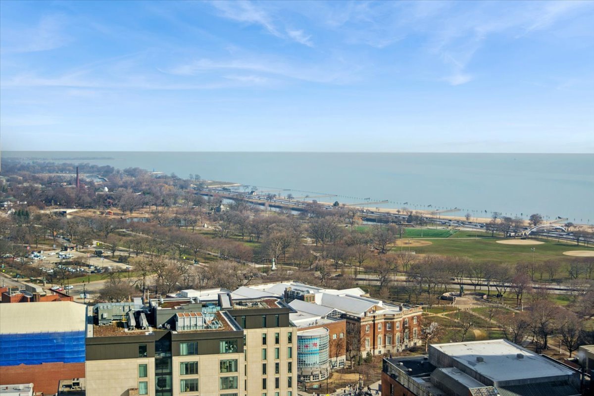 Penthouse with million dollar views !! 2025 Complete Rehab. Bright Jr 1 bedroom features hardwood floors throughout. Updated kitchen and bath. Closet space galore! Enjoy living in Sandburg Village. Building has a rooftop deck. Workout room, two community pools and tennis/pickleball courts are available. Walk to everything location. Shops, groceries, entertainment, dining and the North Ave beach lakefront are all just a few minutes away. Public Transit is a breeze, Redline is approx 1/4 mile, the 22/36 bus stops and Divvy station right across the street. All utilities except electric are included in the assessment. ...And that VIEW!!!