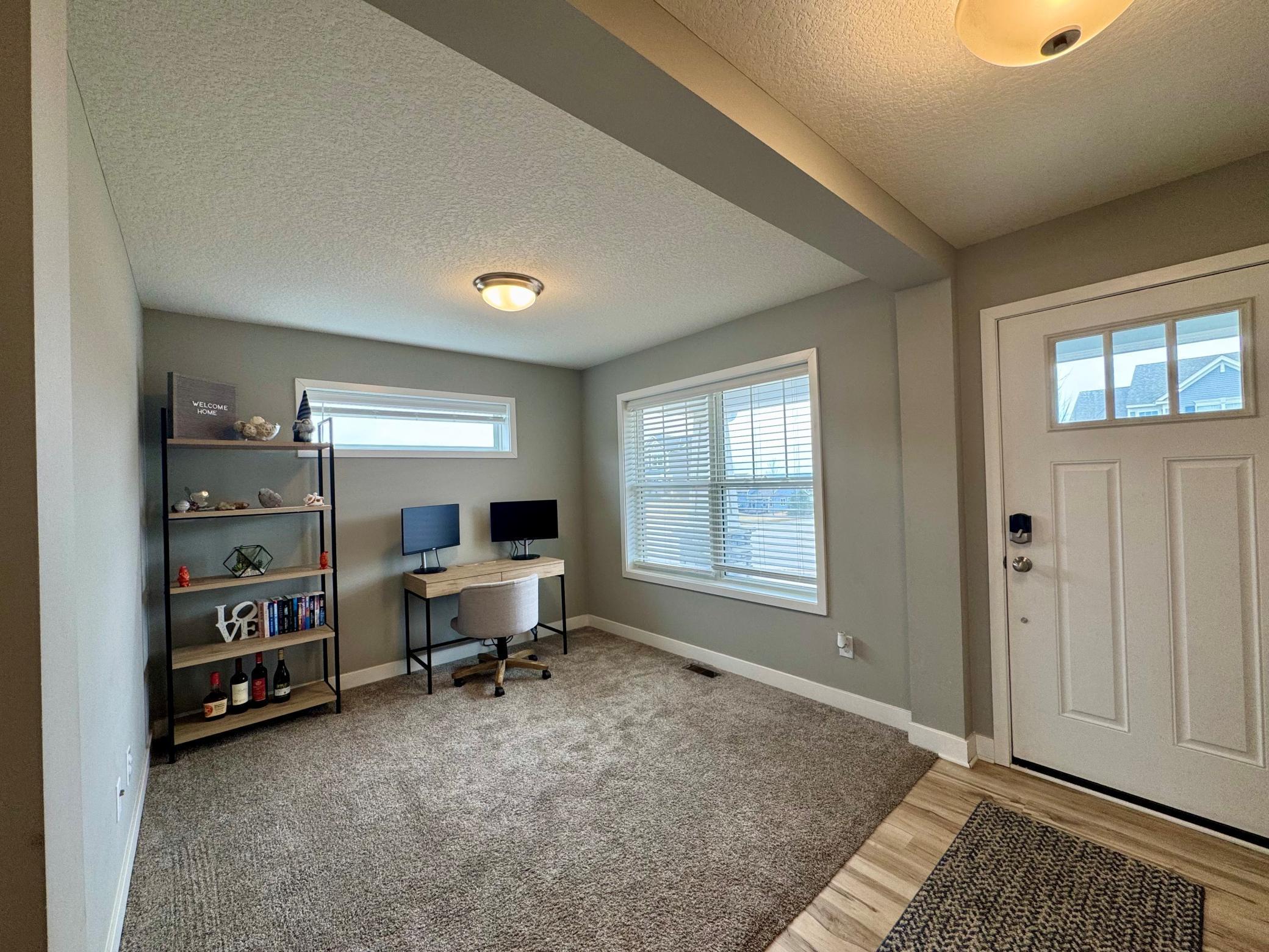Welcome to this move in ready, 5 year old home, in a desirable Carver neighborhood. Beautiful home with an open concept floor plan with 4 bedrooms, 3 baths, office and a 3 car garage. Lovely white woodwork throughput the home. lots of windows to let in plenty of sunlight. Charming covered front porch to enjoy the outdoors. The kitchen is functional with a center island, stainless steel appliances, white cabinetry and quartz counters. The living room has a sliding glass door to walk out to a lovely low maintenance composite deck with stairs to the backyard and overlooks a park with pond views! Convenient main floor office. The owners suite has a private 3/4 bath and walk in closet. The lower level offers a 4th bedroom and nice sized family room. Low maintenance exterior and gutters. High efficient HVAC and water heater. 200 AMP electric service. There is a storage shed in the backyard. Convenient location that is minutes from trails, parks, schools and highways. Welcome home!