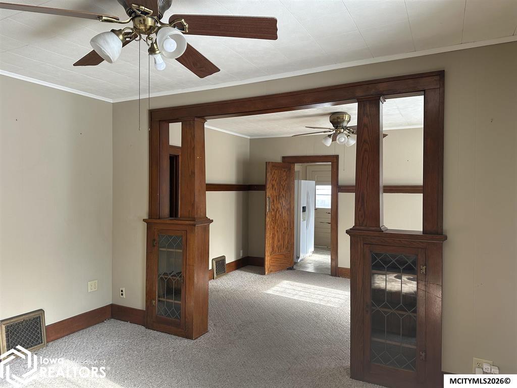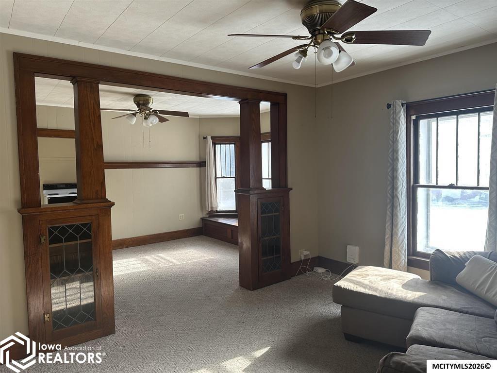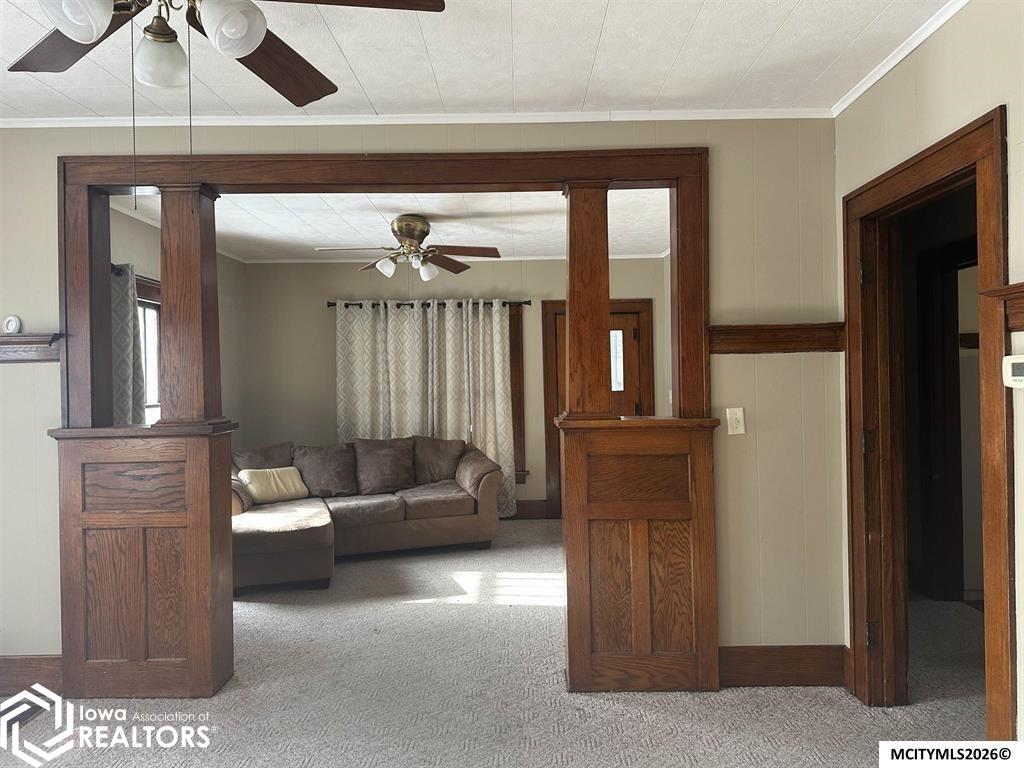Step back in to this 1912 home full of character and possibility. Beautiful original woodwork and classic colonnades showcase the craftsmanship. With both bedrooms and the laundry conveniently located on the main floor, this home offers easy living and great potential. While updates are needed, this property could truly become a stunning gem for the right buyer. The unique pie-shaped lot narrows to a peaceful endpoint along Chelsea Creek. Located near the hospital and just minutes from downtown Mason City, this home is priced below assessed value, making it an excellent opportunity to make it your own. Call today to schedule your showing and imagine the beauty this home could become!