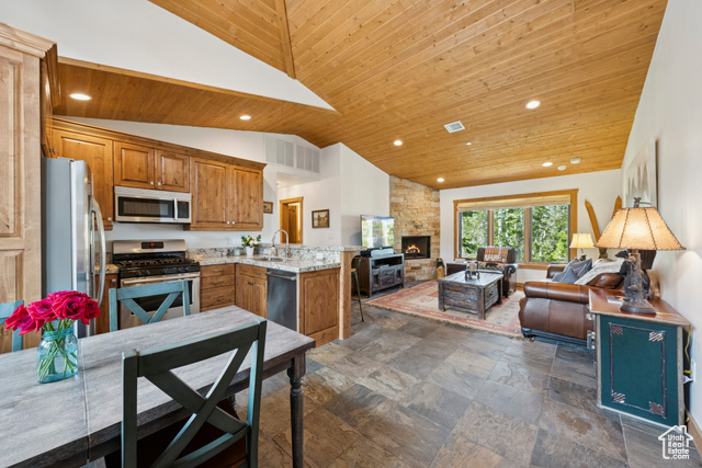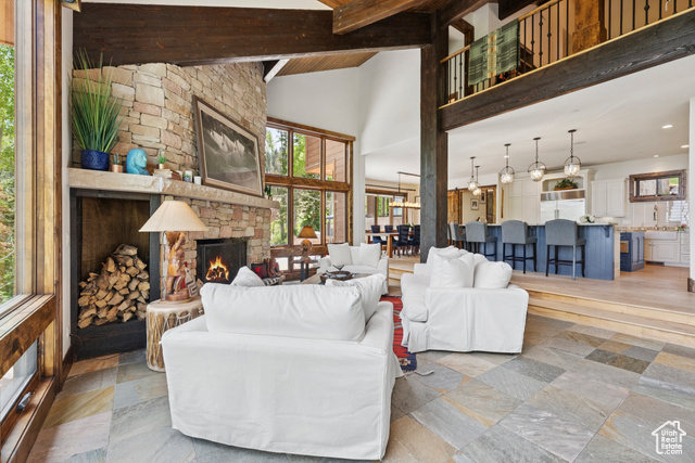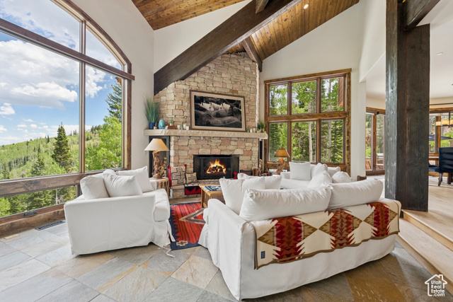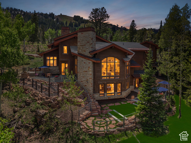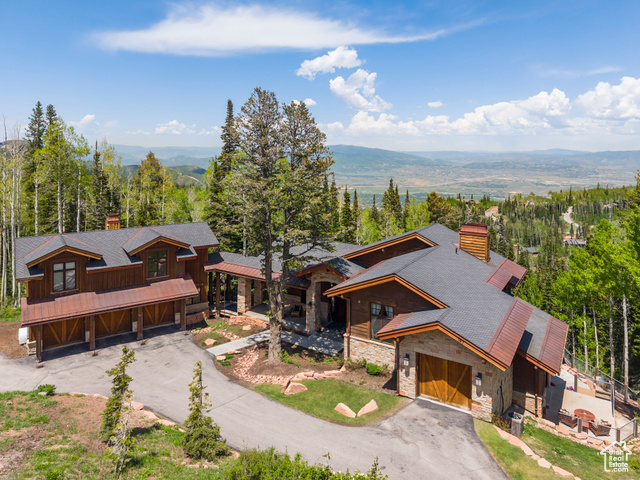Perched atop The Colony, Park City's premier ski-in, ski-out, gated community, this recently refreshed, timeless mountain retreat offers unmatched privacy, stunning down-valley views, and seamless ski access in a truly unforgettable setting. Set on 4.6 wooded acres, the home was designed for comfort, connection, and year-round mountain living. The open floor plan features a spectacular great room with vaulted ceilings, exposed beams, a grand stone fireplace, and expansive windows that frame the breathtaking views. The updated gourmet kitchen is ideal for entertaining, complete with high-end appliances and generous prep space. The main-level primary suite includes a fireplace, dual closets, a jetted tub, and a steam shower, the ultimate aprs-ski escape. Five additional en-suite bedrooms in the main home are thoughtfully located for comfort and privacy. Steps away, a charming 2-bedroom, 2-bathroom guest house offers its own kitchen, living area, fireplace, private hot tub, and ADA access, ideal for guests or extended stays. This incredible home offers premier ski access with direct ski in from three lifts, Dreamcatcher, Dreamscape, and Daybreak, and ski-out to six lifts. Enjoy unrivaled privacy, serene seclusion, and effortless access to some of the best uncrowded ski runs and legendary champagne powder, plus cooler, breezy summers above it all.