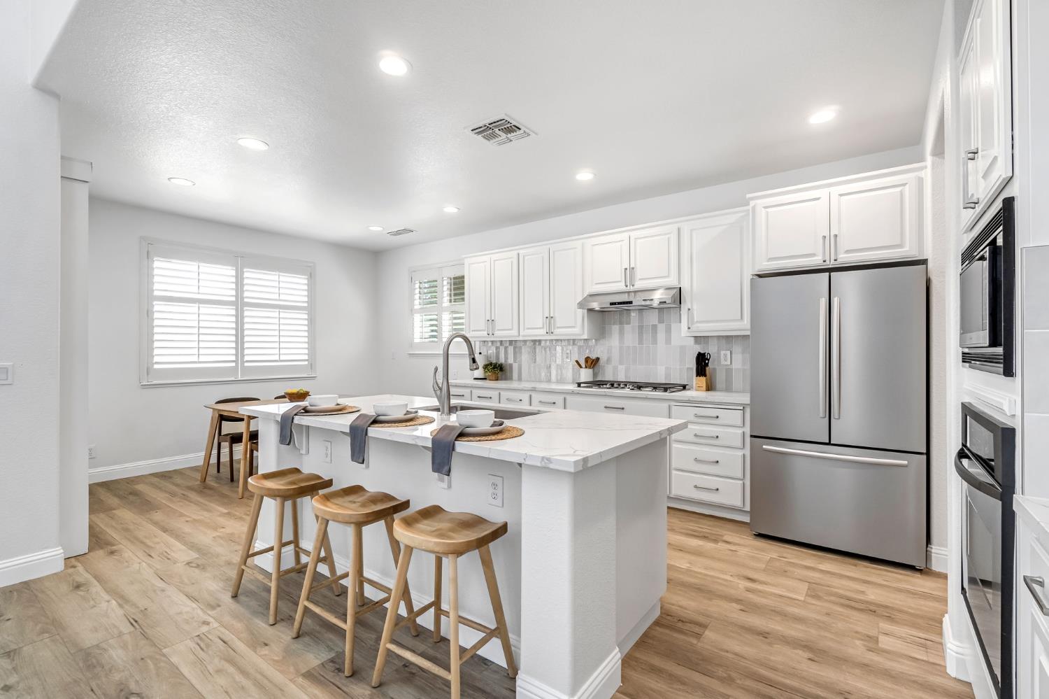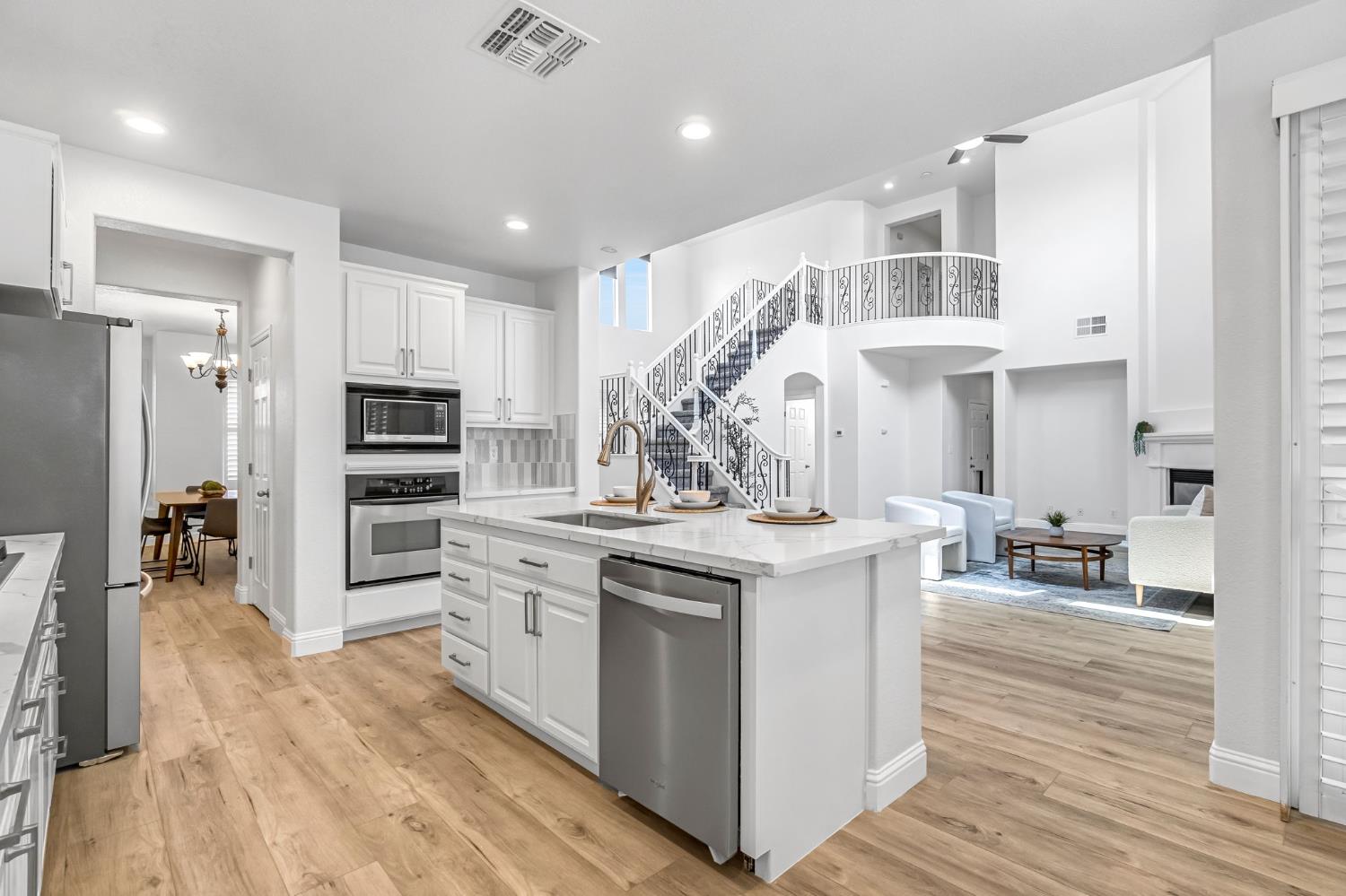 Step inside this stunning two story home in a desirable gated community, offering 4 bedrooms and 2.5 bathrooms with a layout designed for both comfort and style. The grand entry welcomes you with soaring ceilings, abundant natural light, and a sweeping staircase that sets the tone for the home's elegance. The spacious living room features a cozy fireplace and large windows, creating a bright and inviting atmosphere.The updated kitchen is the heart of the home, showcasing white cabinetry, stainless steel appliances, and a large center island with seating perfect for gatherings and entertaining. Upstairs, the private bedrooms provide comfort and space, while the secluded primary suite offers a retreat of its own. Step outside to enjoy tranquil views as the property backs up to a peaceful pond, ideal for relaxing or unwinding.Residents of this gated neighborhood enjoy convenient amenities including a pool, spa, clubhouse, exercise room, playground, lush green space, and the added security of a community guard. With its fresh finishes, modern appeal, and unbeatable setting, this home offers both elegance and lifestyle in one!