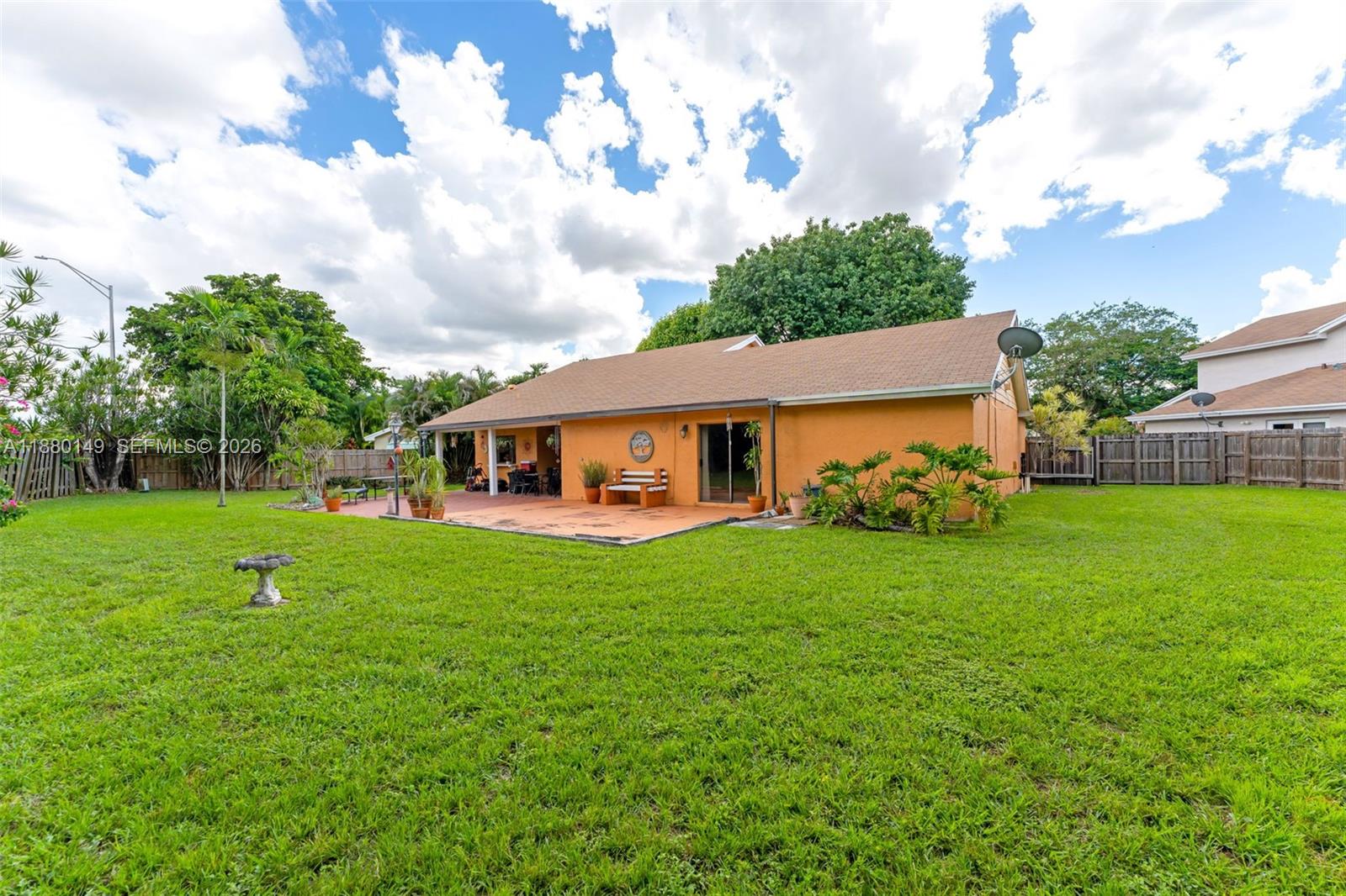 Charming 4-bedroom, 2-bathroom home on an oversized 15,000 sq. ft. cul-de-sac lot in the highly desirable Lakes of the Meadow, one of the most family-friendly communities.Recently updated bathrooms and a brand-new AC unit provide comfort and peace of mind. The split-floor plan provides additional privacy, separating the master suite from the rest of the bedrooms.Additional highlights include a 2-car garage, and a separate laundry/utility room. The spacious yard is perfect for family fun and entertaining, with a covered terrace and plenty of space for a pool. The large front features a curved driveway with ample parking. Conveniently located near top-rated schools.THIS IS A RARE OPPORTUNITY TO OWN A PROPERTY IN A COMMUNITY WHERE HOMES ARE SELDOM AVAILABLE.