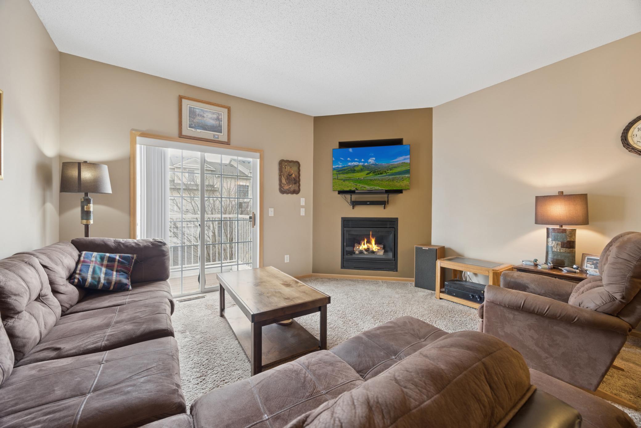 Move right into this well maintained three bedroom, two bathroom townhome offering a comfortable three level layout and low maintenance living. The main living level features a bright and inviting living room with a cozy fireplace and access to a maintenance free deck, perfect for relaxing or entertaining. This level also includes an informal dining area, kitchen, a versatile bedroom that can easily function as a home office, and a convenient 3/4 bathroom. Upstairs you will find two spacious bedrooms and a full bathroom. Enjoy the convenience of a two car attached garage and HOA dues that cover exterior maintenance for easy living. Ideally located near Sunfish Lake and several parks and trails, with quick access to Highway 10 and Highway 47 for an easy commute. Just minutes from the Ramsey COR retail district featuring shopping, dining, and everyday conveniences. A fantastic opportunity to enjoy comfortable, low maintenance living in a convenient and growing Ramsey location.