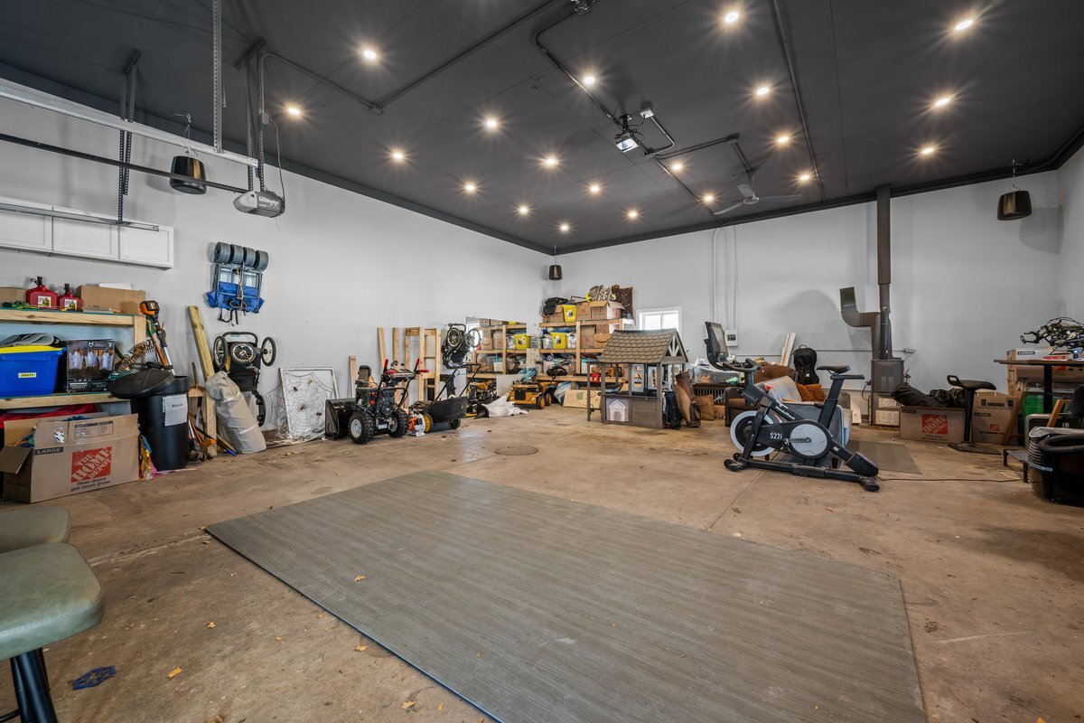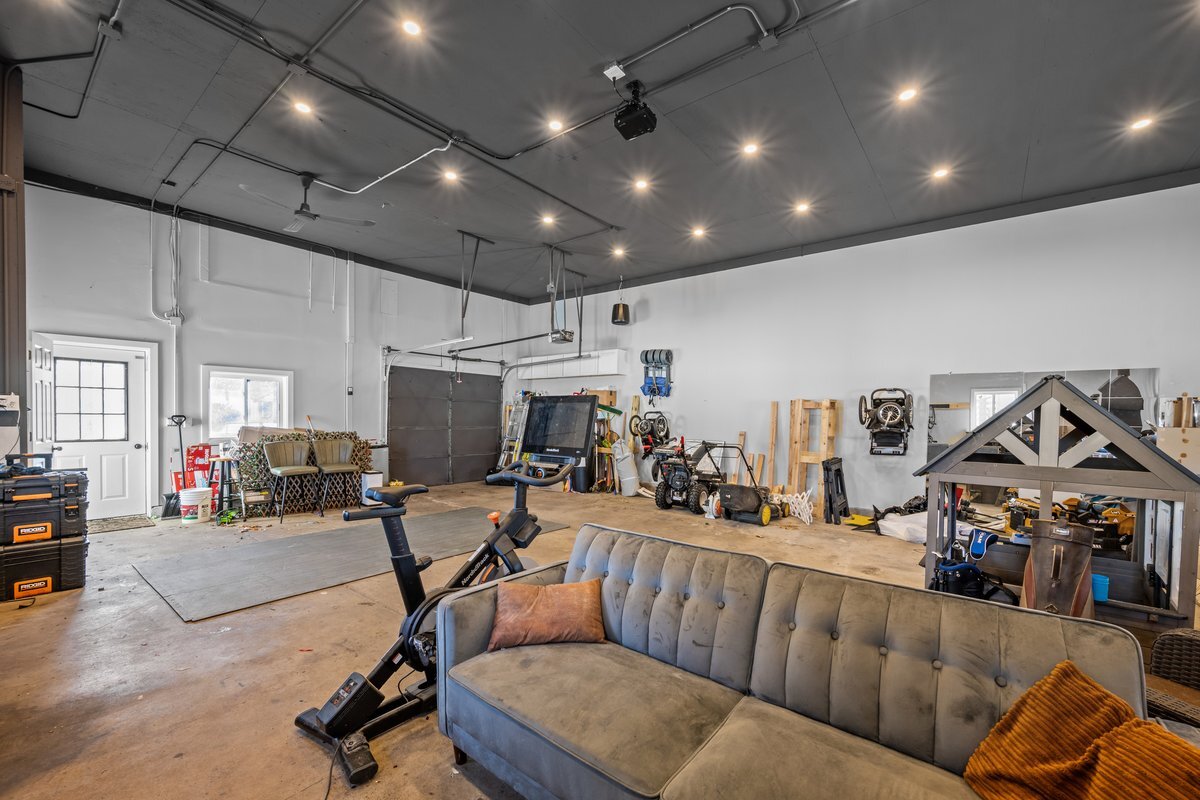A rare opportunity with endless income, business, and hobby potential! This beautifully updated home also features an extraordinary heated 5 plus car garage that truly sets it apart. The massive outbuilding/garage, is heated and thoughtfully equipped with a half bathroom, ceiling fans, recessed lighting, and a projector setup for movie nights or game days. Whether you're a contractor, car enthusiast, small business owner, or entrepreneur, this space offers unmatched flexibility. Perfect for a home-based business, workshop, studio, storage, side hustle, or additional income stream. Opportunities like this are hard to find. The updated home is designed for comfortable everyday living. Inside, you'll find newer luxury vinyl plank flooring in the kitchen, dining area, and main-level bath. The updated kitchen features quartz countertops, a farmhouse sink, ample prep space, and a generous eat-in area, flowing seamlessly into the dining room and spacious family room. Upstairs find three large bedrooms, plus a versatile flex space ideal for a fourth bedroom, office, or playroom, along with convenient second-floor laundry. Step outside to a covered deck overlooking a fully fenced yard, providing privacy and a secure space for kids or pets. The basement is full and unfinished. If you've been searching for a property that allows you to live, work, and earn in one place, you just found it. This home comes with numerous recent upgrades: Roof and gutters (2024): Screens (2024): New Front Door (2024): Quartz Countertops (2024) Lifetime-warranty LVP flooring (2024): Cleaned and sealed ducts (2024): Eco-friendly HVAC system with heat pump (saving on heating costs) and whole-house humidifier and dehumidifier (2024) Active radon remediation system. Don't miss this incredible opportunity! Welcome Home!