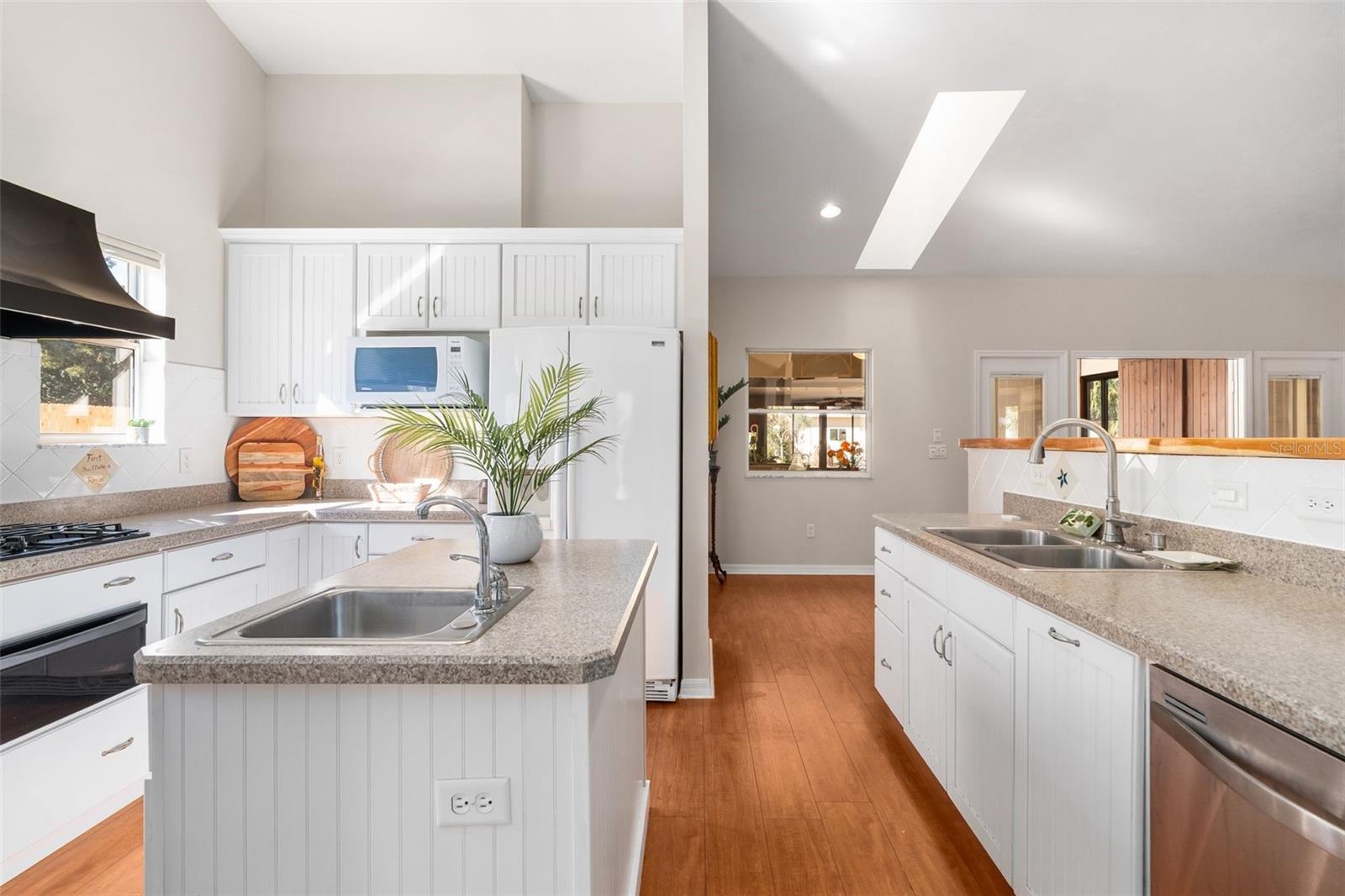 This Beautiful one owner home was custom built for an active lifestyle and casual enjoyment with an open floor plan that has lots of natural light throughout. The carport is perfect for those with larger vehicles with 8ft. height and storage along one wall plus an attached studio/workshop with roll door and A/C. The sidewalk leads to the French doors that open to a 24x36 Detached Workshop with 50 gal 230v Air Compressor, A/C and Ht., tankless water heater and several skylights for natural light, automatic bay doors, a bathroom and kitchen area. It could be easily converted to an ADU for a second family or Air BnB and still have room for a shop. The main home has plenty of room to spread out including an office/study with built in bookshelves and glassed french doors and a separate dining room that could be a second office or music room. The fully equipped kitchen has a gas range, oven with a warming drawer, counter depth refrigerator, and prep sink in the island. Breakfast area can accommodate a small bistro or a larger dining room table. The great room has a gas fireplace with French doors that open onto a huge family room that is the perfect spot for entertaining family and friends. It has two living areas, a wet bar and coffee station, Spa and sliding glass windows overlooking private yard. There is also a garden storage shed for lawn and landscape tools. There is also large 16 ft. gates on the back side with a perfect spot for your boat and RV with sewer dump station . The total property for house and shop is .8 acres and can be accessed by the back of the property on 142nd St. or through the 10 ft. automatic swing front Gate on 143rd Terrace next to the house. There is a second tax parcel that is 1/2 Acre also connected to city water and sewer and is approved for a single home could be used for income rental or additional living space and seller will consider selling the extra lot for with the home for $404,800. Main home has New Hot water 2026, A/C 2025 and for acceptable offer a New roof at closing on home and carport with attached workshop. This is move in ready! Convenient location only 15 minutes to The Gainesville Regional Airport and 20 minutes to downtown Gainesville. Close to lakes for fishing and boating with a 9 minuted drive to Lake Alto Boat Ramp and 16 minute drive to Big Lake Santa Fe Boat Ramp. Just down the street from the boat ramp is Melrose Bay Park that has beach and water access. (Picture of park and lake in Photos)Brochures available on request.