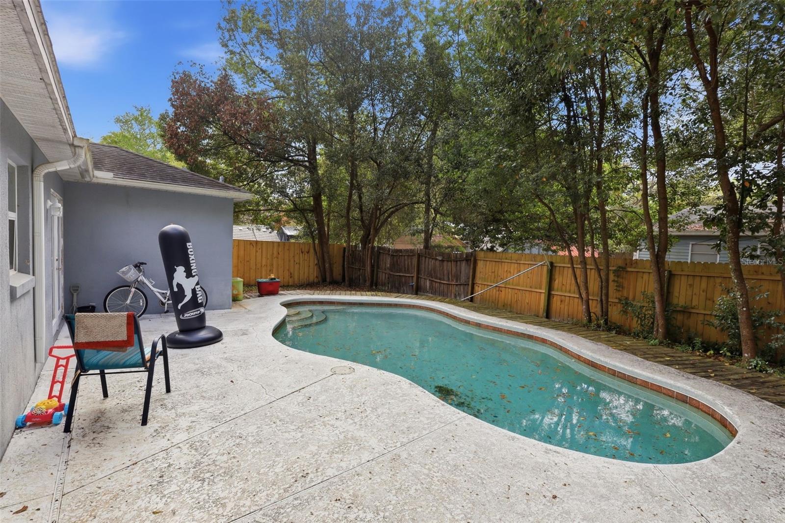 One or more photo(s) has been virtually staged. Welcome to your new oasis! This charming 3-bedroom, 2-bathroom pool home sits perfectly on a spacious corner lot, offering the privacy and curb appeal youve been searching for. Inside, youll find a split floor plan enhanced by soaring vaulted ceilings in the living room and a modern touchno tile anywhere. The spacious kitchen with reach-in pantry overlooks the backyard and includes all appliances. The large 14 X 11 primary bedroom suite features a walk-in closet and ensuite bath with granite-topped vanity. Step through the French doors to your private, fenced backyard featuring a refreshing swimming pool, perfect for Florida summers. Rest easy knowing the air conditioning system was newly installed in 2024. The washer and dryer in the indoor laundry room stay with your new home. Location is everything! Enjoy a short ride to the award-winning shops and dining in Historic Downtown DeLand. Plus, with quick access to I-4, your commute to Orlando or a relaxing day at the beach is a breeze. Currently tenant-occupied on a month-to-month basis, this property is a fantastic opportunity for both savvy investors and future homeowners. All measurements are approximate and should be independently verified.