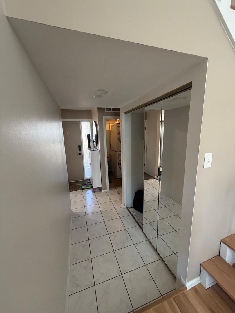 Well-maintained Henry Clay model townhouse with low-maintenance living. This spacious unit features 2 bedrooms, 1.5 baths, and a 1-car detached garage. The main level offers a dramatic two-story living room, combined dining area, and a well-appointed kitchen with pass-through to the den. Enjoy outdoor living on the private deck. A half bath completes the main floor. Upstairs includes two generously sized bedrooms and a full bath. One bedroom features a large walk-in closet and sliding doors to a private balcony. Conveniently located with direct access to miles of walking and biking trails leading to multiple parks, including Big Bear and Little Bear Lakes. Situated in the award-winning Vernon Hills school district. Minimum 12-month lease required. A must-see!