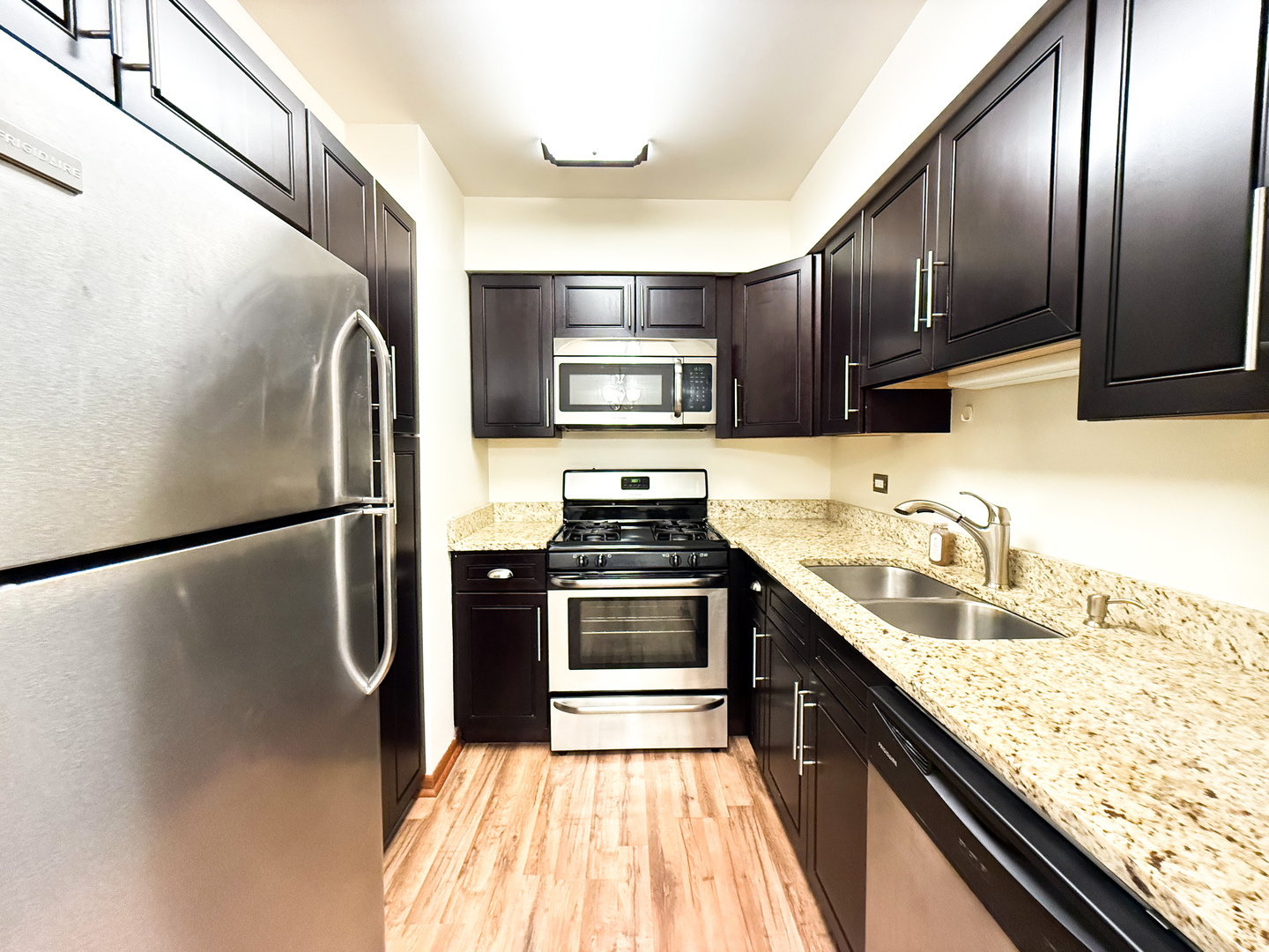 Beautifully maintained first floor unit at Adler Park Manors in Libertyville! Kitchen features granite countertops with stainless steel appliances. Interior painted in 2025. Wood laminate flooring throughout main areas and bedrooms, plus your very own laundry room with washer and dryer to use. The primary bedroom features a walk-in closet and ensuite bathroom. Rooms are spacious with natural light coming through and with views of the greenery outdoors. Parking is conveniently located just outside the building's entrance with additional visitor parking available. Adler Park Manor is located close to downtown Libertyville and the Libertyville Metra station (half a mile away). Other area amenities include parks, trails, shopping, restaurants, and Lake County Forest Preserves' Independence Grove that features plenty of outdoor recreation activities. No pets and no smoking allowed. Application fee and move-in fees apply. Minimum credit score of 700 and security deposit of 1,900. Minimum 12-month lease, no short-term rentals.