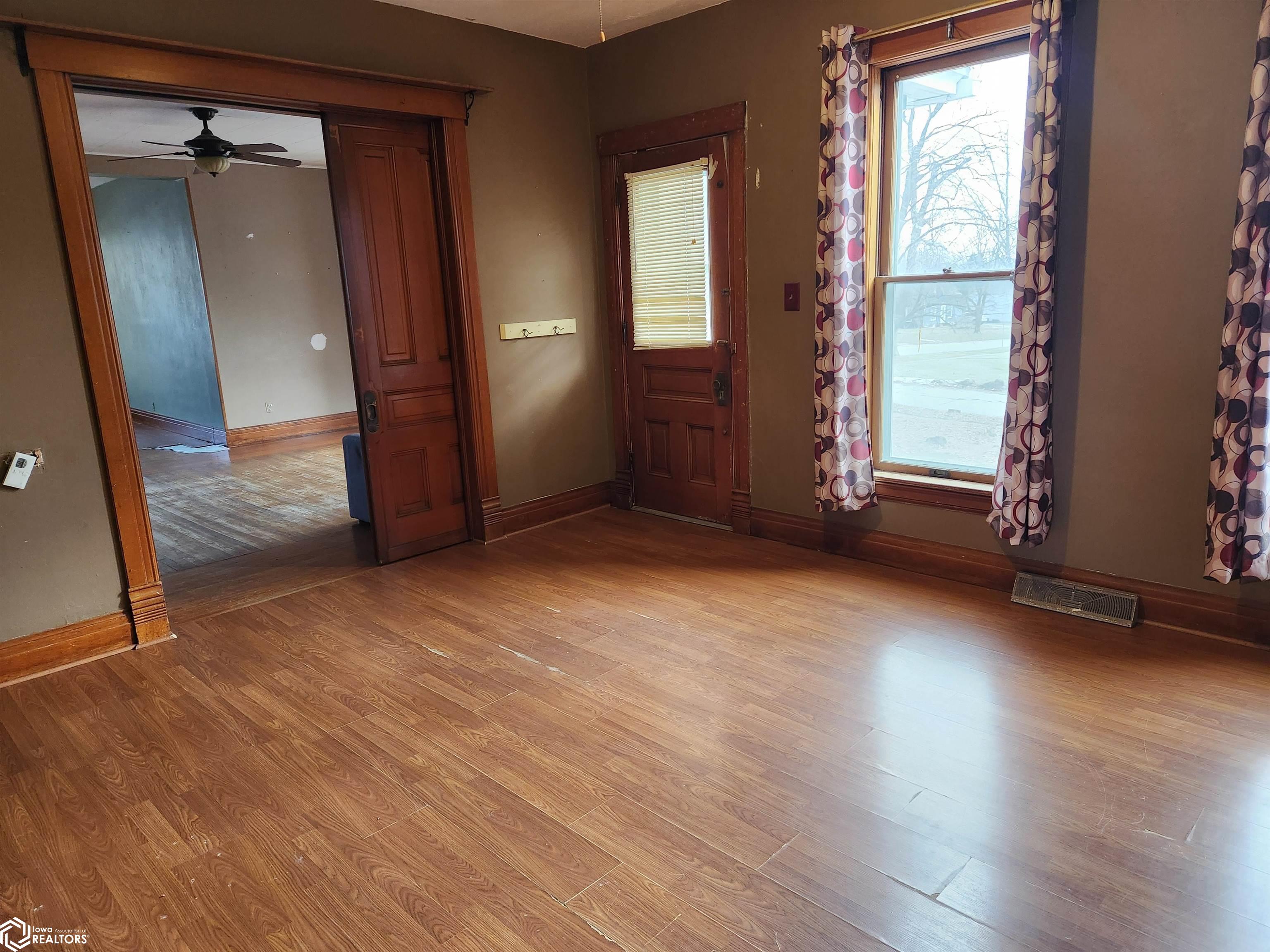 This spacious two-story home boasts 2,560 square feet of living space. The main floor features a kitchen, living room, dining room, family room, a bedroom, and a full bathroom, all with wood floors and oak pocket doors. Upstairs, youll find five bedrooms and a half bath. The partially finished basement includes a laundry area, and the newer roof is in great condition. With vinyl siding, a fenced backyard, a detached two-car garage, and a generous corner lot near a park, this property has so much to offer. Call today to schedule a tour!