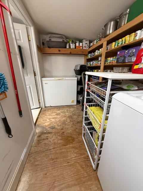RARE FIND....This 2BD/1BA sits on 3.7+/- acres. The wrap around porch is the first thing you will notice. As you enter, you will feel the charm that feels like a cabin with vaulted ceilings in the living room, dining and kitchen. There's a large laundry room with lots of shelves to stock the pantry. The master offers a double vanity and double closet, with a private potty room that can also be accessed from foyer entrance. The HVAC is 4 years old and the hot water heater is 3 months old. Kitchen appliances, washer and dryer will remain with the property. All information is subject to verification.