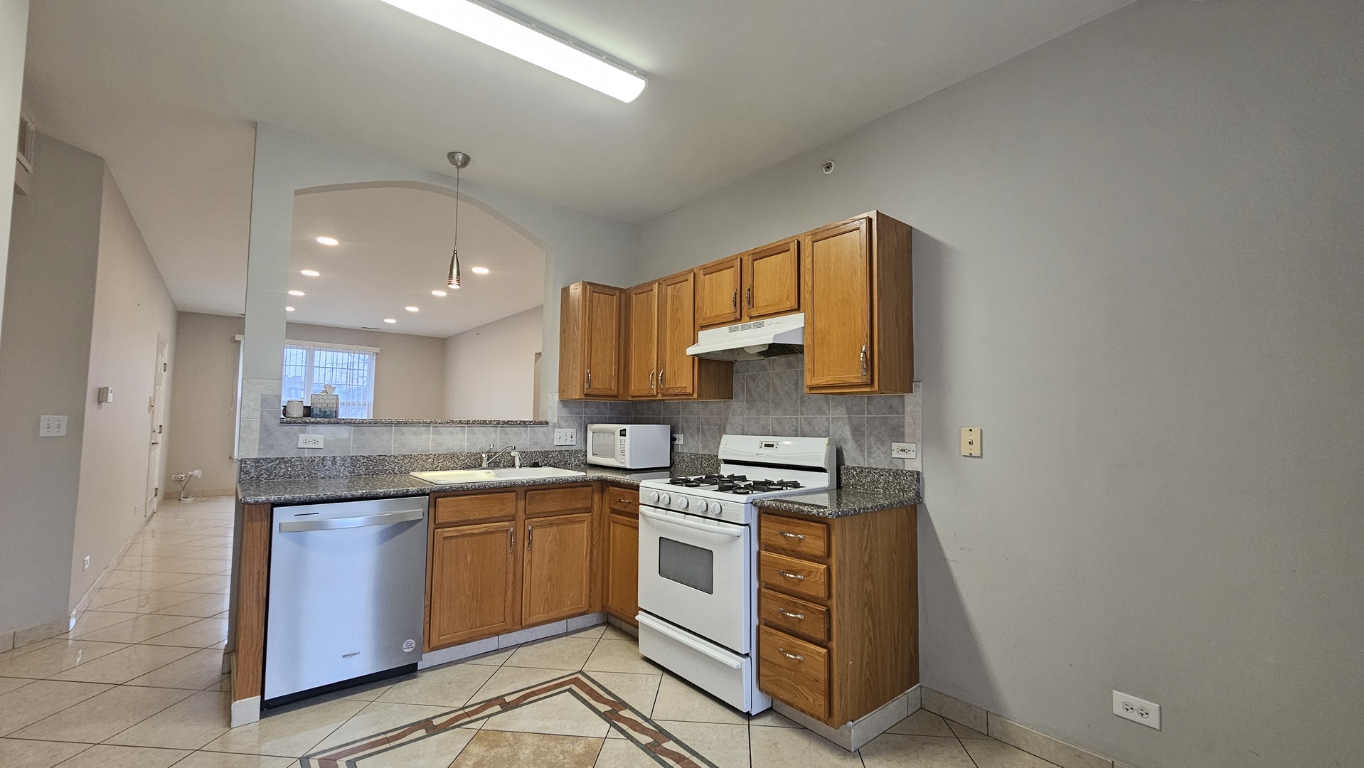 2 bedroom, 2 bath, 2nd floor condo with in-unit laundry and 1 car garage, Enjoy the spacious sun drenched living room and dining area with 9ft ceilings, porcelin ceramic tile floors. Master suite with private full bath and double wall closets. Check out the large eat-in kitchen with granite countertops, oak cabinetry, stunning porcelain tile flooring with decorative inlay and a sliding glass door to the balcony that overlook the pond. Other highlights include: White 6 panel doors, a huge storage locker. 1 car garage and 1 parking spot. walking distance to shopping and restaurants.
