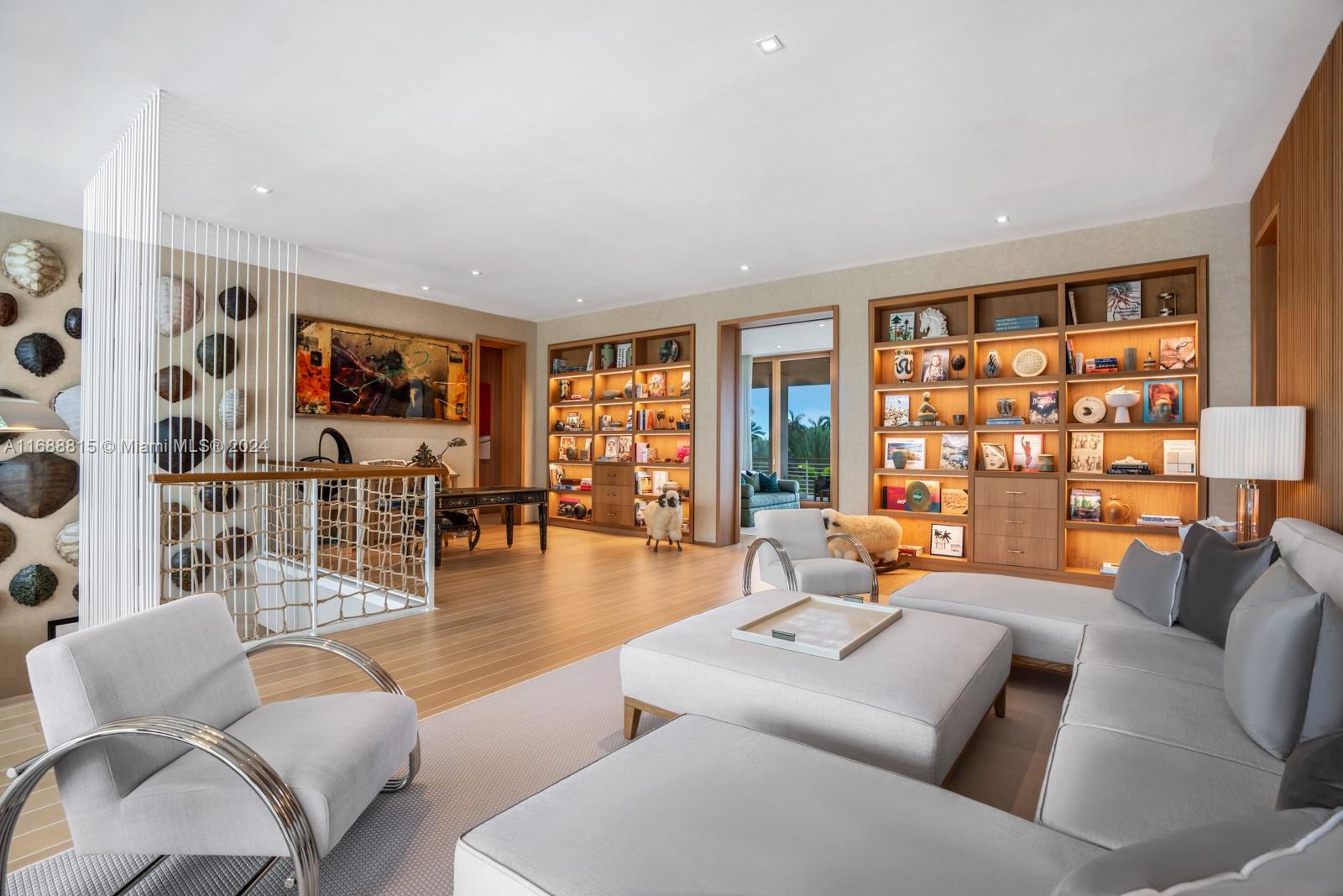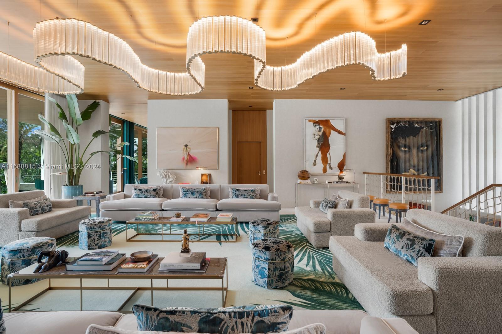 Step Inside With Me! Life.Style on Sunset Islands. This estate exudes swagger and sophistication. Masterfully designed, the use of teak throughout ushers in a new standard in architecturally significant homes. Conceived by Max Strang, its iconic entry pavilion features dual guest suites. Beyond the foyer are the social areas: hosting salon, library, chic sitting lounge, and multiple dining options. The primary suite is both grand & intimate with its fireplace, teak wardrobe, and elegant bath as well as tremendous veranda. The stylistic furnishings are extravagant and comfortable. Complete with a fitness studio, music room, theater, & rooftop, entertainment reigns supreme. Between the glamorous teal pool & 150 ft of water is a curated open-air ambiance equally as stunning as the interiors.
