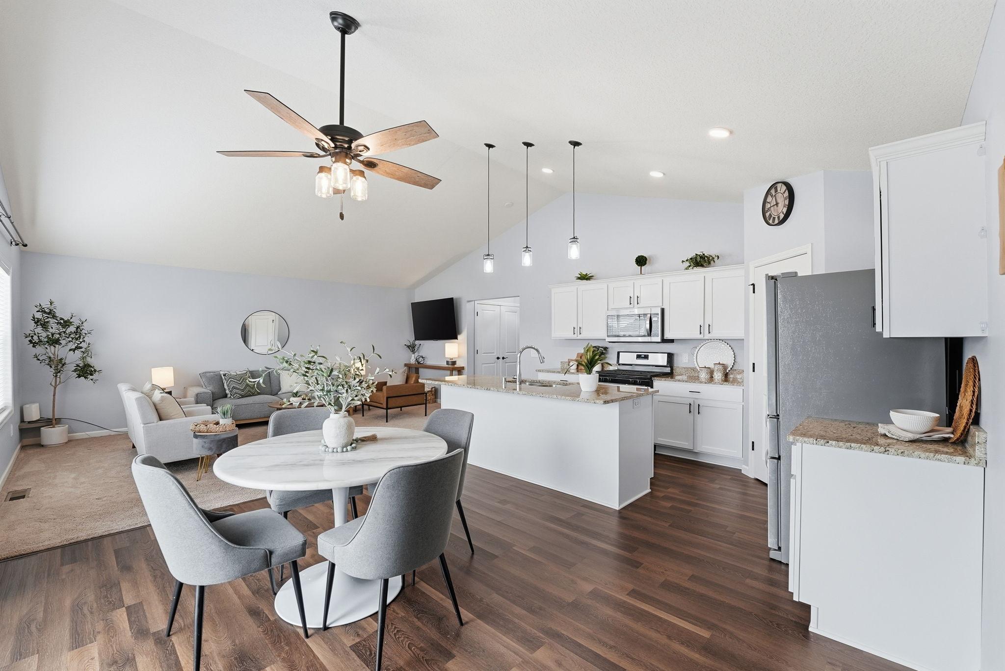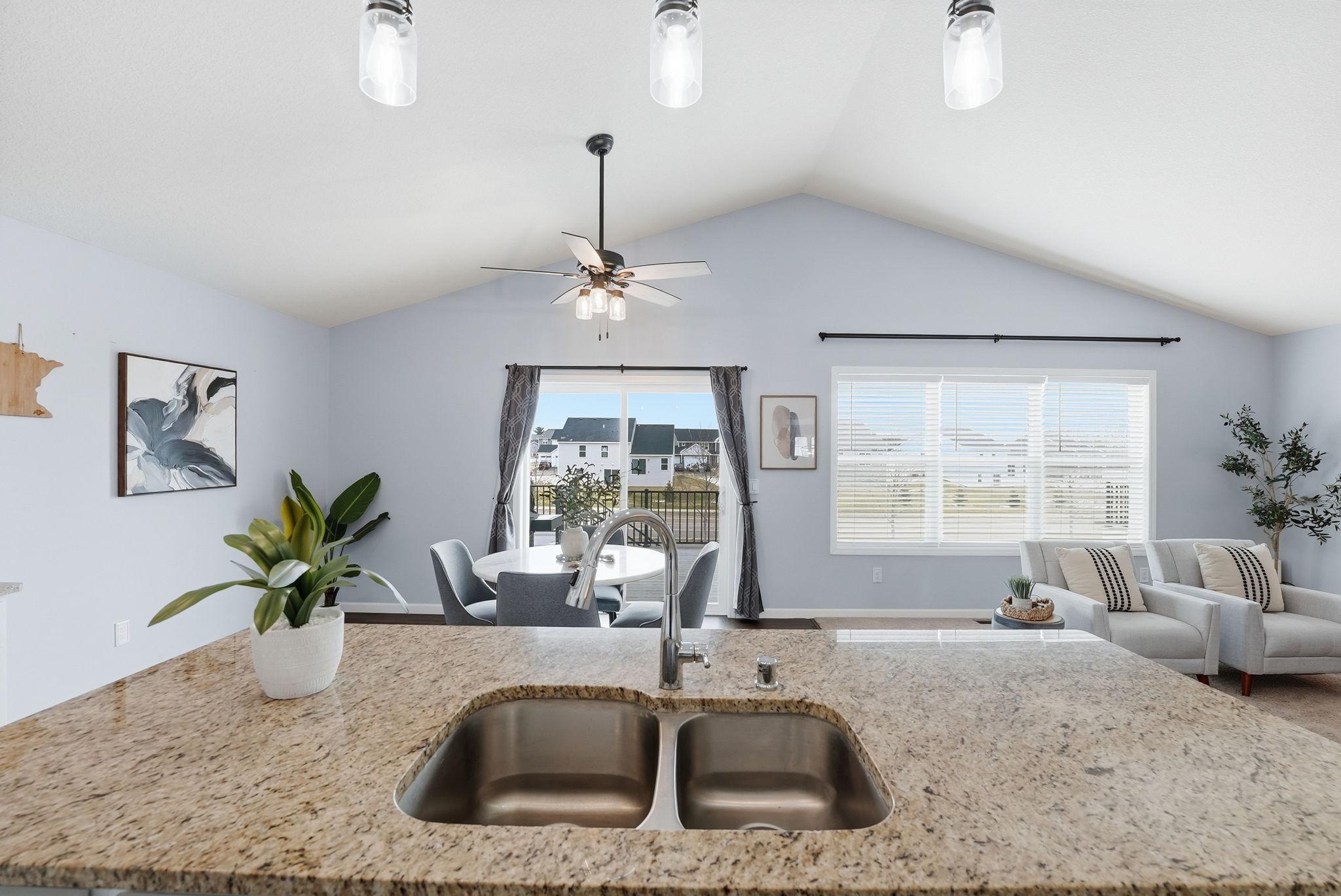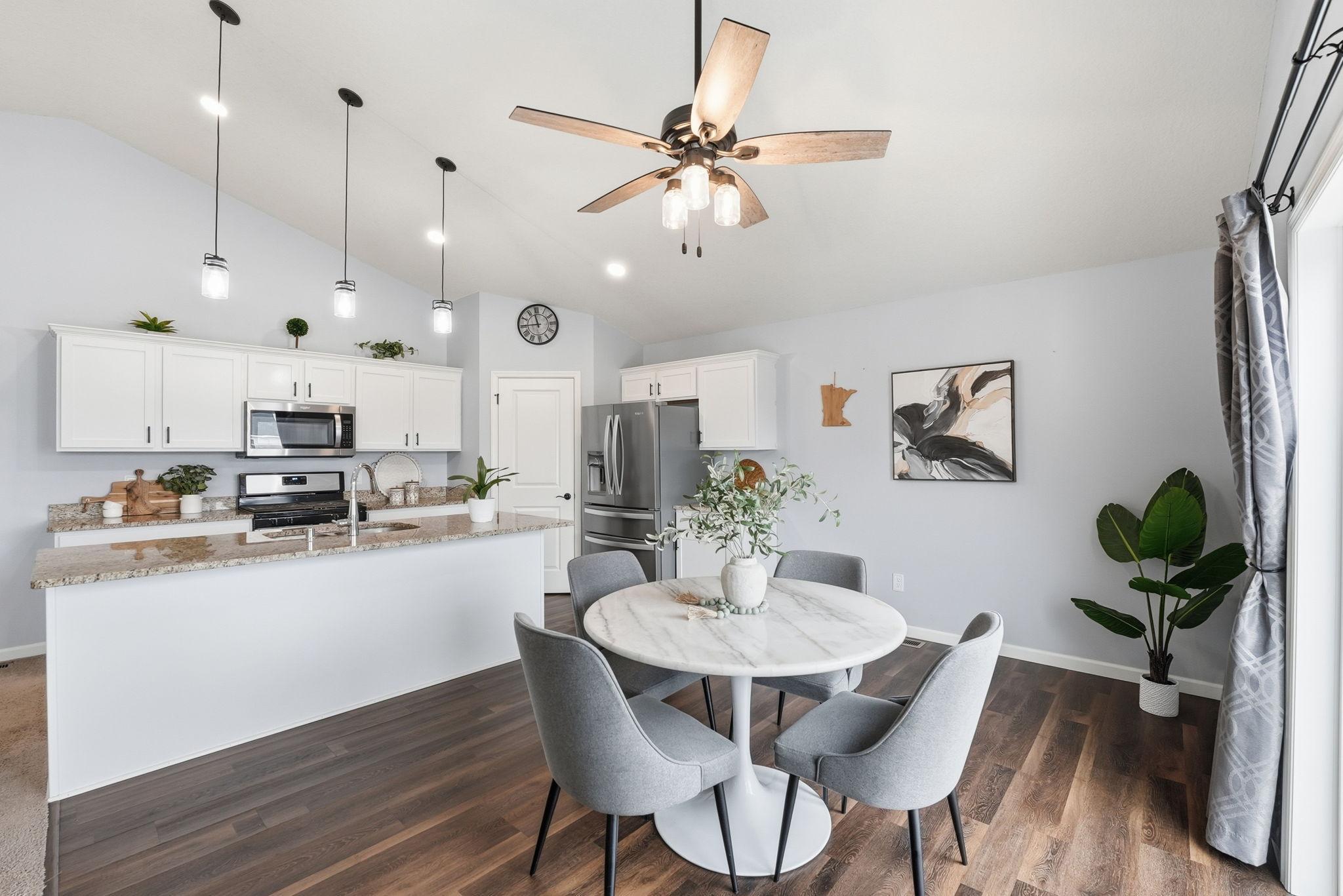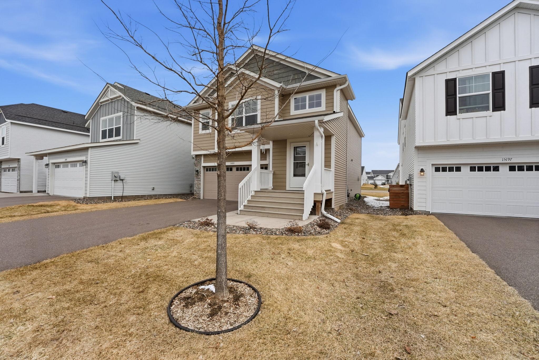 Welcome to this beautiful home located on a quiet cul-de-sac in Ramsey. The main level features an open-concept layout with vaulted ceilings, large windows, and great natural light throughout. The kitchen offers granite countertops, stainless steel appliances, a center island, and plenty of cabinet space, flowing nicely into the dining and living areas.The home includes spacious bedrooms, including a large primary suite with a private bathroom and double vanity. Enjoy the elevated deck overlooking the backyardperfect for relaxing or entertaining.Additional highlights include a walkout lower level with room to add future living space, a 2-car garage, and a great location close to parks, trails, shopping, and easy highway access.Move-in ready and a great opportunity in a growing Ramsey neighborhood.