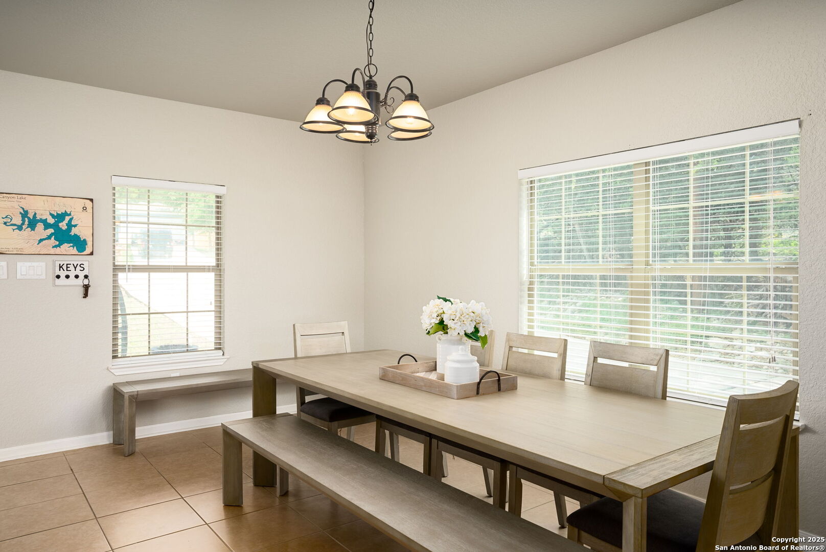 Welcome to 1526 Bonnyview Drive, an exquisite Hill Country retreat in the heart of Canyon Lake s desirable Forest community, where modern comfort meets serene natural beauty. This beautifully maintained two-story home offers over 2,100 square feet of elegant living space, featuring four spacious bedrooms, two full baths, and an open-concept design that radiates warmth and sophistication. The bright and airy main living area showcases rich tile and wood laminate flooring, soaring ceilings, and a charming corner fireplace that creates the perfect ambiance for both relaxation and entertaining. The gourmet kitchen offers granite countertops, stainless steel appliances, and an inviting breakfast bar, while the downstairs primary suite provides privacy and style with a luxurious ensuite bath and walk-in closet. Step outside to a peaceful backyard setting surrounded by mature trees and enjoy easy access to the sparkling waters of Canyon Lake, Cranes Mill Park & Marina, and the nearby golf course-all just moments from your door. Centrally located between Austin, San Antonio, and New Braunfels, this home captures the essence of elevated Hill Country living, offering an unparalleled lifestyle of comfort, convenience, and quiet sophistication.