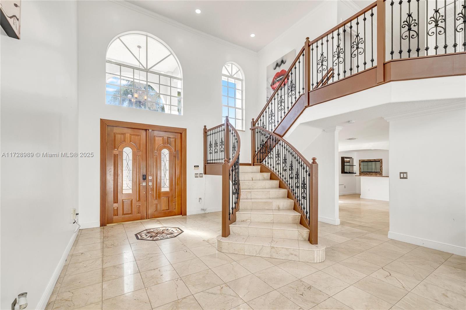 The Entertainers dream awaits! This corner lot property has it all! Beautiful custom staircase elegantly greets visitors while soaring ceilings allow for an abundance of natural light to drape the living spaces with color and softness. Spacious living areas serve perfectly for large get-togethers allowing for the party to spill out onto the gorgeous patio. All bedrooms amply sized with spacious closets and lovely wood flooring. Oversized primary bedroom offers plenty of room for a sitting area, private balcony, and spacious bathroom with private toilet room and jacuzzi tub. Exterior amenities include a travertine adorned patio/pool area complete with hot tub, summer kitchen and pergola to enjoy year round. Close to Zoo Miami, great schools, shops, parks and restaurants.