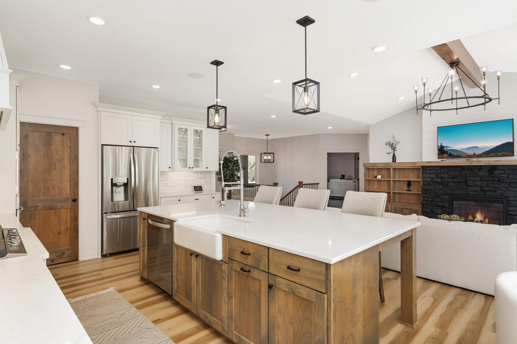 Luxury Living in Ham Lake 2024 Lang-Built Rambler on 2+ Wooded AcresWelcome to 15359 Quamba Street NE, Ham Lake, MN, where modern design meets serene country living. Built in 2024 by Lang Builders, this stunning four-bedroom, three-bathroom custom rambler sits on over 2 acres of peaceful, wooded land just minutes from Ham Lake Park, local dining, and shopping.Step inside to find 3,200+ finished square feet of thoughtfully designed space. The open-concept main level features luxury plank flooring, custom cabinetry, granite countertops, and a large center island perfect for gatherings. A walk-in pantry, stainless steel appliances, and farmhouse sink elevate the kitchens function and style. The inviting living room boasts a Heat & Glo fireplace, built-in cabinetry, and floor-to-ceiling Marvin windows that frame the beautiful wooded views.Retreat to the primary suite offering tray ceilings, a spa-inspired ensuite with soaking tub, tiled walk-in shower, dual vanities, and a spacious walk-in closet. The main level also includes a private office/den with French doors, a mudroom with built-ins, and a convenient laundry room.The finished walkout lower level is an entertainers dreamcomplete with a cozy family room and fireplace, a full wet bar with granite countertops and Sub-Zero fridge, three additional bedrooms, and a full bath. Step outside to the maintenance-free Trex deck or enjoy the fully fenced backyard, ideal for play, pets, or relaxing evenings under the trees.Additional highlights include: oversized 4-car insulated garage, built-in speakers and soft-close cabinetry, large open pad for gardening or recreation, quiet cul-de-sac setting with room for trails or outdoor fun, located in a desirable Ham Lake neighborhood, this home combines luxury craftsmanship, modern comfort, and Minnesota natural beautyall within a short drive to Blaine, Andover, and the Twin Cities.Experience a rare retreat lifestyle in Ham Lakeschedule your private showing today!