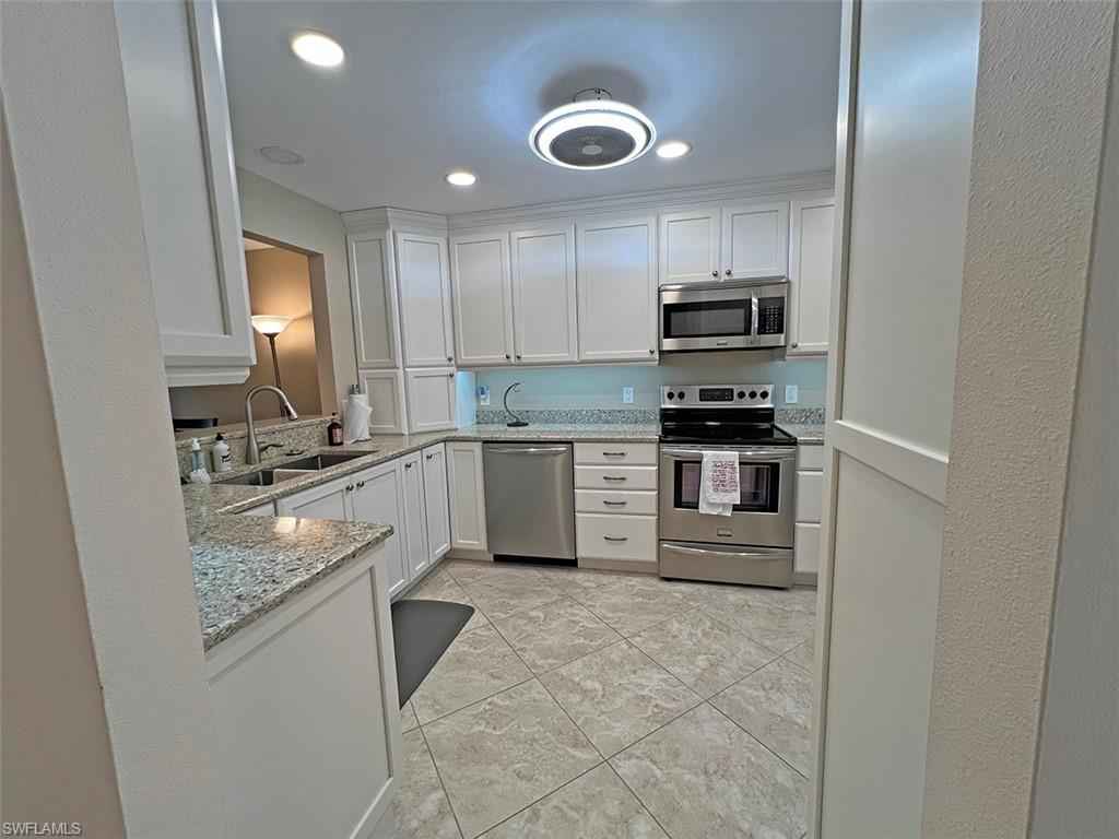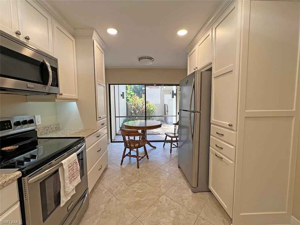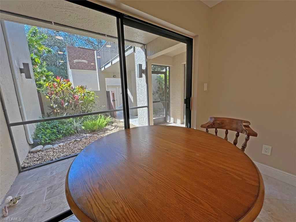 In Bay Forest, on the lake, and updated throughout--it doesn't get better than this! Enjoy this roomy, tastefully appointed unit, with split bedrooms, extra storage, and a one-car garage. The glassed-in lanai lets you take in the view and serenity of the lakeside unit, even on cooler winter evenings, while also letting in the fresh breeze on our famously gorgeous winter days. (More photos to come!!)xD;xA;Bay Forest's beautiful grounds include 2+ miles of paved trails and a fabulous boardwalk through a preserve to the back bay, complete with tiki hut and paddle-sport launch. Fish from the pier, birdwatch, kayak through the mangroves, or just take in the wonder of the sunsets and passing dolphins, all without ever leaving your neighborhood. A fitness center, library, and enviable pickleball, tennis, and bocce courts are just some of the other community-wide amenities. Sandy Pines is located in the heart of Bay Forest, with easy access to the lakeside pool and just a short walk to the clubhouse and courts. This friendly community is close to Barefoot and Delnor-Wiggins beaches, and convenient to North Naples and Bonita Springs shopping and restaurants--a secluded spot in the middle of it all!