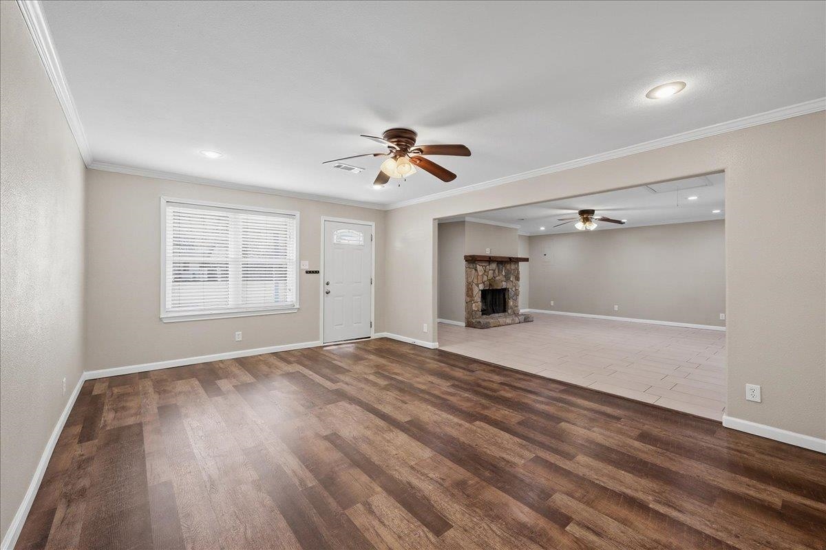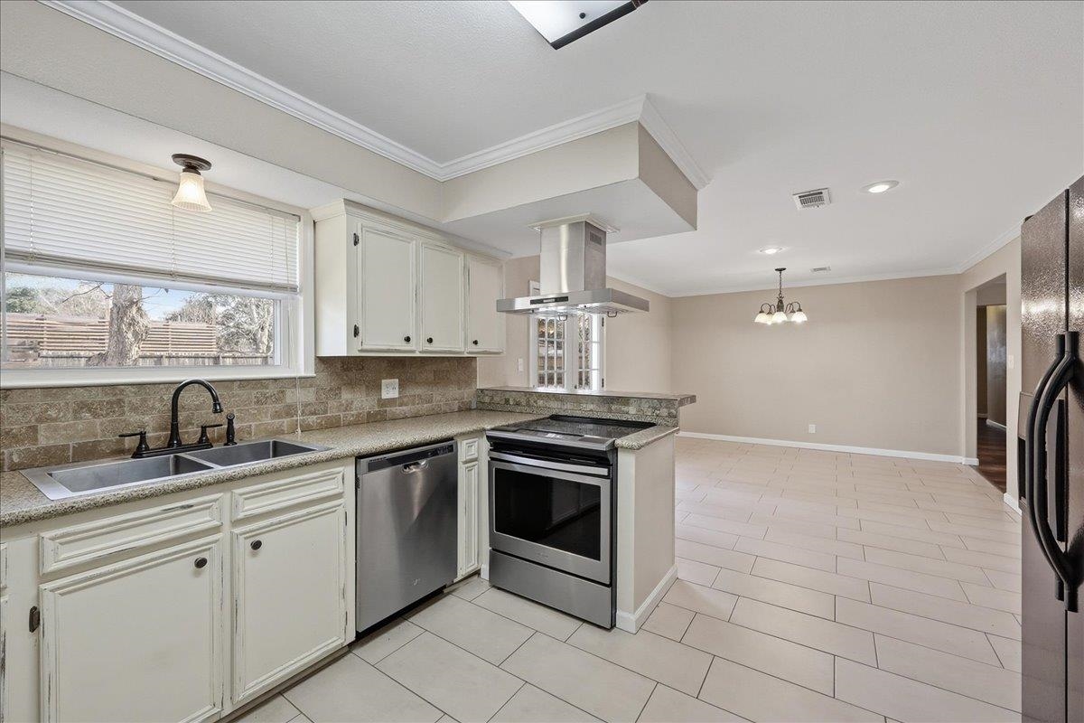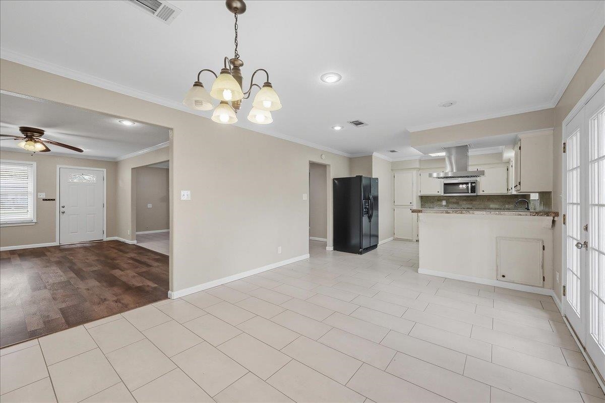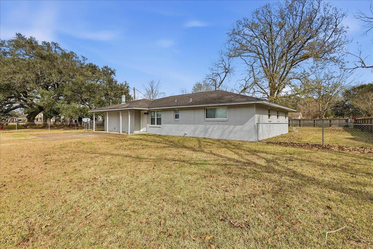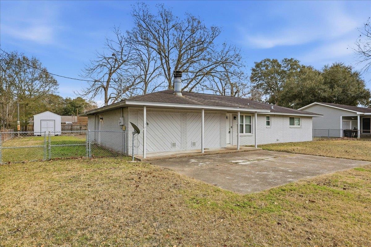 This charming 1,890 sq. ft. brick home offers the perfect blend of comfort and convenience in the Hamshire-Fannett School District. Inside, youll find durable vinyl plank and tile flooring, a spacious living area with a cozy fireplace, and a wonderful kitchen featuring quartz countertops, a breakfast bar, and all appliances needed to make a home cooked meal. The home also offers an indoor laundry room for added ease. Step outside to a fenced and shaded backyard with two mature pecan trees, a stately oak, and a handy storage buildingideal for tools or hobbies. Situated on a quiet street within walking distance to Hamshire-Fannett High School, this home delivers both tranquility and accessibility. With tasteful updates, generous living space, and a peaceful setting, its move-in ready and waiting for you to call it home. Seller is a Licensed TX Realtor.