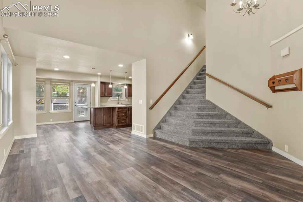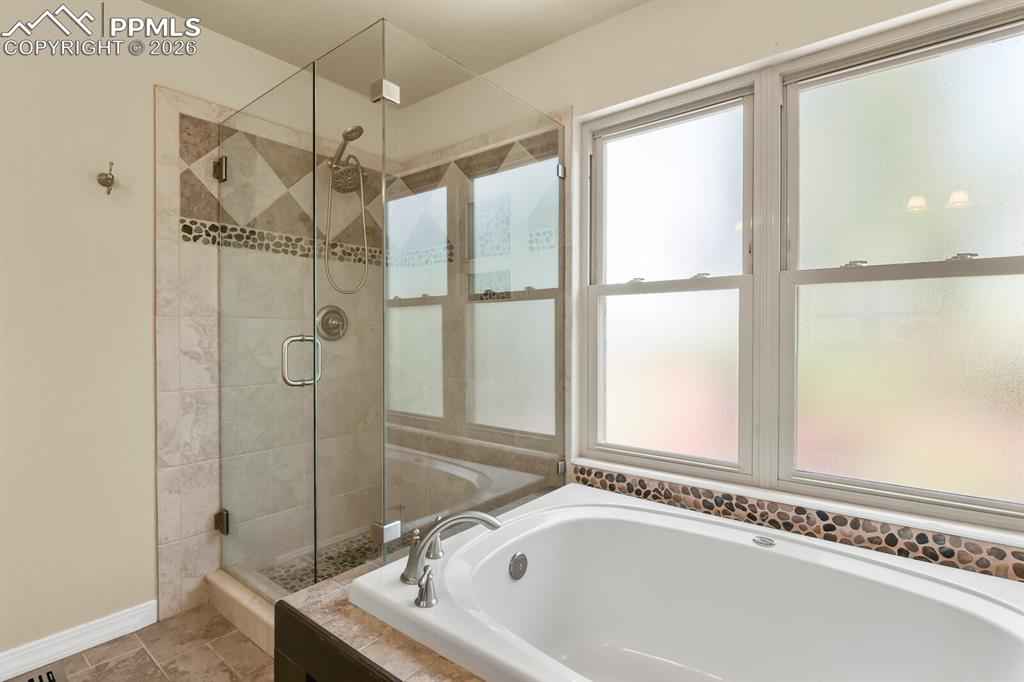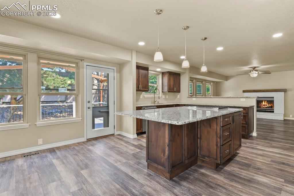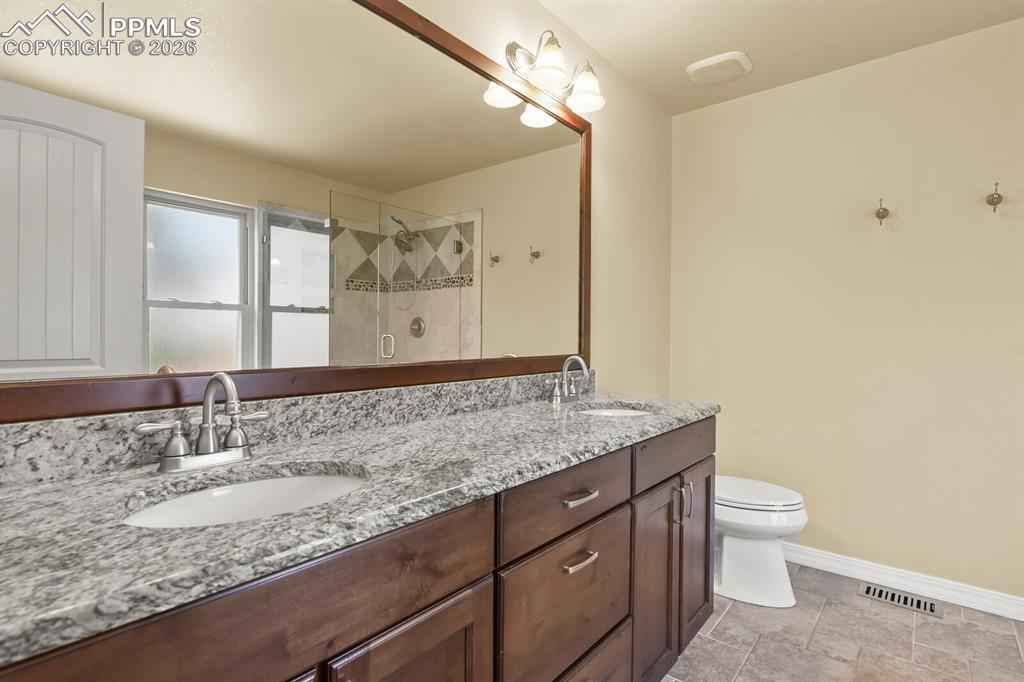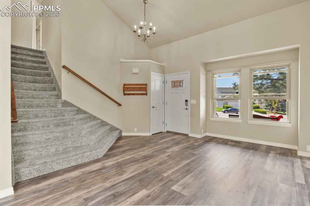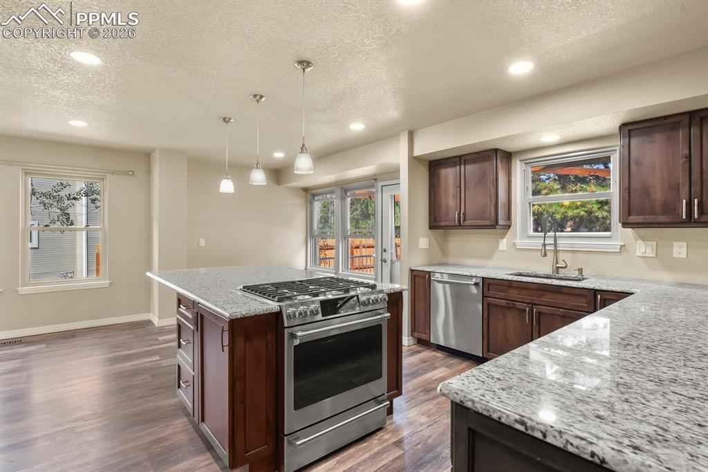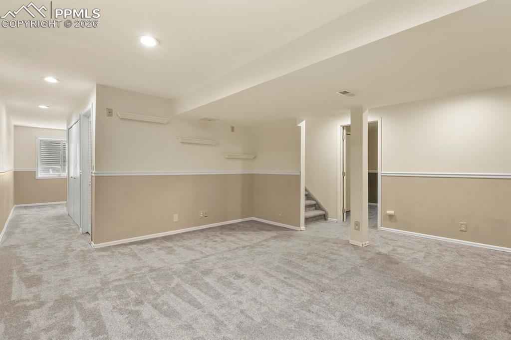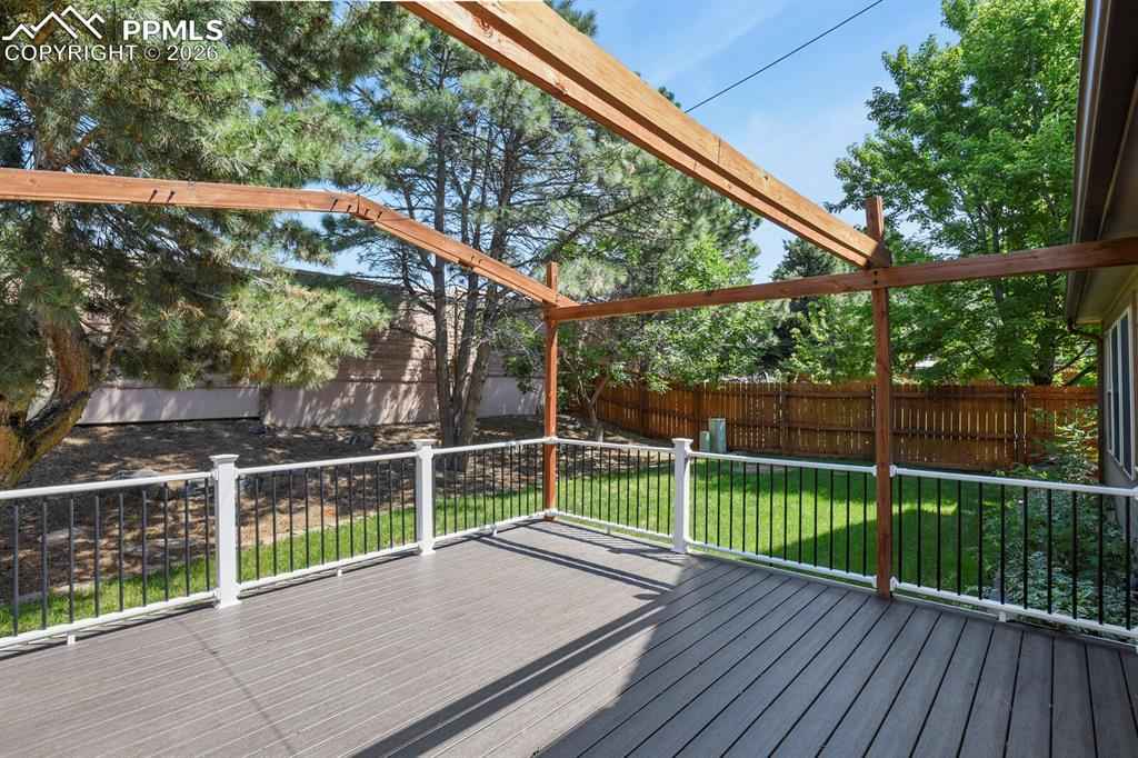 Welcome home to this beautifully maintained home in North Glen Eagle. As you enter you will be delighted with the natural light and 16 ft. vaulted ceilings that lead into a gourmet kitchen offering GE Cafe appliances, gas stove, granite countertops and custom knotty alder cabinetry with a beautiful pantry. Walk outside from the kitchen to a large composite deck with pergola and enjoy the landscaped private backyard. When you don't want to be outside, you can enjoy the cozy family room with gas fireplace and beautiful mantle. Head upstairs to the master bedroom and 3 additional bedrooms or go downstairs to find the 5th bedroom, recreation room, full bathroom and extra space to get creative. This home is a short drive to the Air Force Academy, shopping, entertainment and recreational areas.