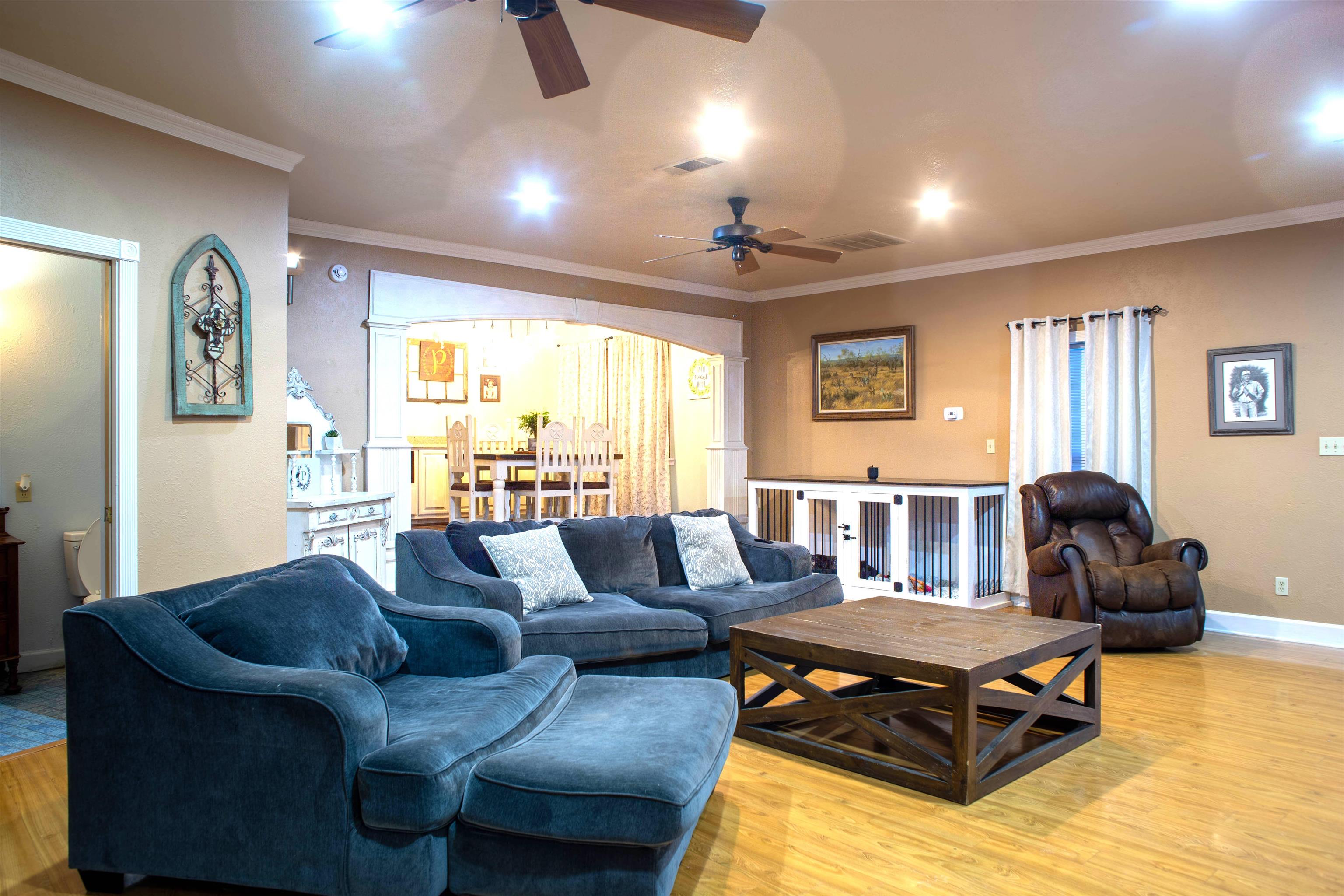This home offers an incredible list of features starting with a spacious living room and continuing throughout the property. The kitchen is well equipped with a double oven, new dishwasher, trash compactor, stovetop, and abundant cabinet space. A large bonus room currently used as a playroom provides flexible space for a variety of needs. A charming vintage half bath adds character and unique appeal to the home. The primary bathroom features a large, jetted tub and flows into an oversized walk-in closet. The laundry room is thoughtfully designed with built in cabinetry and a built-in ironing board, making it ideal for a busy household. Outdoor features are equally impressive with an 8 foot fully private fence, two gated entrances, and RV or boat access to the backyard. The backyard showcases a pool with an attached hot tub, along with a pool house featuring two bathrooms. A covered patio creates the perfect space for hosting and entertaining.