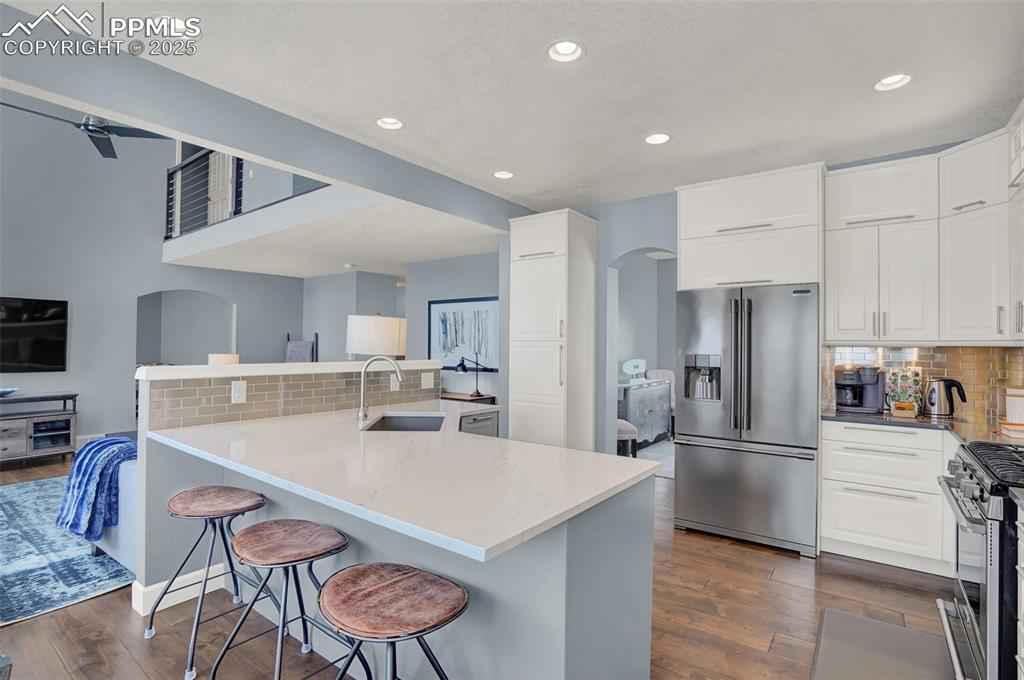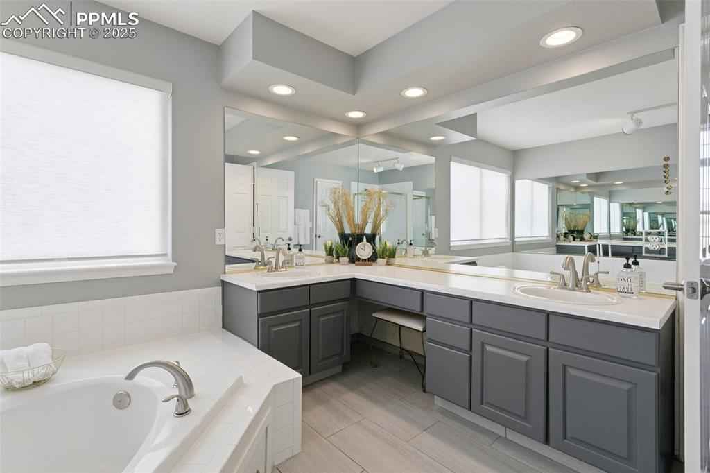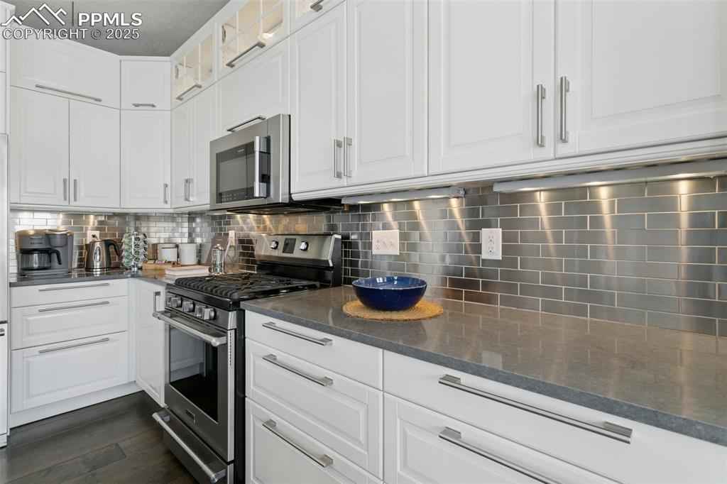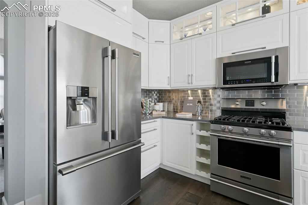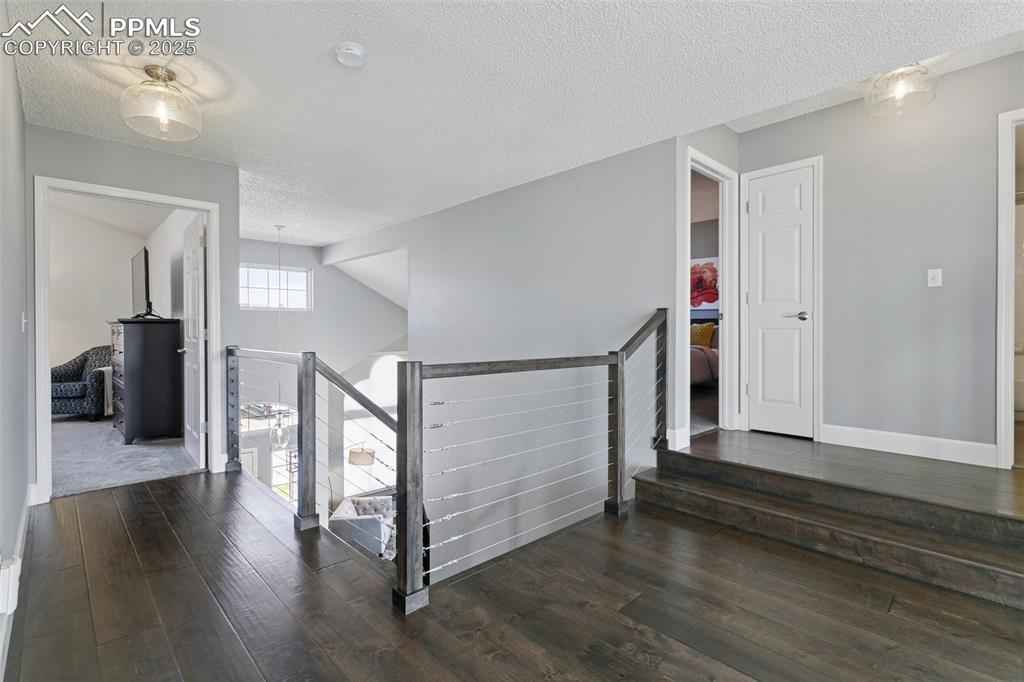 Spectacular, REMODELED one-owner home! Academy District 20 Schools! Built in 1995 by Keller Homes, this beauty has GREAT BONES, fantastic living spaces, and beautiful finishes throughout. The main level features the following upgrades: custom birch engineered hardwood floors, custom birch stairs, stunning, custom IKEA kitchen with TONS of cabinets, custom quartz counters, 2 pantry cabinets, Frigidaire Professional Series stainless steel appliances, new lighting, custom roller shades, custom 5" baseboards, and a one-of-a-kind, custom cable railing system, created by the talented craftsmen at Eden Oaks. On the main level, you'll find formal living and dining rooms, lovely kitchen w/extended breakfast nook & counter bar, large family room w/soaring ceilings and a cozy gas fireplace, large home office, powder bath and separate laundry room. Upstairs you'll find more birch flooring and 5" baseboards on the landing, new carpet & tile, and new lighting. The Primary Suite measures 400 sq.ft. w/an attached 5-pc bathroom & a walk-in closet. There are three more bedrooms upstairs (one of the upstairs bedrooms was converted into custom walk-in closet by the pros at Classy Closets) & can easily be converted back to a bedroom), a full bathroom, and two areas for linen storage. Both the Primary ensuite and the hall bathroom have been updated with freshly-painted cabinets, new lighting, and custom tile floors! The basement is mostly at garden level, offering large windows with LOTS of natural light. You'll love the "flex" room at the base of the stairs, featuring custom shelving & flooring + a built-in desk. The basement bedroom includes a walk-in closet! There is a huge second family room with plenty of space for all of your favorite activities. The basement also features a full bathroom. You'll love the three large closets AND the large storage room on this level, as well! Custom 4" baseboards were installed recently, along with new carpet. Don't miss this special home!