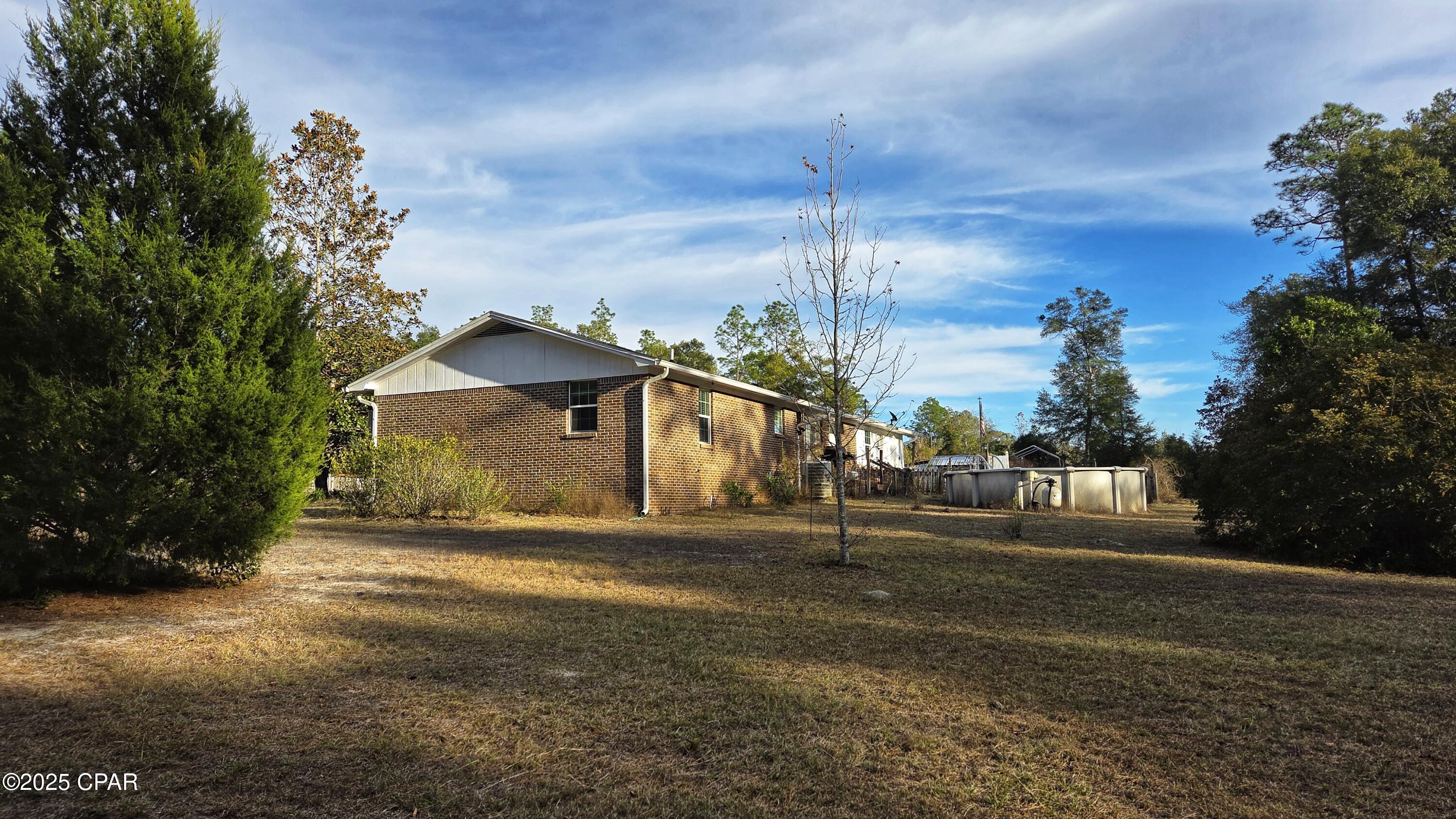 Price Improvement-Take Another Look! 3 bed, 2 bath brick home on 1.35 acres with Sandy Creek flowing through the backyard. The home features a spacious dining room, a dedicated laundry room, and a functional layout ideal for everyday living. Additional features include a nice sized garage, separate storage room, RV power hookup, and above ground pool. Just minutes from popular freshwater springs and 45 minutes from Panama City Beach.