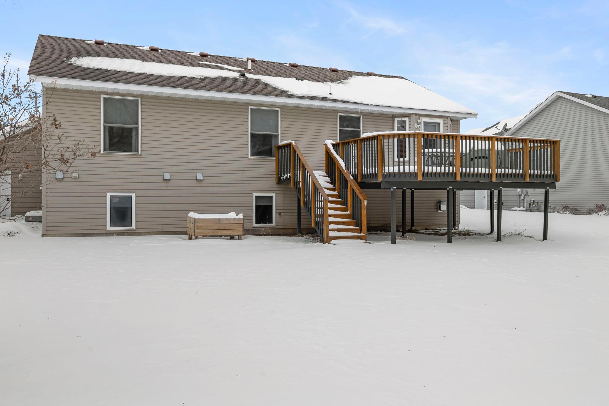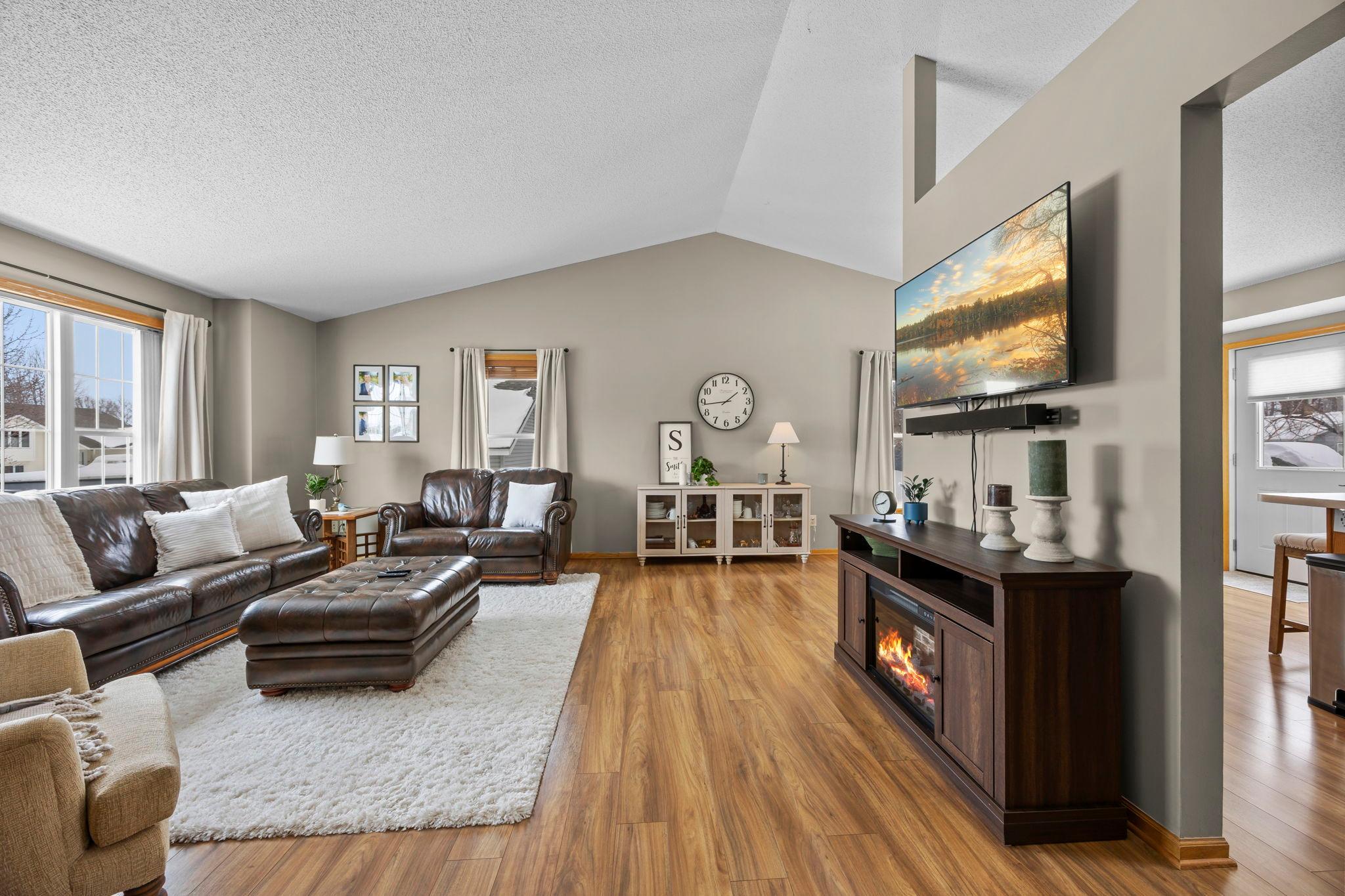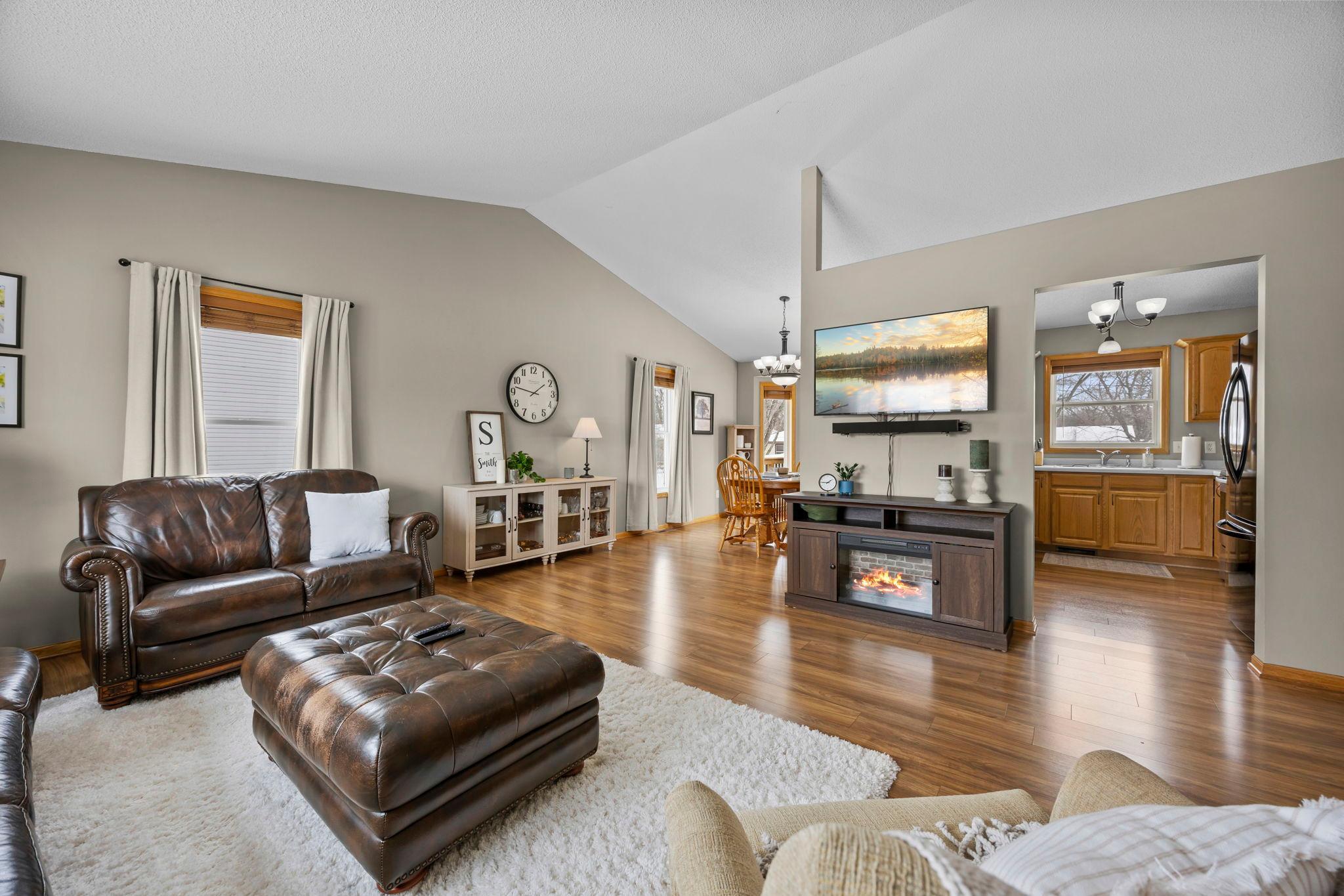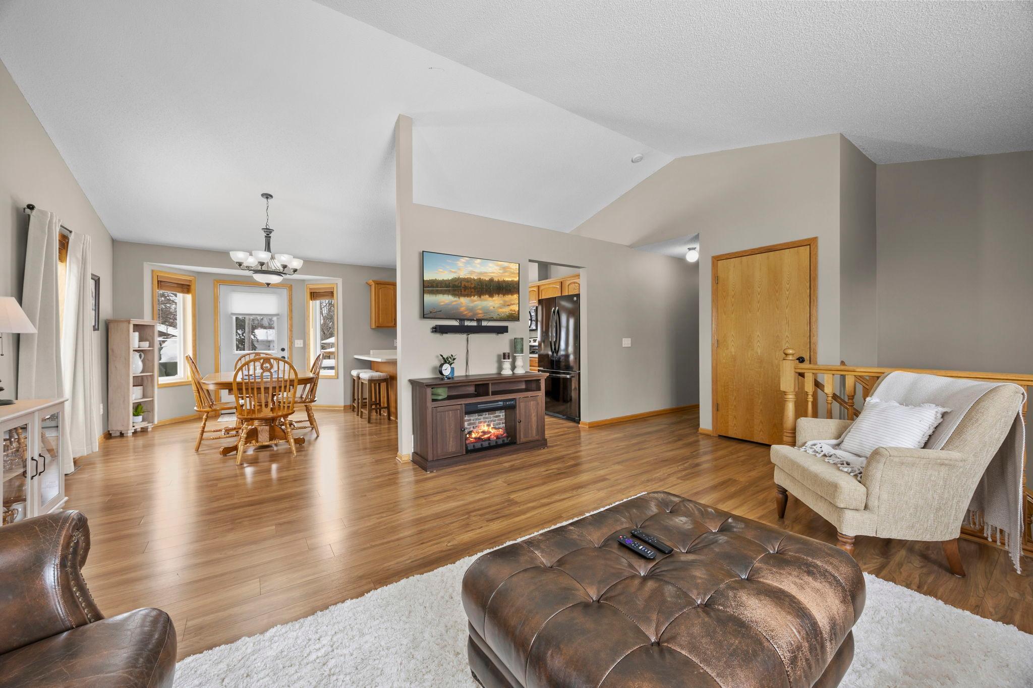 Welcome to this beautifully maintained 4 bedroom, 2 bathroom home offering a bright, open feel and thoughtful design throughout. The vaulted ceilings and abundance of natural light create an inviting main living space that feels both spacious and comfortable.The main level features three bedrooms on one level, along with a generously sized walk-through bathroom complete with double sinks, a separate tub, and showerperfect for everyday convenience. Youll appreciate the newer neutral paint and tasteful flooring selections that provide a modern, move-in ready appeal.The lower level is designed for entertaining, featuring a large family room with a cozy gas-burning fireplace, a dry bar, and plenty of room to gather. The spacious fourth bedroom includes a walk-in closet and attached bathroom, making it ideal for guests or a private suite.Step outside to enjoy the maintenance-free exterior and a newer wood deckperfect for relaxing or hosting. Situated on a .25-acre lot in town, this home offers both space and convenience.A must-see property thats truly move-in readyschedule your showing today!