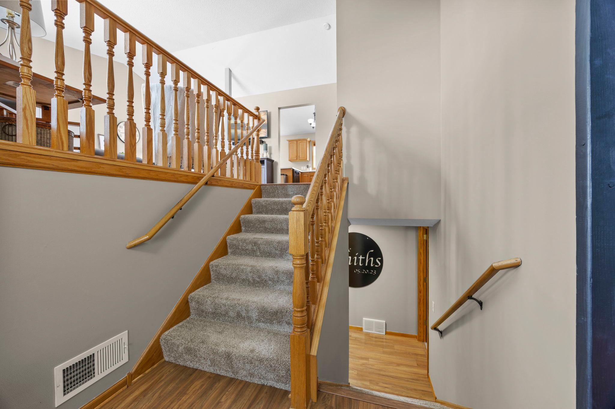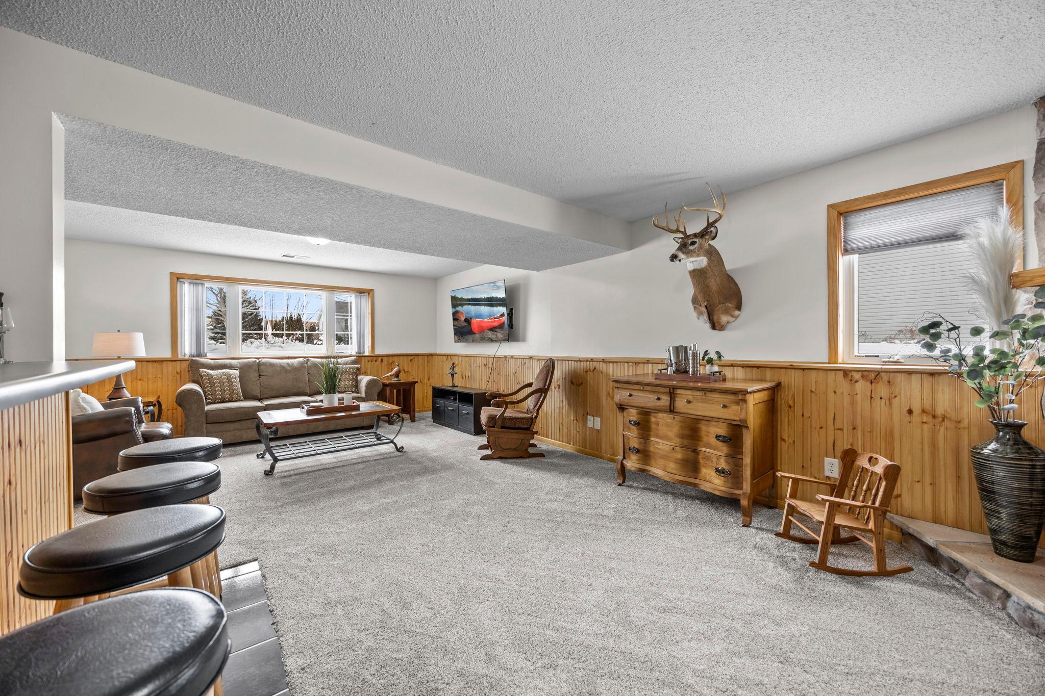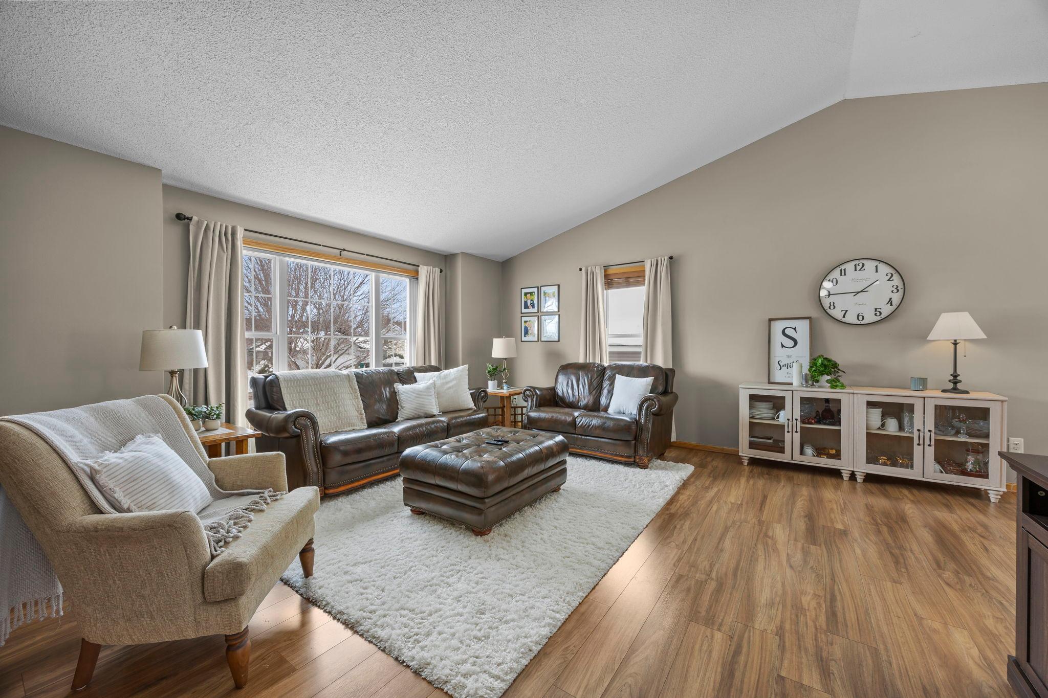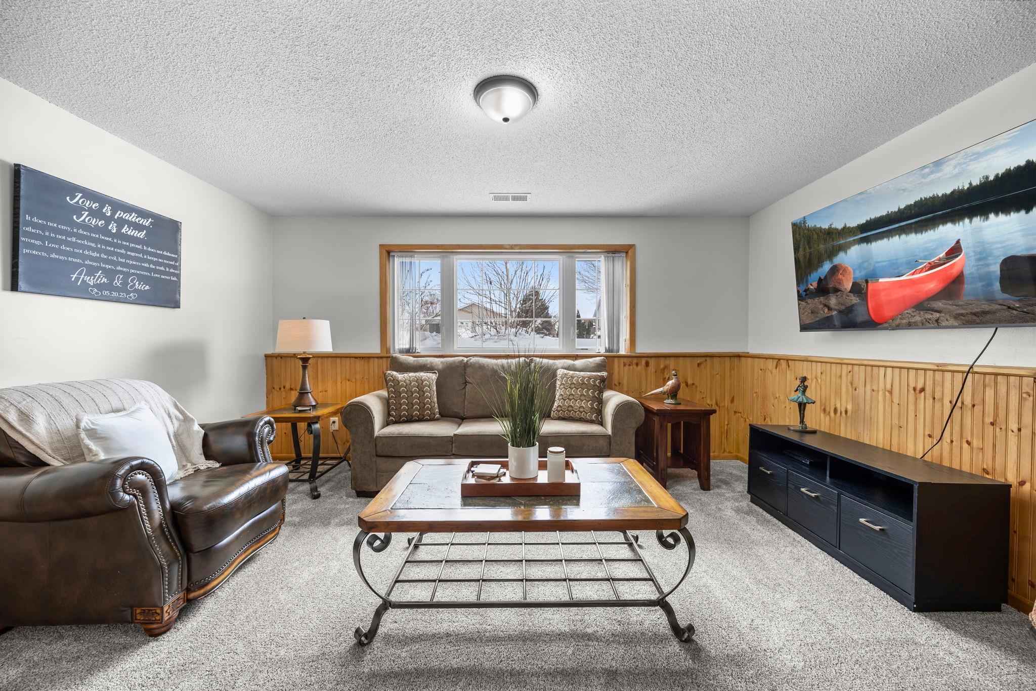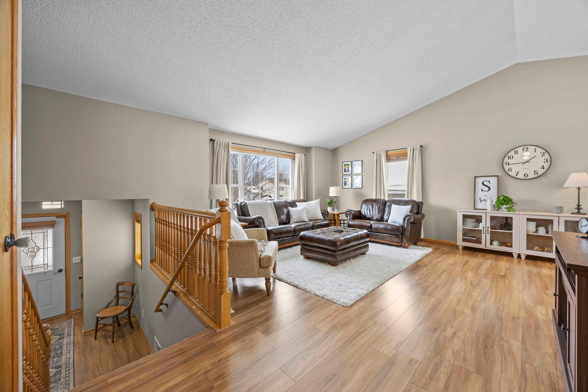 Welcome to this beautifully maintained 4 bedroom, 2 bathroom home offering a bright, open feel and thoughtful design throughout. The vaulted ceilings and abundance of natural light create an inviting main living space that feels both spacious and comfortable.The main level features three bedrooms on one level, along with a generously sized walk-through bathroom complete with double sinks, a separate tub, and showerperfect for everyday convenience. Youll appreciate the newer neutral paint and tasteful flooring selections that provide a modern, move-in ready appeal.The lower level is designed for entertaining, featuring a large family room with a cozy gas-burning fireplace, a dry bar, and plenty of room to gather. The spacious fourth bedroom includes a walk-in closet and attached bathroom, making it ideal for guests or a private suite.Step outside to enjoy the maintenance-free exterior and a newer wood deckperfect for relaxing or hosting. Situated on a .25-acre lot in town, this home offers both space and convenience.A must-see property thats truly move-in readyschedule your showing today!